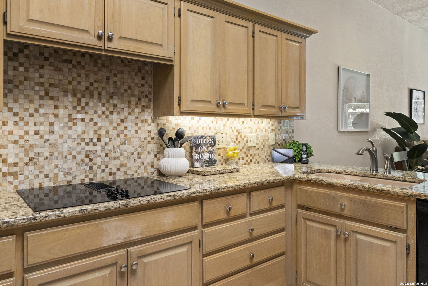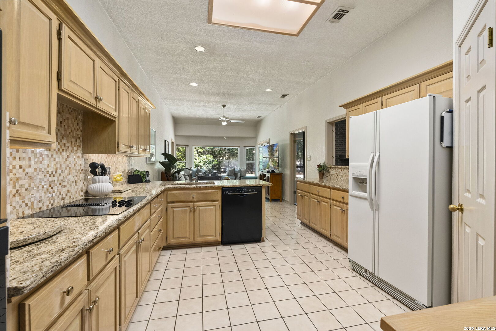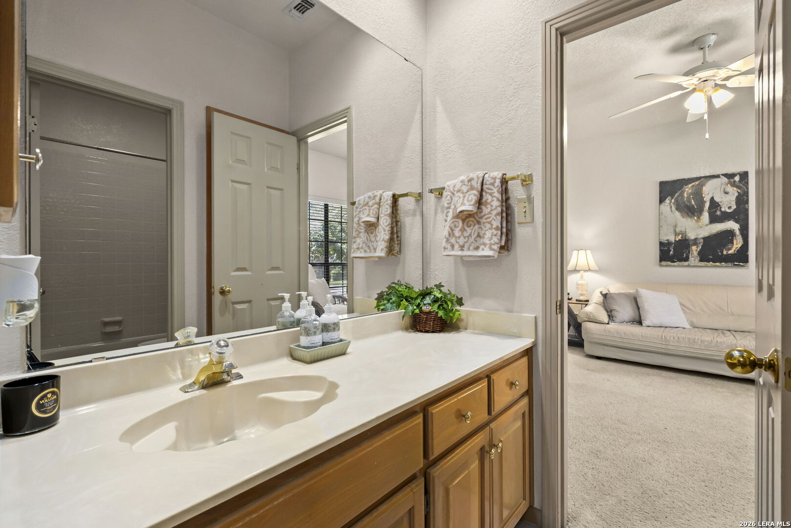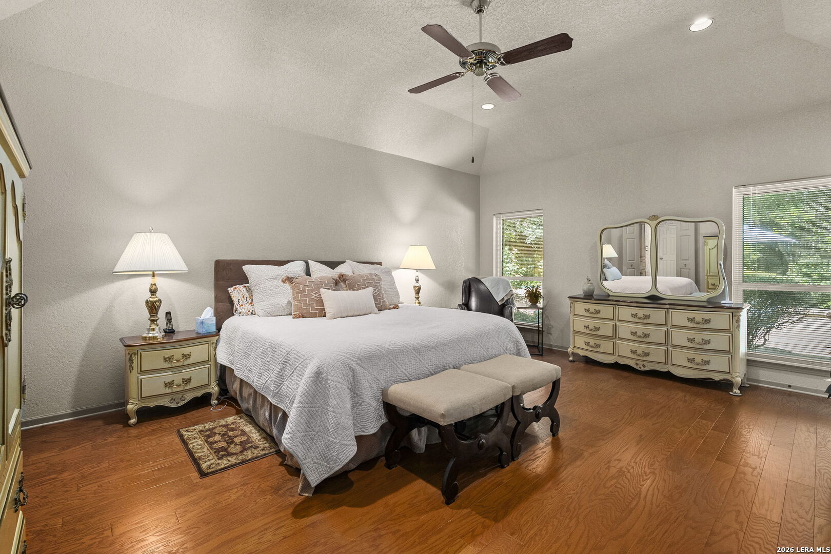 Set on a beautifully treed lot in the established Deerfield community, this thoughtfully designed single-story residence offers a balance of comfort, great curb appeal, functionality, and inviting indoor-outdoor living. The home features four bedrooms and three bathrooms with a layout designed to support both everyday living and effortless entertaining. A welcoming entry introduces the central living spaces, where the oversized family room is highlighted by soaring ceilings and a striking floor-to-ceiling brick fireplace that anchors the space. Hardwood flooring extends through the primary suite, family room, dining area, and one additional bedroom, adding warmth and continuity throughout the main living areas. The kitchen is designed with both practicality and gathering in mind, offering granite countertops, abundant cabinetry, and a spacious walk-in pantry that provides excellent storage and preparation space. Just beyond the breakfast area, a versatile bonus room creates an additional living space and features a window seat overlooking the backyard, allowing natural light to fill the room. The primary suite offers a comfortable retreat with dual vanities, a Roman tub, a separate shower, and dual closets. The split bedroom arrangement places the additional bedrooms on the opposite side of the home, providing privacy and flexibility for guests, home offices, or additional living needs. Outdoor living is equally inviting. Mature trees and established landscaping create a sense of privacy, while the screened porch and Keith Zars in-ground pool provide welcoming spaces for relaxation or entertaining throughout the year. Additional highlights include a dedicated storage area, a garage with epoxy flooring and built-in shelving, fresh interior paint, and recent pool improvements that enhance the home's move-in-ready appeal while still offering opportunities for personalization. Conveniently located near shopping, dining, and major transportation routes, the home is just a short distance from the community amenities and is located within the North East Independent School District. Residents also enjoy easy access to the nearby Salado Creek Greenway walking and biking trails, offering miles of scenic paths for outdoor recreation.