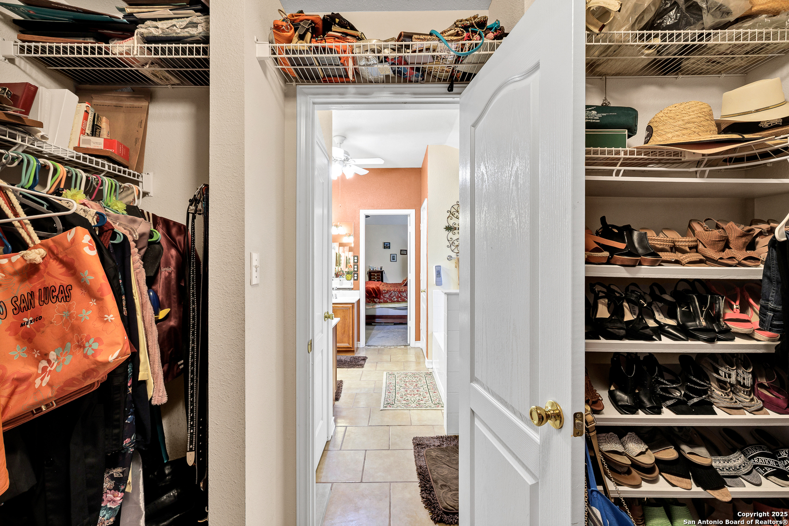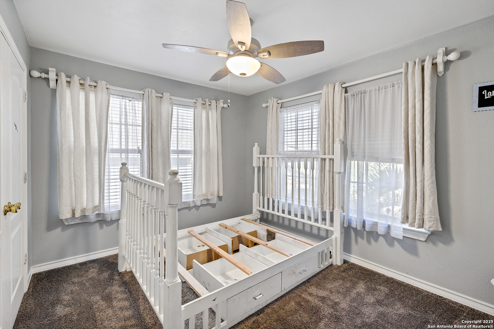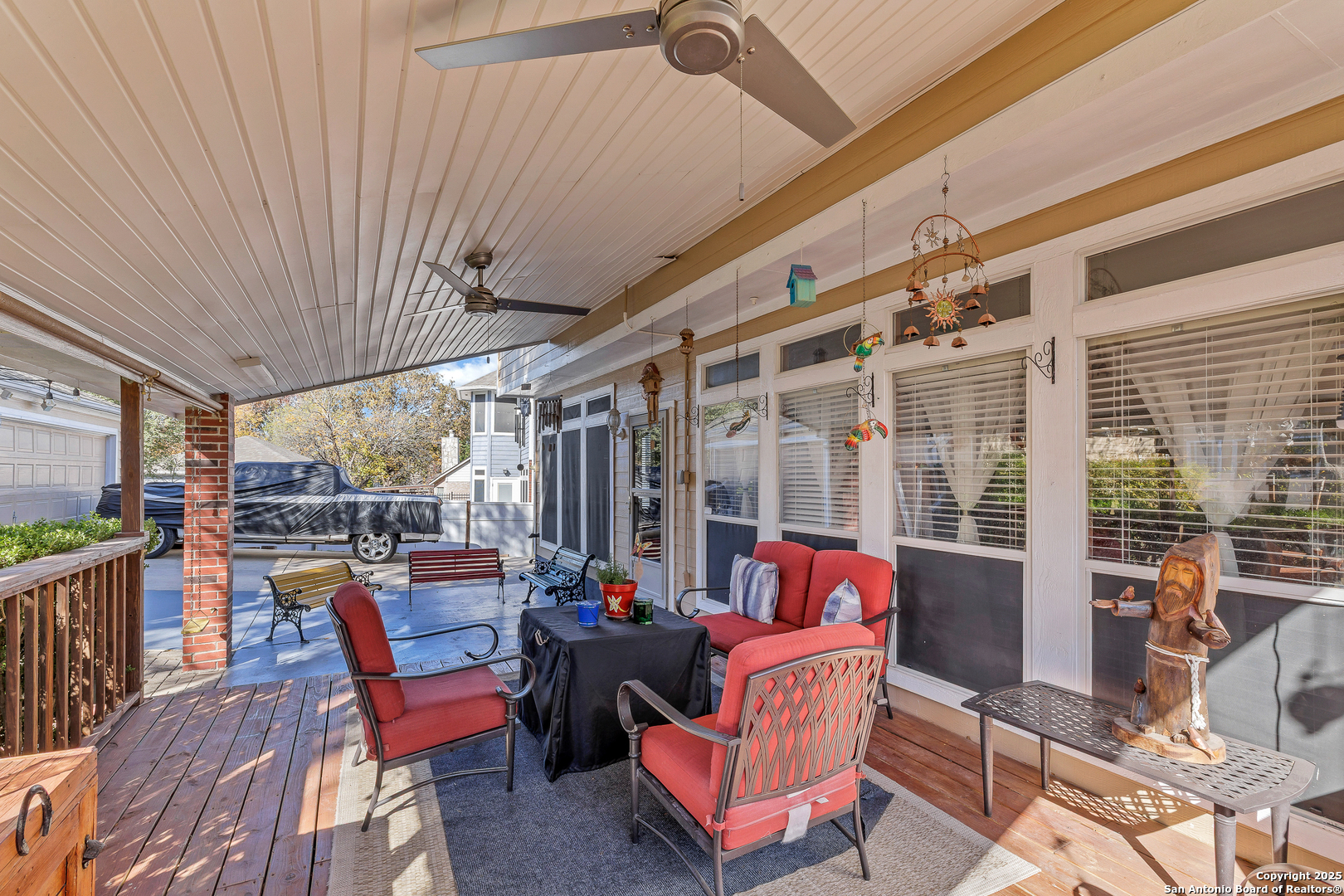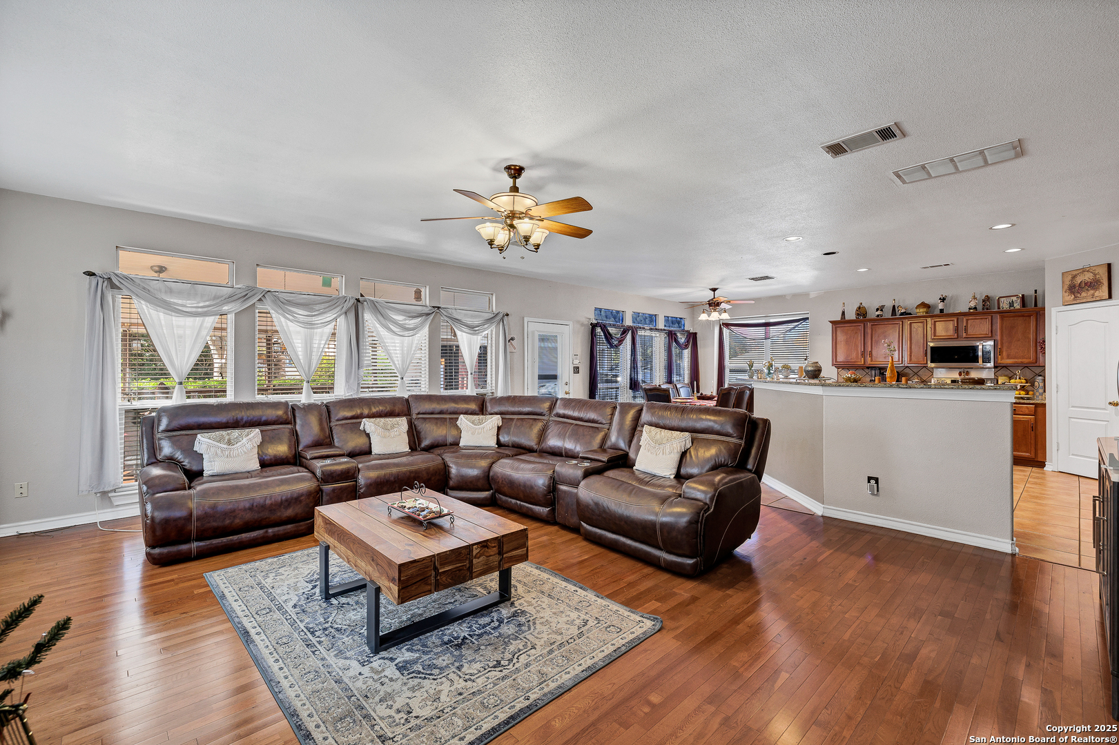 Beautiful 4-bedroom, 2.5 bath home in the gated Heights at Westover Hills! This spacious 2,921 sq ft residence features brick elevation, thoughtful custom upgrades, and backs to a greenbelt. Step inside this nicely maintained home and enjoy an open layout filled with natural light, updated finishes, generous room sizes, and excellent storage throughout. Pride of ownership is evident at every turn, including recently replaced kitchen countertops, wood floors and stairs, new carpet in three bedrooms, updated fixtures, and a spacious primary suite. The backyard is a true private retreat, perfect for relaxing or entertaining. Enjoy a large, covered patio and deck, manicured grass, and mature landscaping that includes established banana trees (that have produced fruit for years), palms, a magnolia tree, and a tall rear privacy hedge. Backing to a greenbelt, the outdoor space offers a peaceful, tropical feel year-round. Additional features include brick elevation for standout curb appeal, solar window screens, front and back storm doors, a sprinkler system, water softener, and spray-foam insulation in the attic for improved energy efficiency. The recently installed solar panels significantly reduce electricity costs and may be assumed by buyer. The spacious 3-car garage includes 220V outlets for both a freezer and refrigerator, shelving, and excellent storage flexibility. With its size, thoughtful upgrades, privacy, energy efficiency, and prime location in Westover Hills, this home offers exceptional value and is truly move-in ready. Residents enjoy 24/7 gated access plus neighborhood amenities including a community pool, tennis and basketball courts, playground and BBQ areas. The subdivision is tucked away with only 67 homes in the community. The home sits in one of the most convenient areas of San Antonio-a short 7 miles to Joint Base San Antonio Lackland Air Force Base; Northwest Vista College; easy access to Hwy 151, Loops 1604 and 410; Alamo Ranch shopping and restaurants; and Sea World. This home offers a rare combination of space, privacy, solid construction, energy-saving features and lifestyle amenities in a highly desirable community.