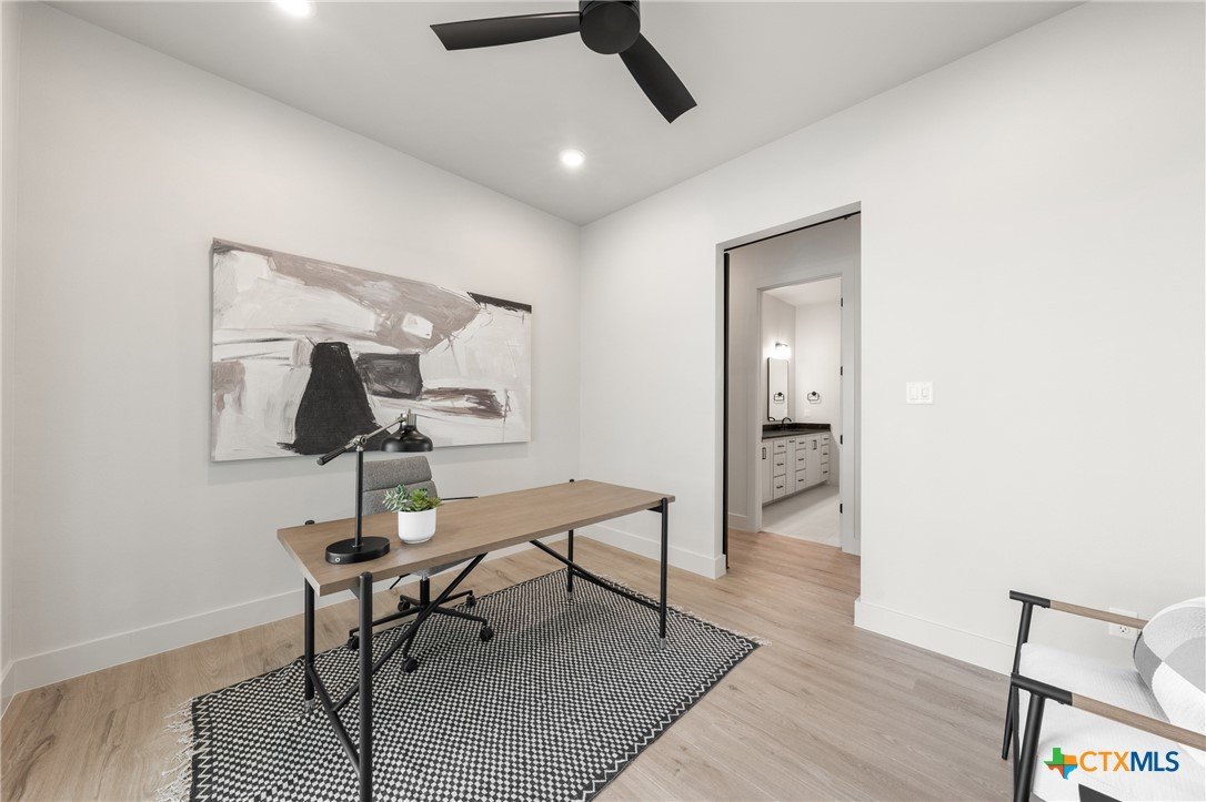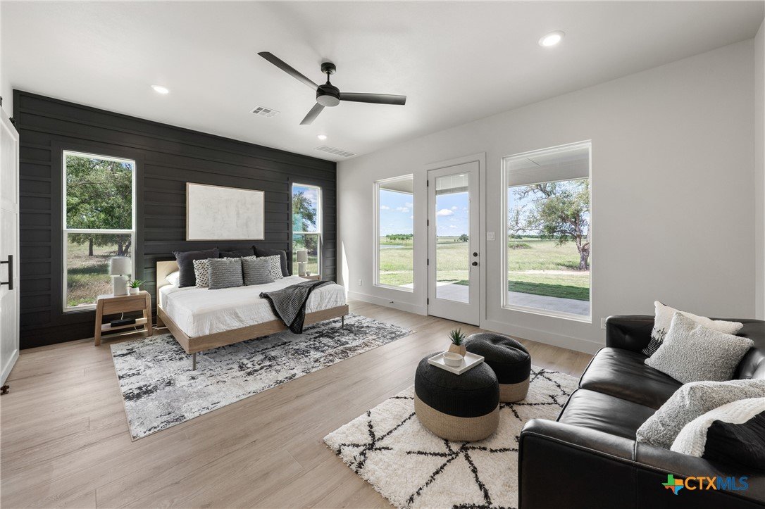 This Scandinavian farmhouse is a new design by Brandon Whatley Homes. The clean lines and simplistic interior features are infused with black and toned white contrast as well as warm wood tones throughout. This unique split plan offers a great secondary bedroom wing, including an ensuite bedroom and flex room in addition to two other bedrooms. Over 3000 sf of single floor living! The home sits on 4.6 acres with a pond and mature trees. The property includes a 20 X 30 shop and is located in highly rated Holland ISD.