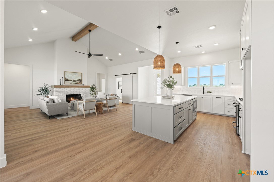 You should retreat to this rural subdivision in Holland ISD and bring your family and chickens!! This modern farmhouse has transitional light neutral finishes with subtle natural wood tones. The spacious living includes vaulted ceiling, natural brick fireplace and extra wide luxurious vinyl plank. Shaker style cabinets, stainless appliances, oversized center island, and light Quartz countertops will make cooking and entertaining a dream. Two bedrooms share a jack & jill bathroom and a third bedroom with en suite bath will be nice for guests or mother-in-law quarters. A second living/bonus room is located near the secondary bedrooms and a private study is also available. Enjoy your master suite with accent wall, soaking tub, and separate shower. Get out of the crowded city and relax! This home sits on a one acre lot in Honey Ridge, just off of FM 2268.