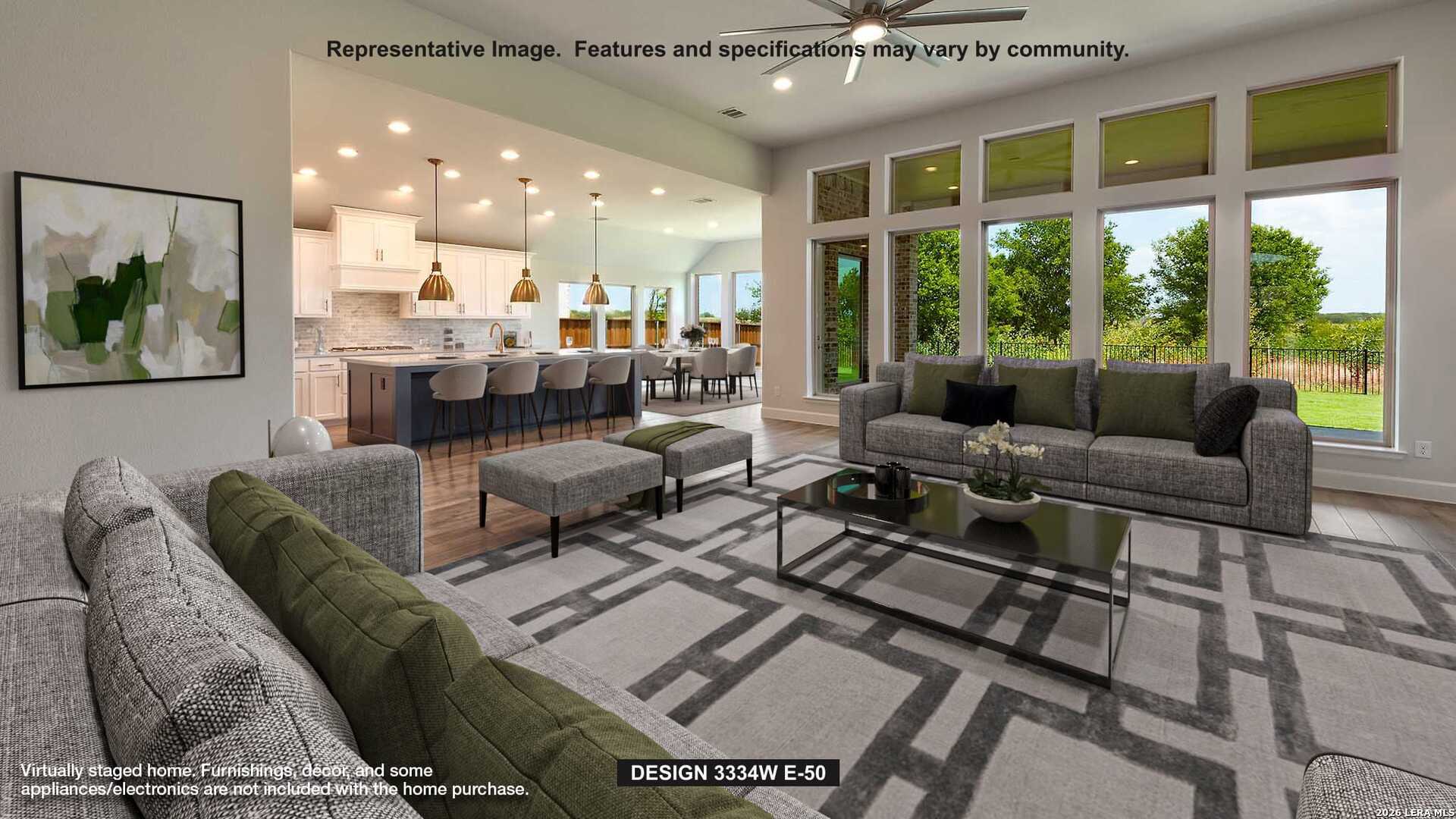 Welcoming entry framed by home office with French doors. Spacious game room with French door entry. Spacious family room features a wall of windows and a wood mantel fireplace. Island kitchen with built-in seating space, two wall ovens, a 5-burner gas cooktop and a walk-in pantry flows into the dining area. Primary bedroom with a wall of windows. Primary bath features French doors, dual vanities, two walk-in closets, two linen closets, freestanding tub and a separate glass enclosed shower. Secondary bedrooms joined by a Hollywood bathroom. Private guest suite with a full bathroom and walk-in closet near front of home. Extended covered backyard patio. Utility room and mud room just off the three-car garage.