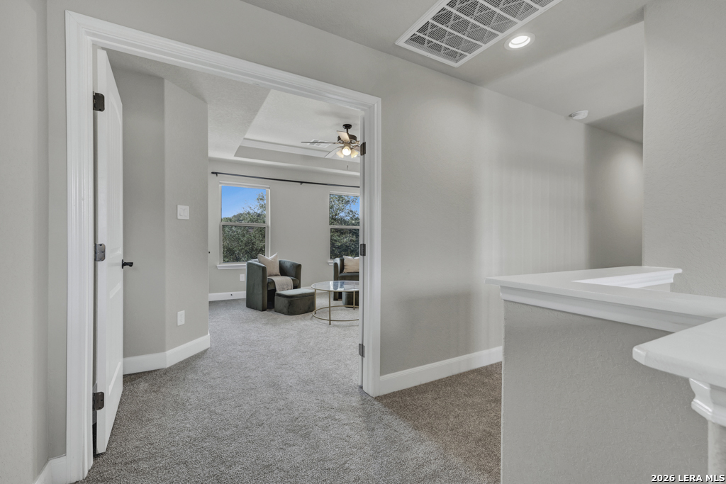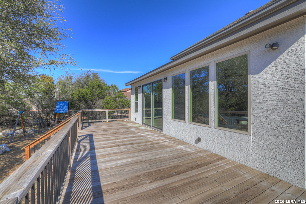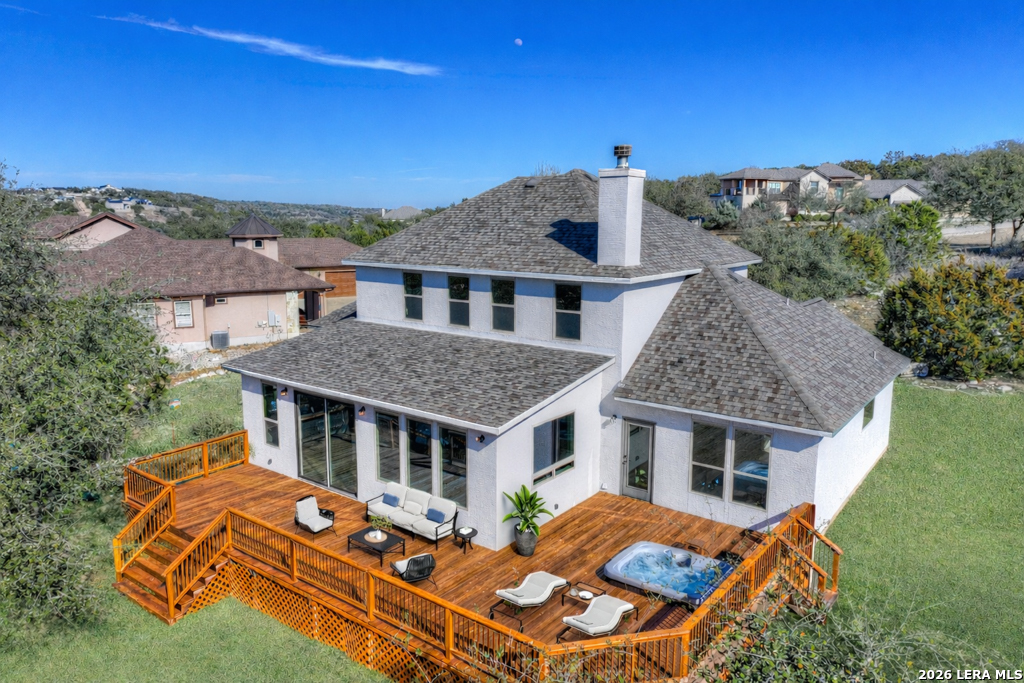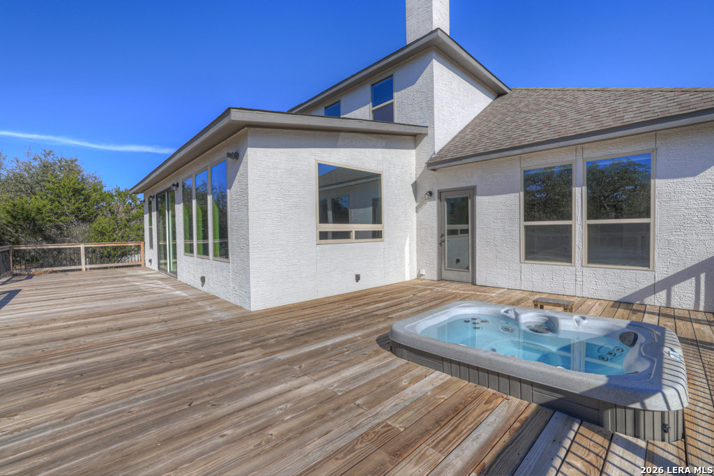 Welcome to 1621 Angolo, a 2020 custom home in Vintage Oaks where Hill Country charm meets modern luxury. Tucked at the end of a quiet cul-de-sac, this 4-bedroom, 2.5-bath, 2,879 sqft home sits on a private 1.57-acre lot with no rear neighbors-your own secluded retreat. Step through the front door into sunlit living spaces that flow effortlessly into the chef's kitchen, complete with a massive granite island, double ovens, and custom details made for entertaining. Floor-to-ceiling windows frame the lush surroundings, bringing the outdoors in. The main-floor primary suite is a serene escape, opening directly onto a wraparound deck with a built-in hot tub-perfect for starry nights. Upstairs, two bedrooms and a loft offer flexible space for media, work, or play. Outside, the backyard invites your imagination - pool, fire pit, garden - and as a Vintage Oaks resident, you'll enjoy four pools, a lazy river, a fitness center, and miles of scenic trails.