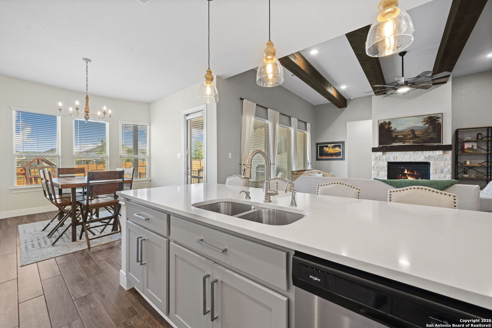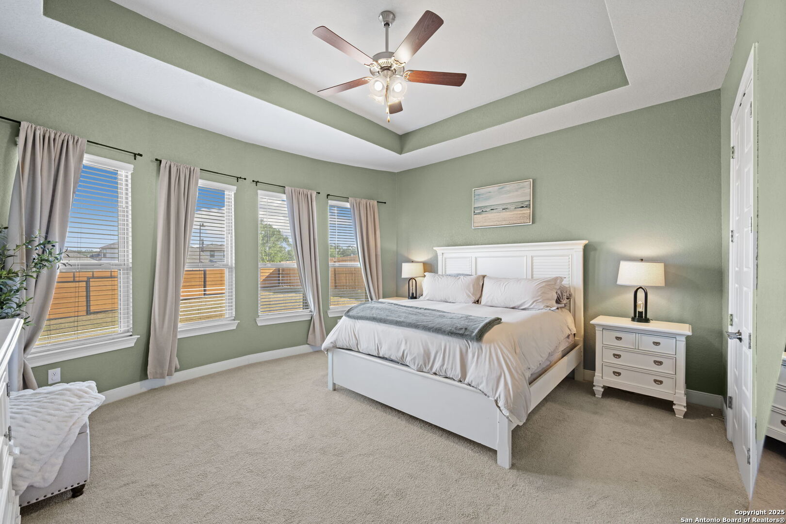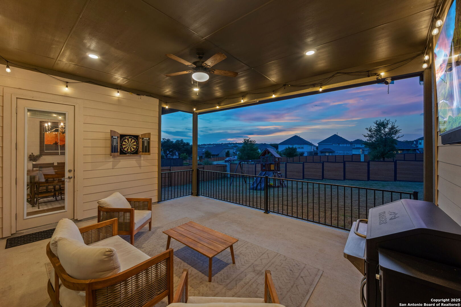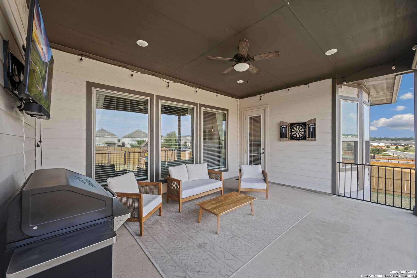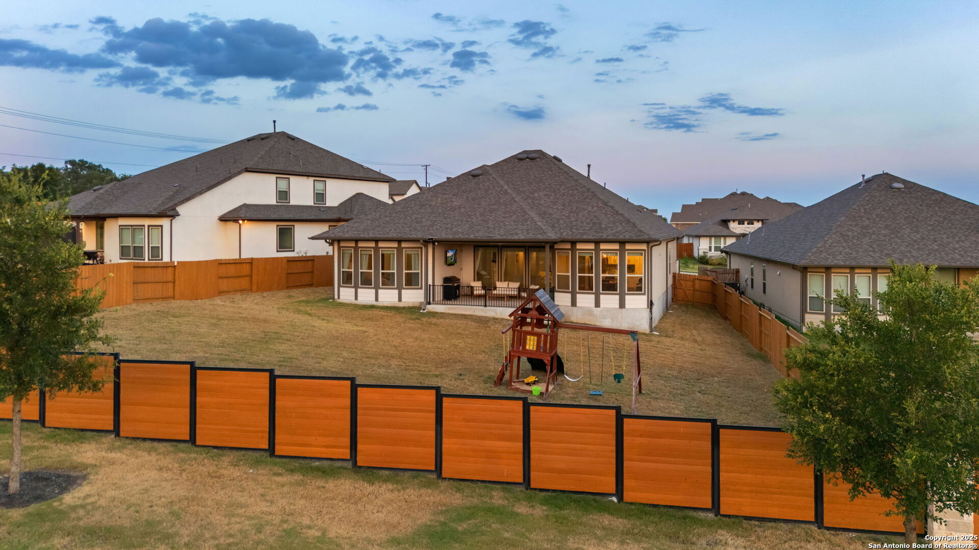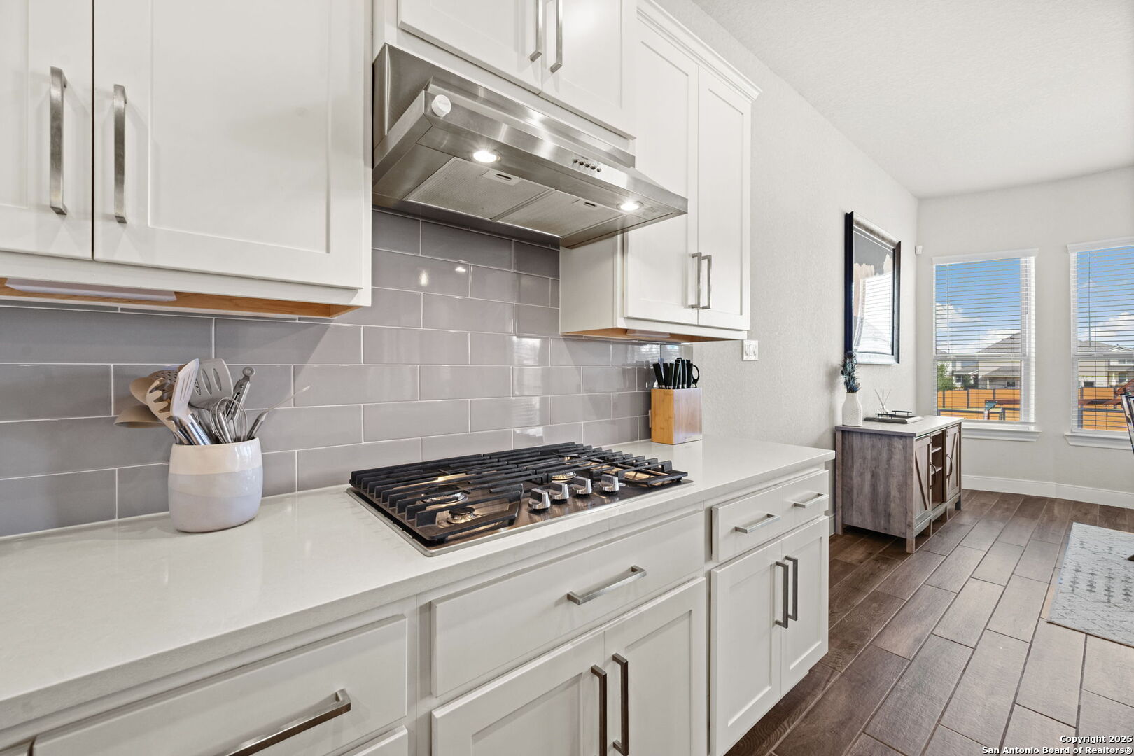 Enjoy the ease of one-story living in this 2,313 sq. ft. Princeton Classic home on a .26-acre lot. With 4 bedrooms and 3 full baths, including a private en suite for guests, there's room for everyone. The owner's retreat is a true escape with tray ceiling, bay windows, and a spa-inspired bath featuring dual vanities, walk-in shower, garden tub, and a generous closet. The heart of the home is the chef's kitchen with quartz counters, gas cooking, and walk-in pantry, opening to an oversized dining area framed by bay windows. Gather in the warm living room with beamed ceilings and fireplace or make use of the versatile flex room with glass doors-perfect for an office, media, or game space. Evenings are made for the oversized covered patio with manual solar shades, overlooking a spacious yard and picture-perfect Texas sunsets. With premier Meyer Ranch amenities, this home blends comfort, style, and community in a way that's hard to beat.