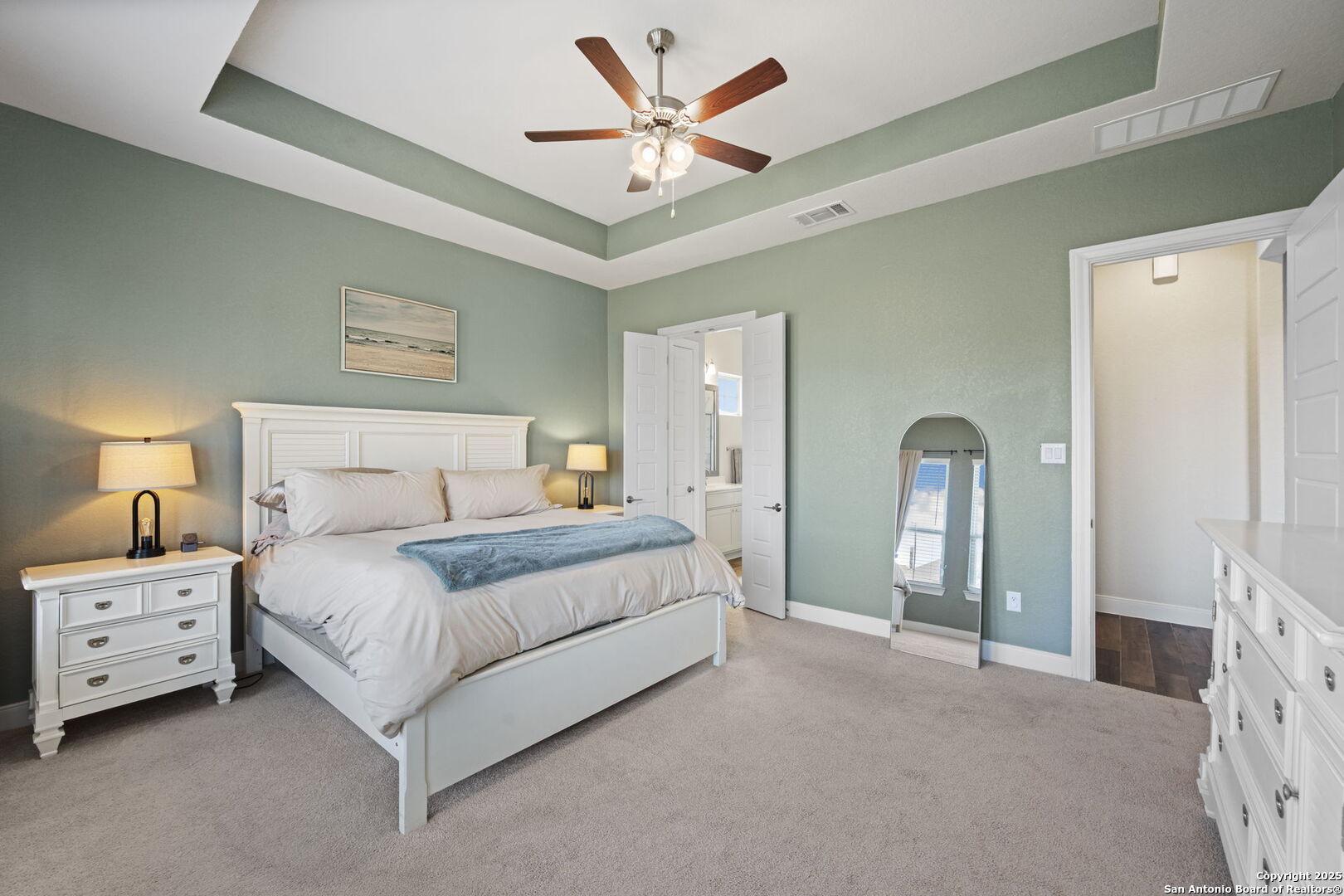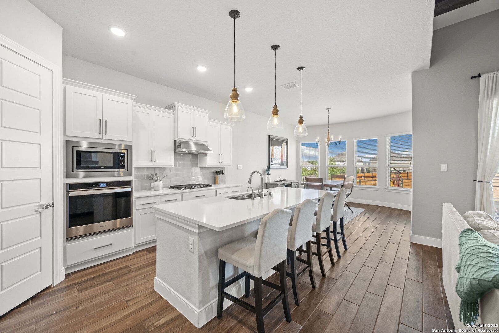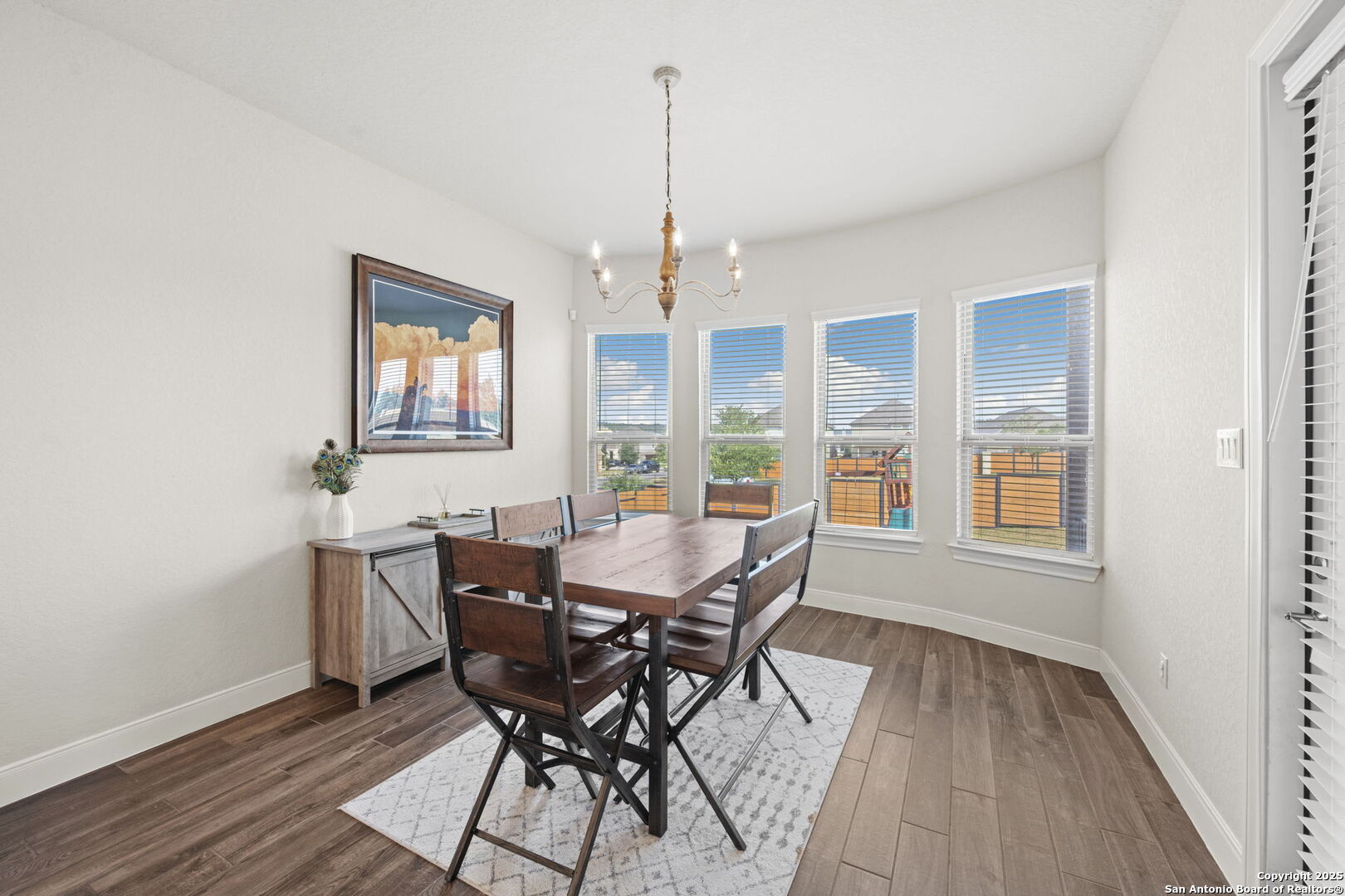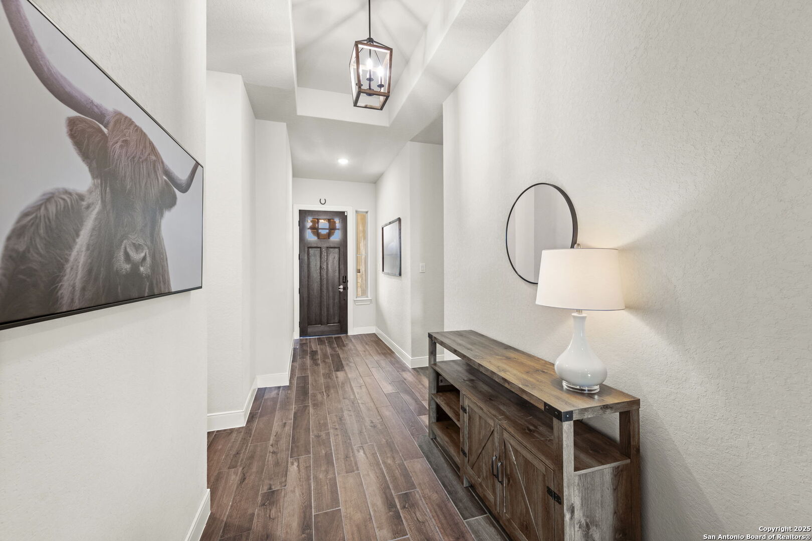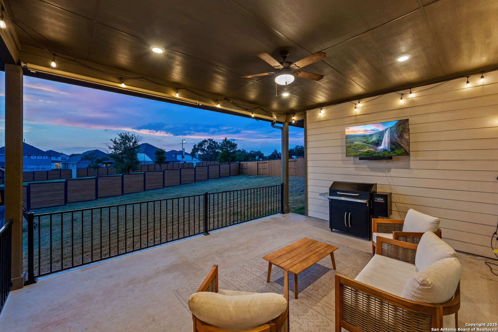 Enjoy the ease of one-story living in this 2,313 sq. ft. Princeton Classic home on a .26-acre lot. With 4 bedrooms and 3 full baths, including a private en suite for guests, there's room for everyone. The owner's retreat is a true escape with tray ceiling, bay windows, and a spa-inspired bath featuring dual vanities, walk-in shower, garden tub, and a generous closet. The heart of the home is the chef's kitchen with quartz counters, gas cooking, and walk-in pantry, opening to an oversized dining area framed by bay windows. Gather in the warm living room with beamed ceilings and fireplace or make use of the versatile flex room with glass doors-perfect for an office, media, or game space. Evenings are made for the oversized covered patio with manual solar shades, overlooking a spacious yard and picture-perfect Texas sunsets. With premier Meyer Ranch amenities, this home blends comfort, style, and community in a way that's hard to beat.