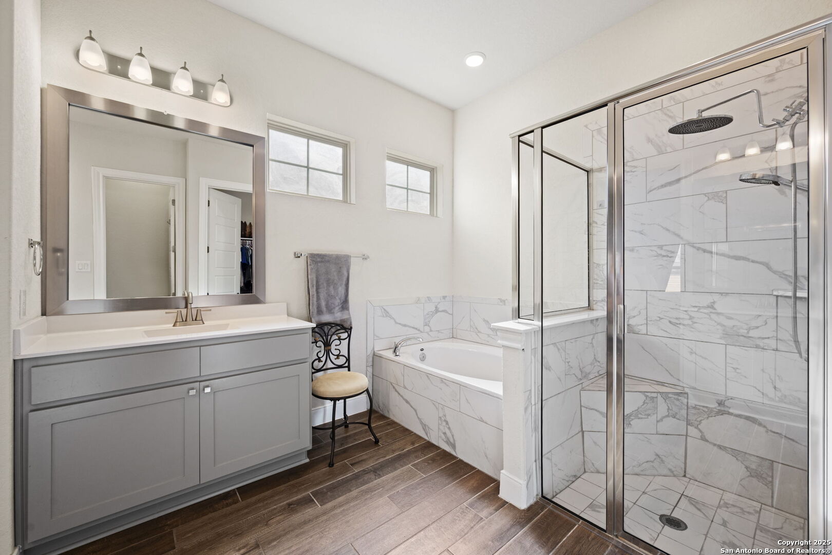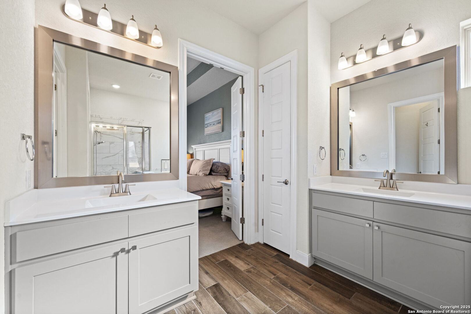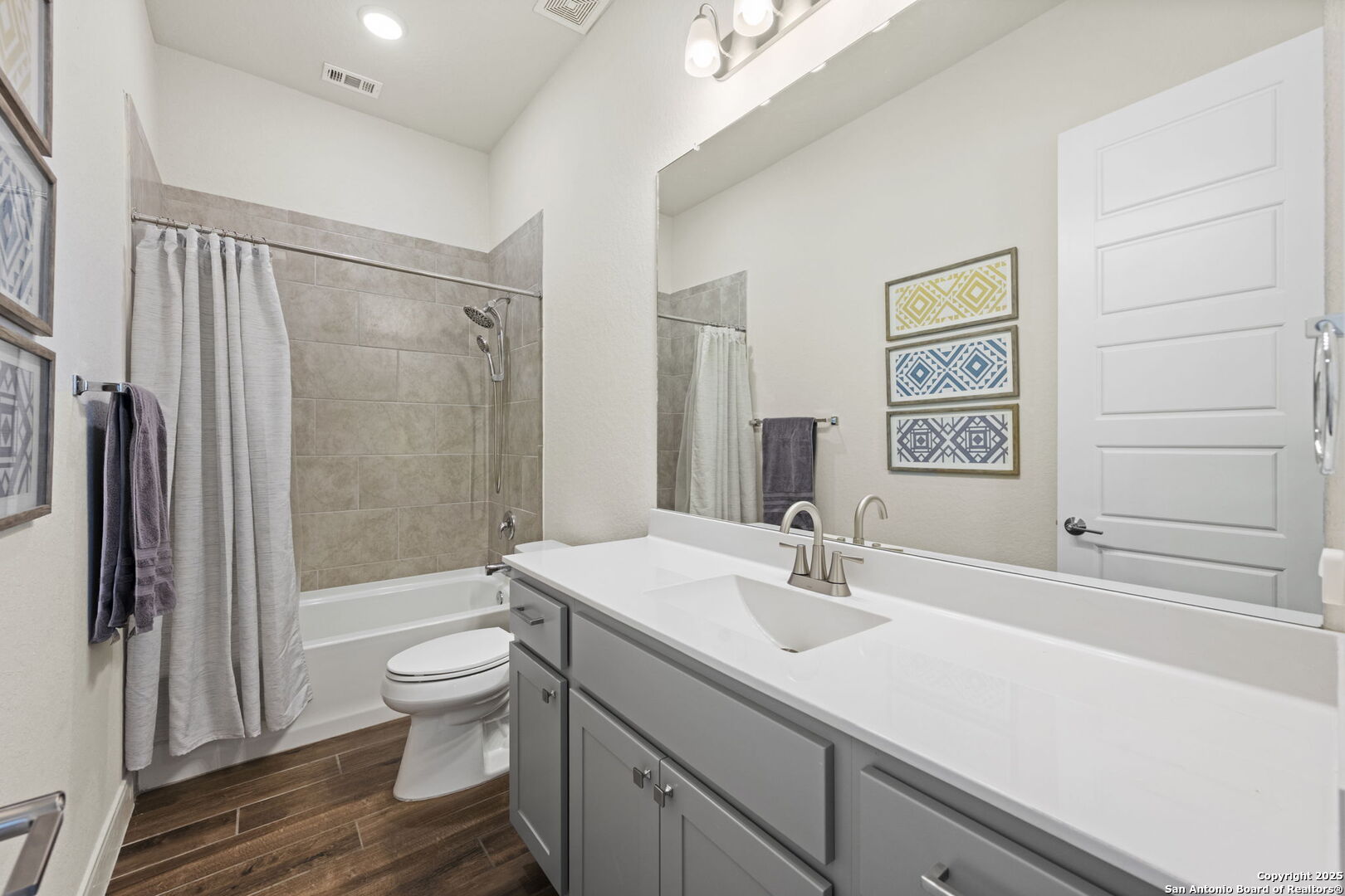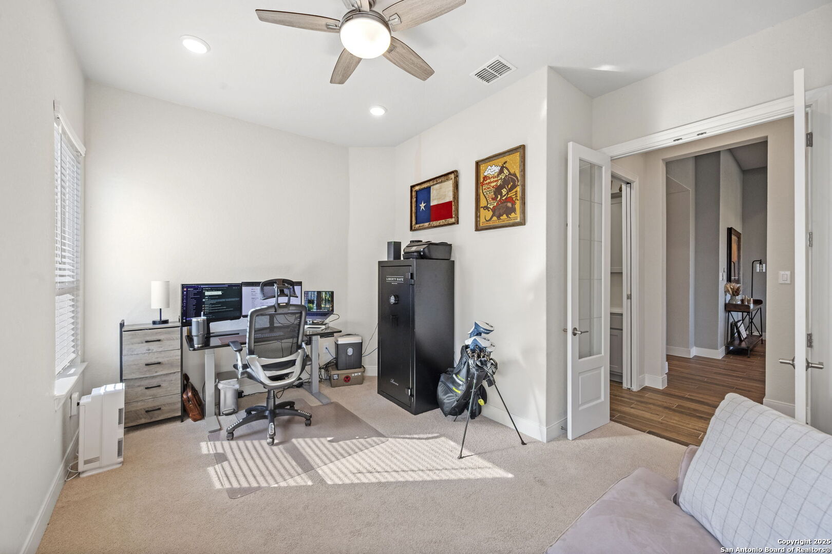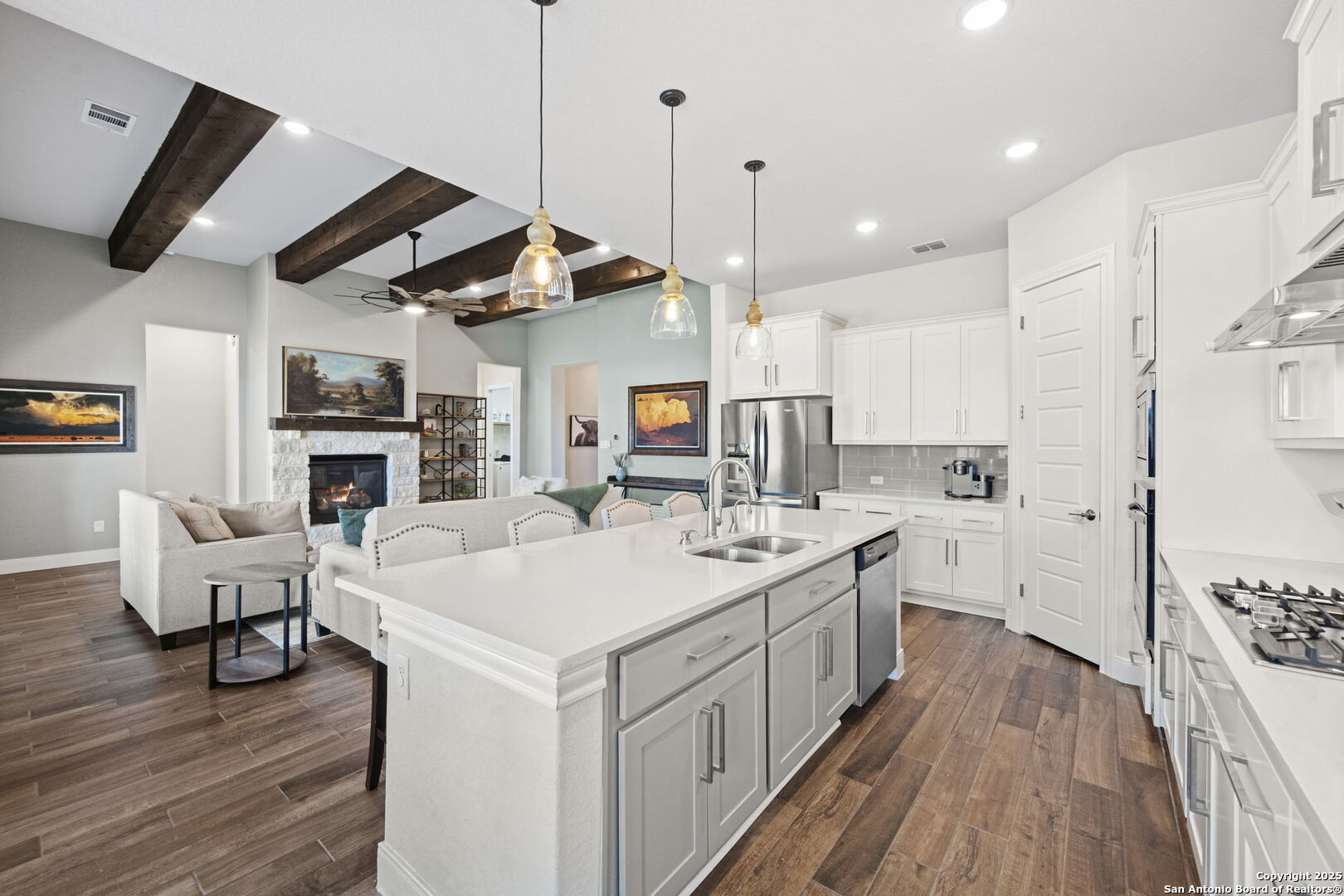 Enjoy the ease of one-story living in this 2,313 sq. ft. Princeton Classic home on a .26-acre lot. With 4 bedrooms and 3 full baths, including a private en suite for guests, there's room for everyone. The owner's retreat is a true escape with tray ceiling, bay windows, and a spa-inspired bath featuring dual vanities, walk-in shower, garden tub, and a generous closet. The heart of the home is the chef's kitchen with quartz counters, gas cooking, and walk-in pantry, opening to an oversized dining area framed by bay windows. Gather in the warm living room with beamed ceilings and fireplace or make use of the versatile flex room with glass doors-perfect for an office, media, or game space. Evenings are made for the oversized covered patio with manual solar shades, overlooking a spacious yard and picture-perfect Texas sunsets. With premier Meyer Ranch amenities, this home blends comfort, style, and community in a way that's hard to beat.