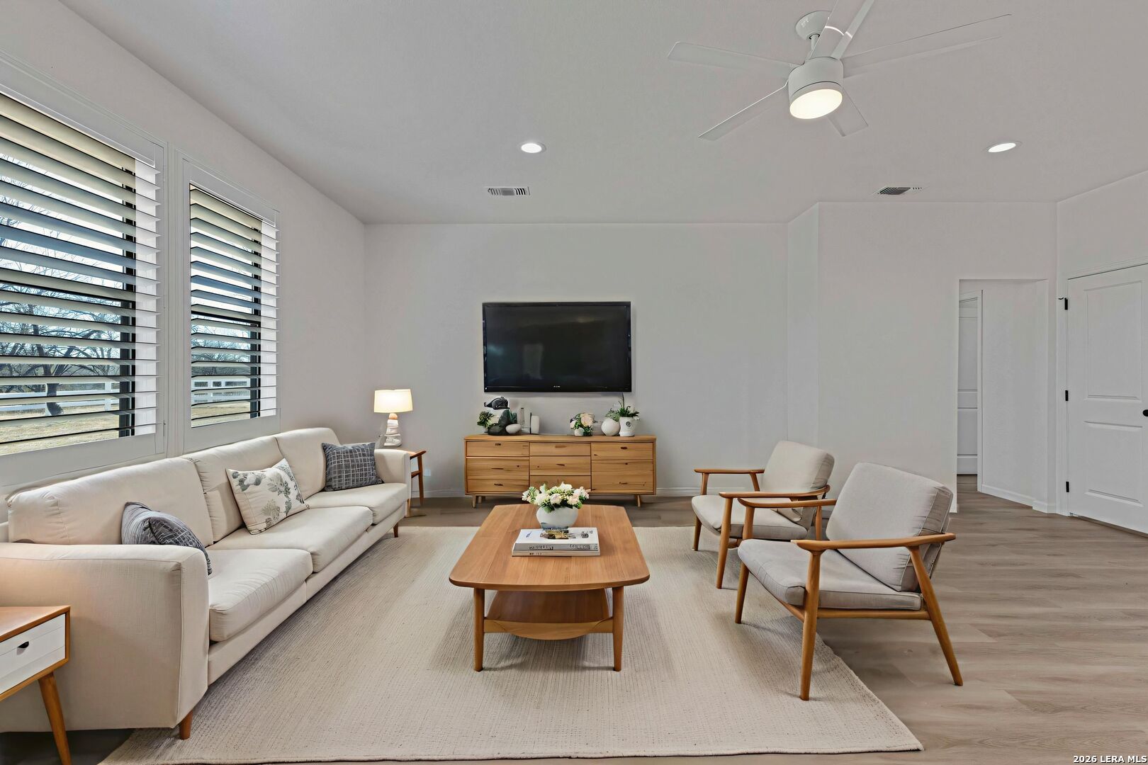 Escape to the wide-open spaces of this stunning 11.94-acre retreat. This move-in-ready ranch home offers 4 bedrooms and 2.5 bathrooms, providing the perfect footprint for a growing family seeking the peace of the countryside. You'll love the heart of the home: a bright, open kitchen featuring a stylish two-toned aesthetic and a massive island where kids can do homework while you prep dinner, or friends can gather for weekend celebrations. As the day winds down, retreat to your deep-covered patio to soak in breathtaking panoramic sunsets over your private acreage-the ultimate backdrop for evening relaxation. Positioned nearly 40 miles from the heart of San Antonio, this retreat offers the perfect balance: city convenience when you want it, and crisp country air the moment you arrive home.