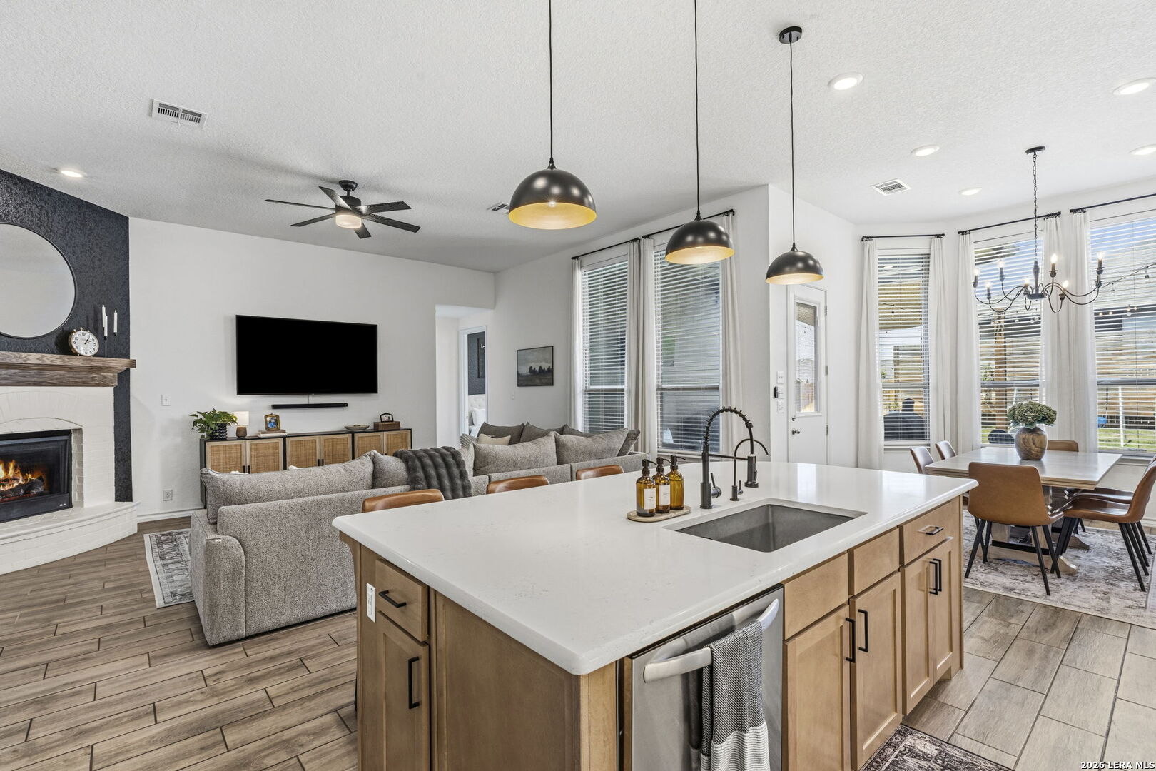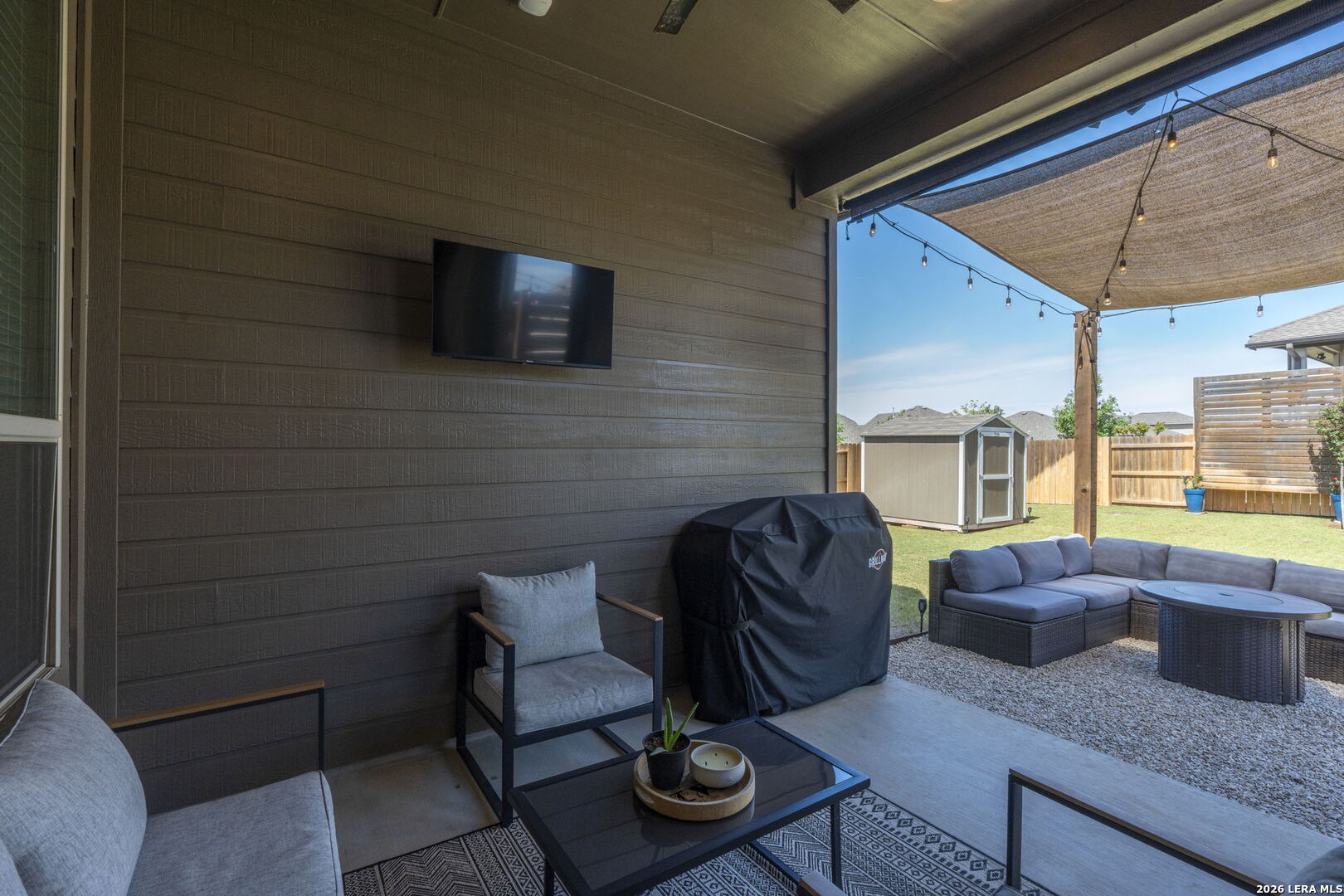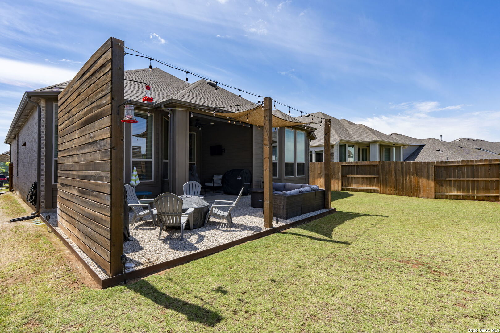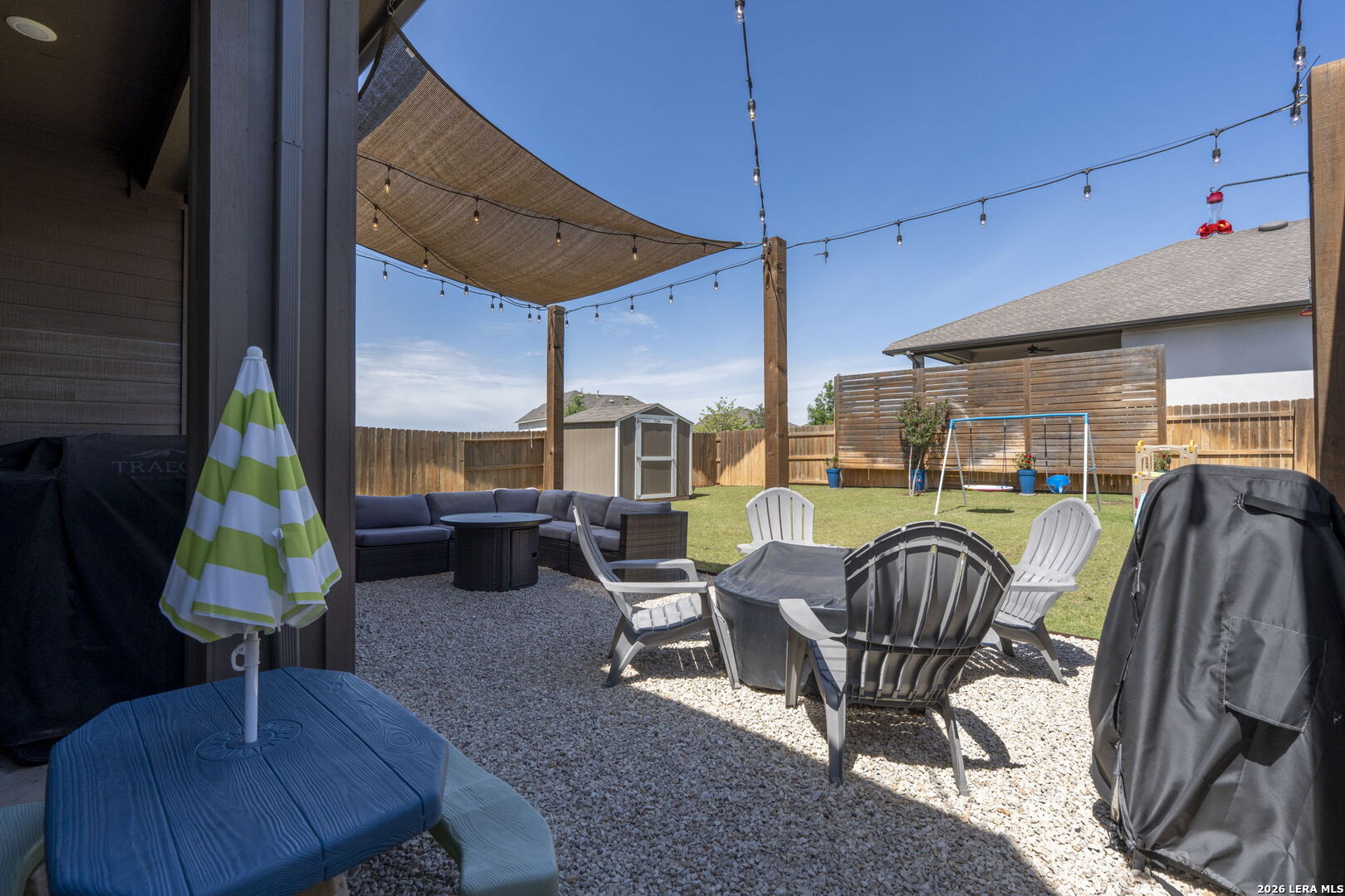 Welcome to this beautiful single-story Highland home with 4 bedrooms and 3 bathrooms, located in the highly sought-after Meyer Ranch community. When you walk in, you're greeted with a beautiful view into the main living area, filled with natural light and high ceilings that create an open, airy feel. Two secondary bedrooms and a full bath are down the hall on the right and both bedrooms feature walk-in closets. To the left is a third bedroom with a walk-in closet, a full bathroom just outside the room, and the laundry room, offering a flexible setup for guests, office space, or everyday living. The main living area features a beautiful gas fireplace and flows seamlessly into the kitchen and breakfast nook. The kitchen offers ample cabinetry and counter space, along with an upgraded concrete sink and updated lighting and light fixtures throughout the entire home. The primary suite is privately located at the back of the home and includes a spacious area with beautiful bay windows. The bathroom includes a newly remodeled shower, dual sinks with a vanity, and a spacious walk-in closet. The backyard is set up for easy enjoyment with an extended patio, string lighting, privacy walls, and a storage shed, along with added landscaping for a finished feel. Enjoy relaxing evenings on the patio with beautiful sunset views right from your backyard. Additional upgrades include whole-home gutters, custom high resolution, LED red and white Christmas lighting, water softener with reverse osmosis system, tankless gas water heater, LED garage lighting, and a front driveway extension used a dedicated walkway for added convenience and curb appeal. Residents enjoy access to a community pool, two parks, sidewalks, walking paths, BBQ grills, and a strong sense of community. Schedule your showing today and come see what makes this home the perfect place and community to call home!