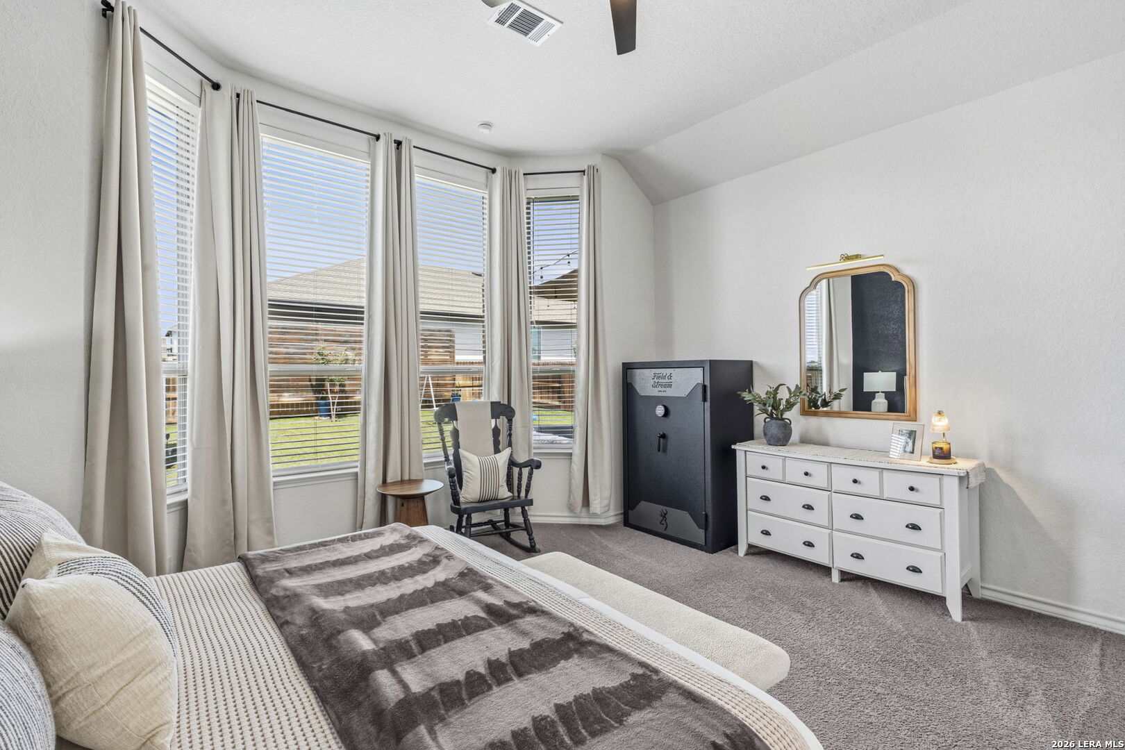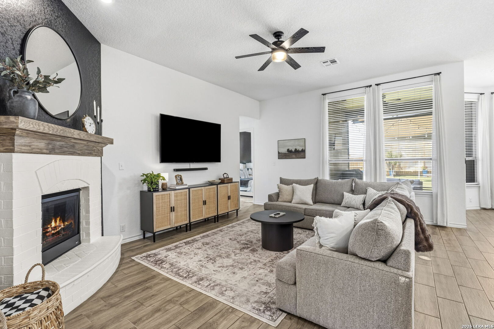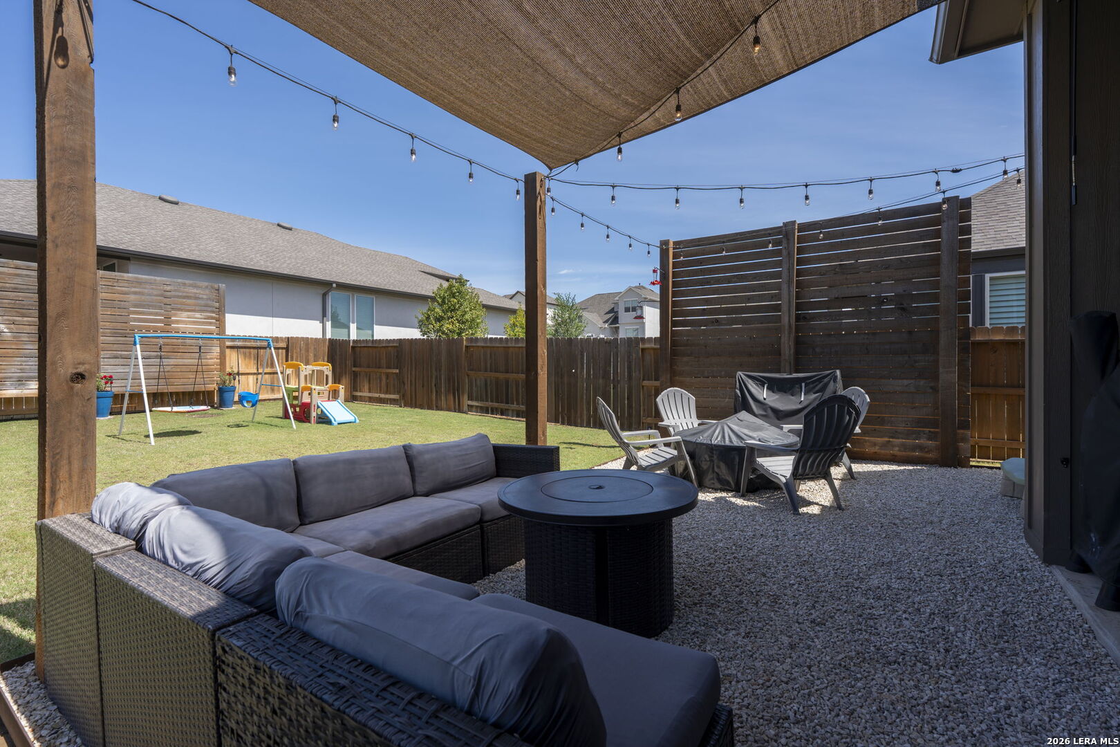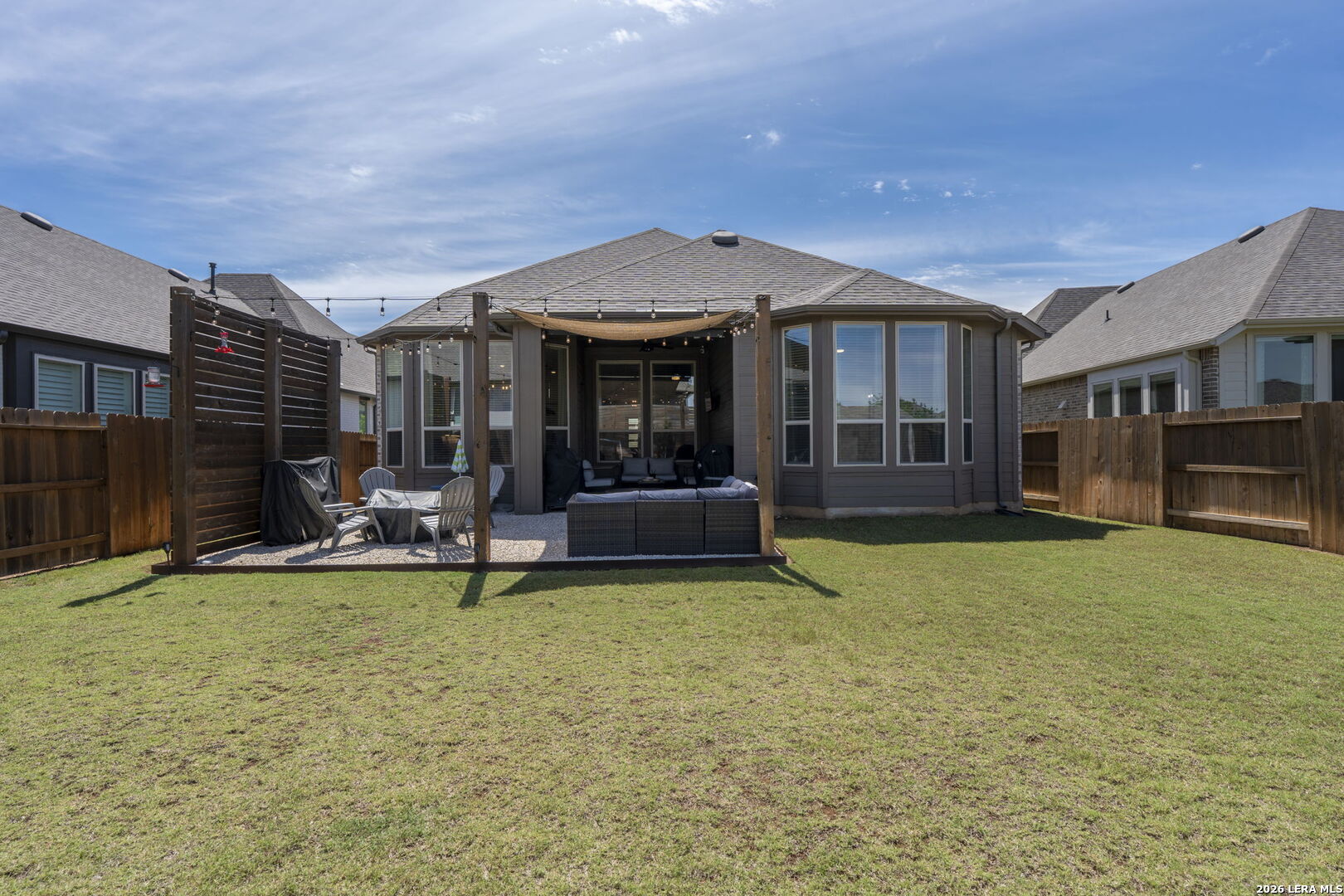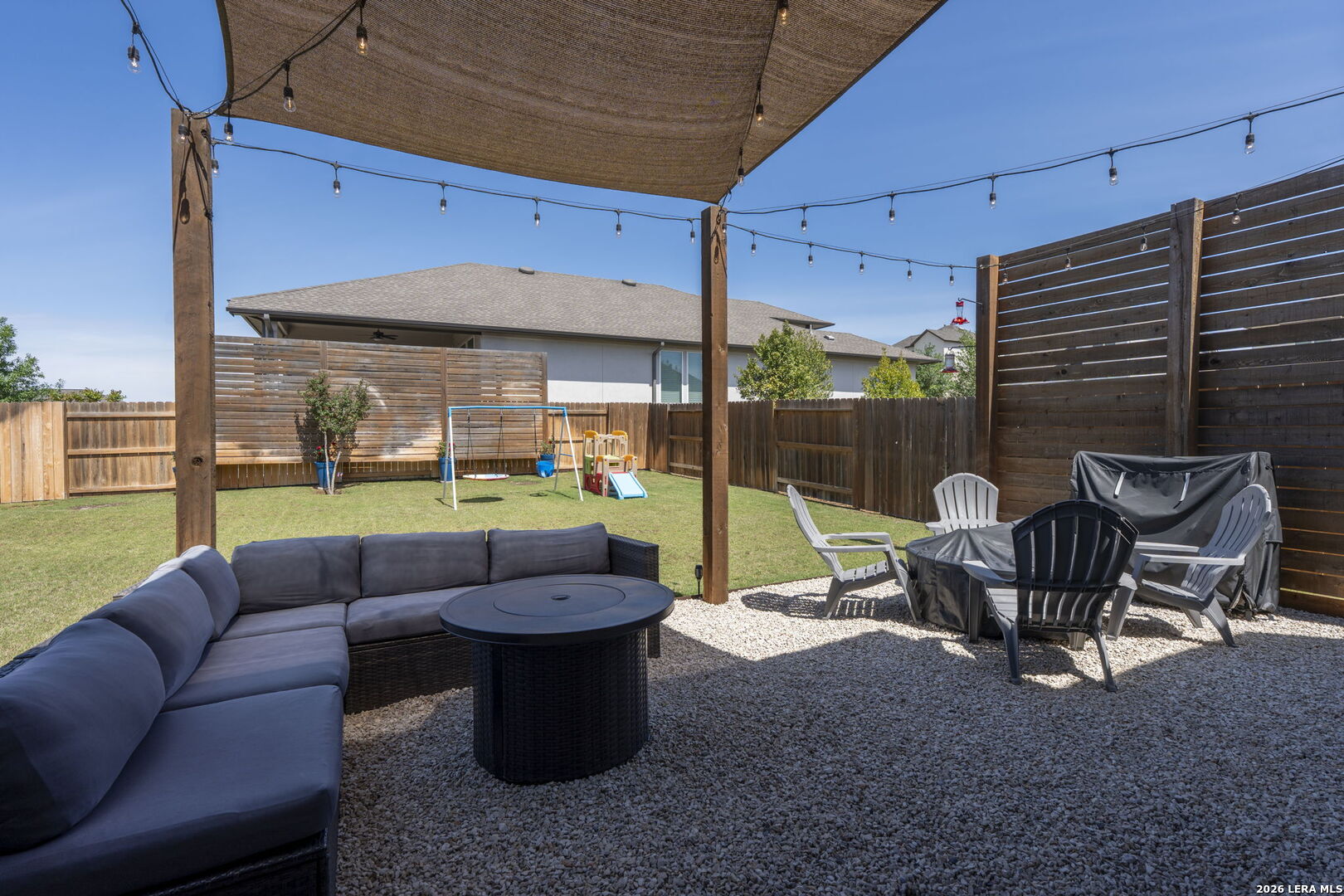 Welcome to this beautiful single-story Highland home with 4 bedrooms and 3 bathrooms, located in the highly sought-after Meyer Ranch community. When you walk in, you're greeted with a beautiful view into the main living area, filled with natural light and high ceilings that create an open, airy feel. Two secondary bedrooms and a full bath are down the hall on the right and both bedrooms feature walk-in closets. To the left is a third bedroom with a walk-in closet, a full bathroom just outside the room, and the laundry room, offering a flexible setup for guests, office space, or everyday living. The main living area features a beautiful gas fireplace and flows seamlessly into the kitchen and breakfast nook. The kitchen offers ample cabinetry and counter space, along with an upgraded concrete sink and updated lighting and light fixtures throughout the entire home. The primary suite is privately located at the back of the home and includes a spacious area with beautiful bay windows. The bathroom includes a newly remodeled shower, dual sinks with a vanity, and a spacious walk-in closet. The backyard is set up for easy enjoyment with an extended patio, string lighting, privacy walls, and a storage shed, along with added landscaping for a finished feel. Enjoy relaxing evenings on the patio with beautiful sunset views right from your backyard. Additional upgrades include whole-home gutters, custom high resolution, LED red and white Christmas lighting, water softener with reverse osmosis system, tankless gas water heater, LED garage lighting, and a front driveway extension used a dedicated walkway for added convenience and curb appeal. Residents enjoy access to a community pool, two parks, sidewalks, walking paths, BBQ grills, and a strong sense of community. Schedule your showing today and come see what makes this home the perfect place and community to call home!