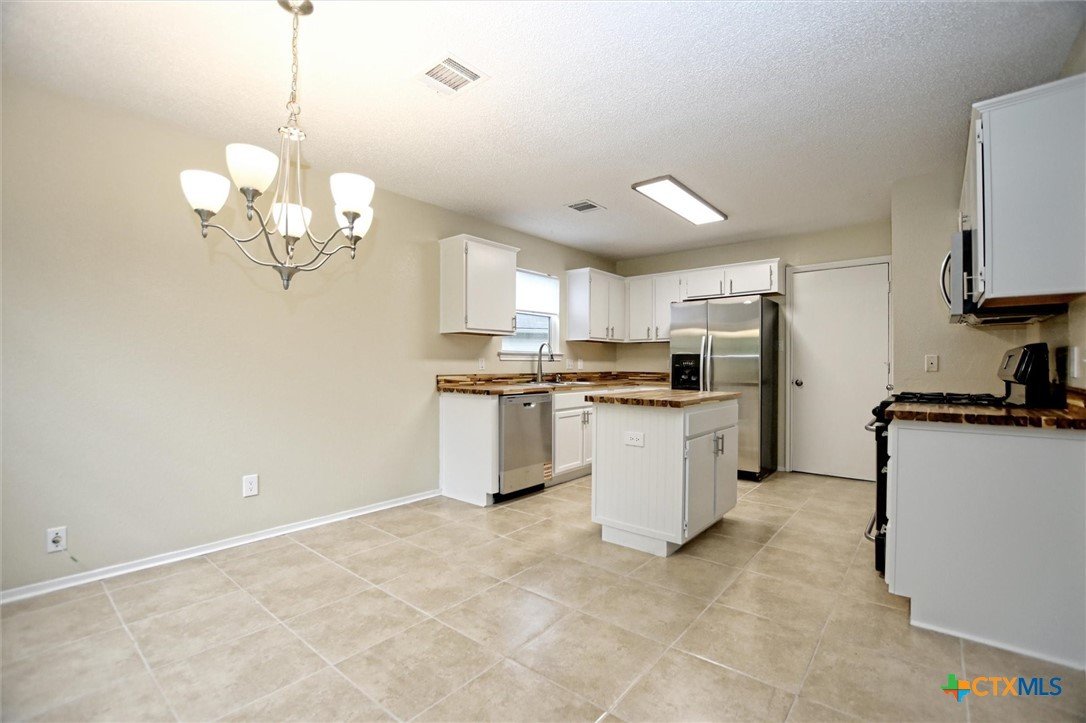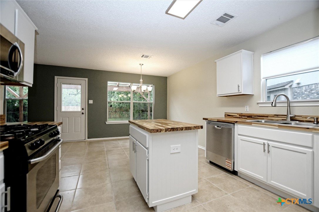 Welcome to 1629 Sylvia Court-an inviting two-story home offering 3 bedrooms, 2.5 baths, and a loft in a prime location! This light, bright, and open floor plan features a spacious living room with a cozy fireplace that flows seamlessly into the breakfast area and fully updated kitchen-perfect for everyday living and entertaining. The kitchen shines with new cabinetry, butcher block countertops, updated hardware, and upgraded appliances and a new dishwasher. Recent upgrades include: luxury vinyl plank flooring throughout the main level, new carpet upstairs, fresh interior paint, updated light fixtures, a Nest thermostat, and a 2 year old roof. Upstairs, you’ll find a generous loft with its own closet-ideal as a game room, home office, or potential 4th bedroom. The oversized backyard offers plenty of room to relax or play, complete with a large covered and extended patio. Additional highlights include a 2-car garage with a new garage door and an Amana washer and dryer that convey. Conveniently located near top-rated schools including Old Town Elementary, Walsh Middle School, and Round Rock High School, with easy access to shopping, dining, and major roadways.