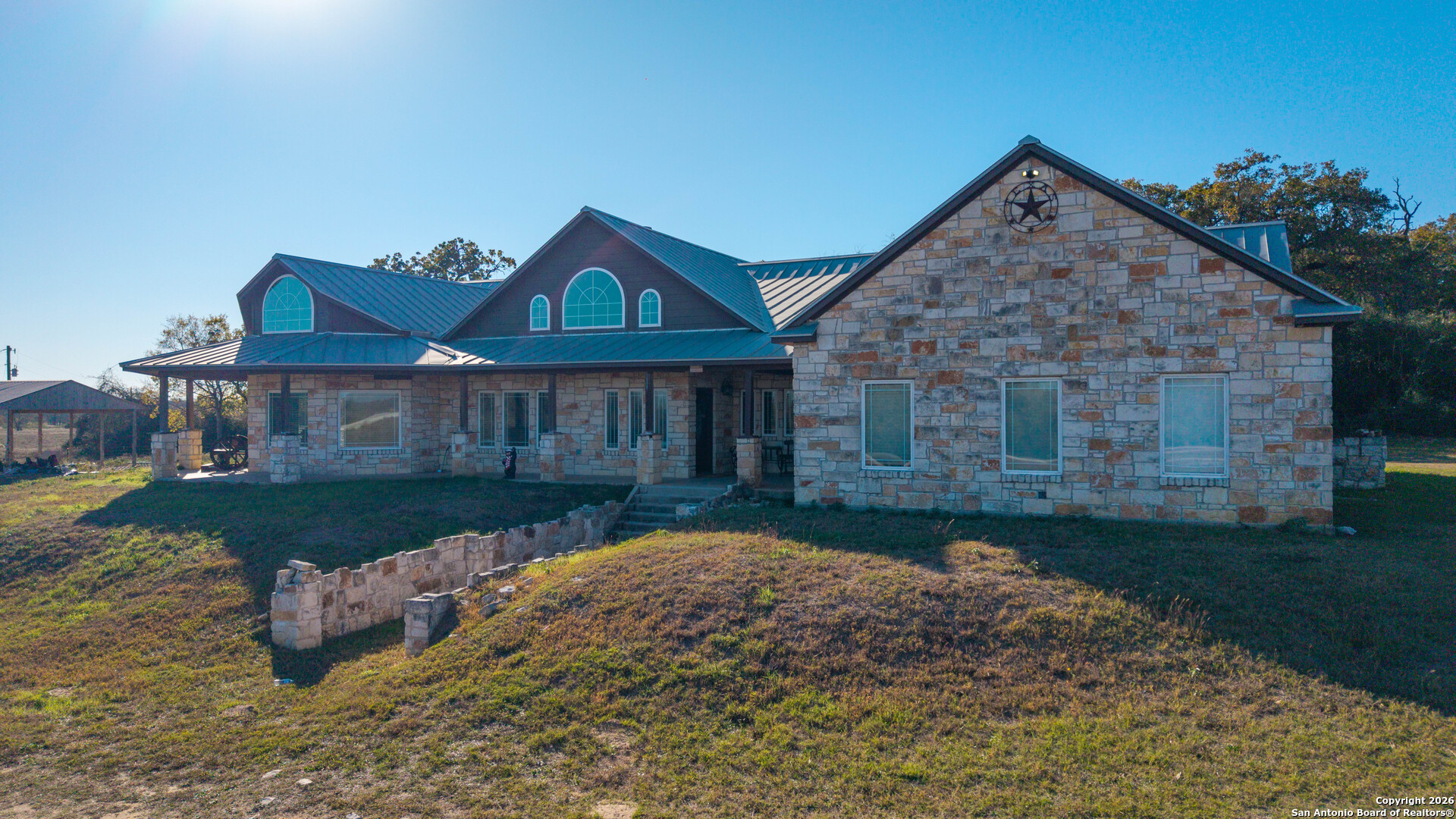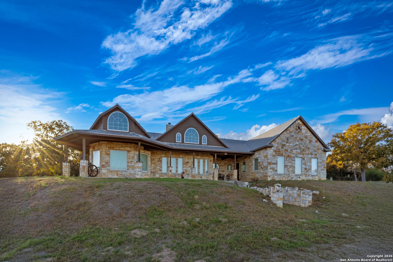 Welcome to this exceptional custom Austin limestone home situated on approximately 8.87 acres in Harwood, Texas. Offering approximately 3,200 square feet, this thoughtfully designed home features 4 bedrooms, 3 full baths, and 2 half baths, with spacious open concept living areas ideal for both everyday living and entertaining. A charming wraparound porch overlooks the scenic property, where mature oak trees and a tranquil pond create a private and serene country setting. The land offers ample opportunities for outdoor recreation, hunting, or future improvements. Additional highlights include an RV/trailer pavilion on a concrete slab equipped with electric, water, and sewer hookups, providing flexibility for guests or extended stays. Located in Gonzales County, the property offers convenient access to nearby towns and minutes from I10 while maintaining the peace and privacy of true Texas country living. This property combines space, versatility, and timeless Hill Country charm-an exceptional opportunity to enjoy rural living at its finest.