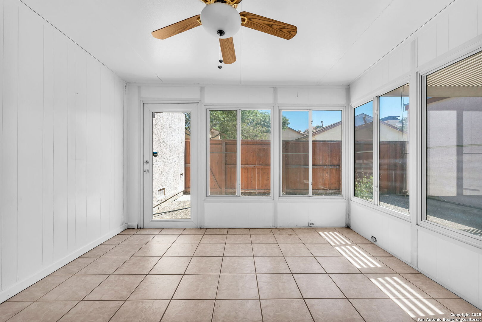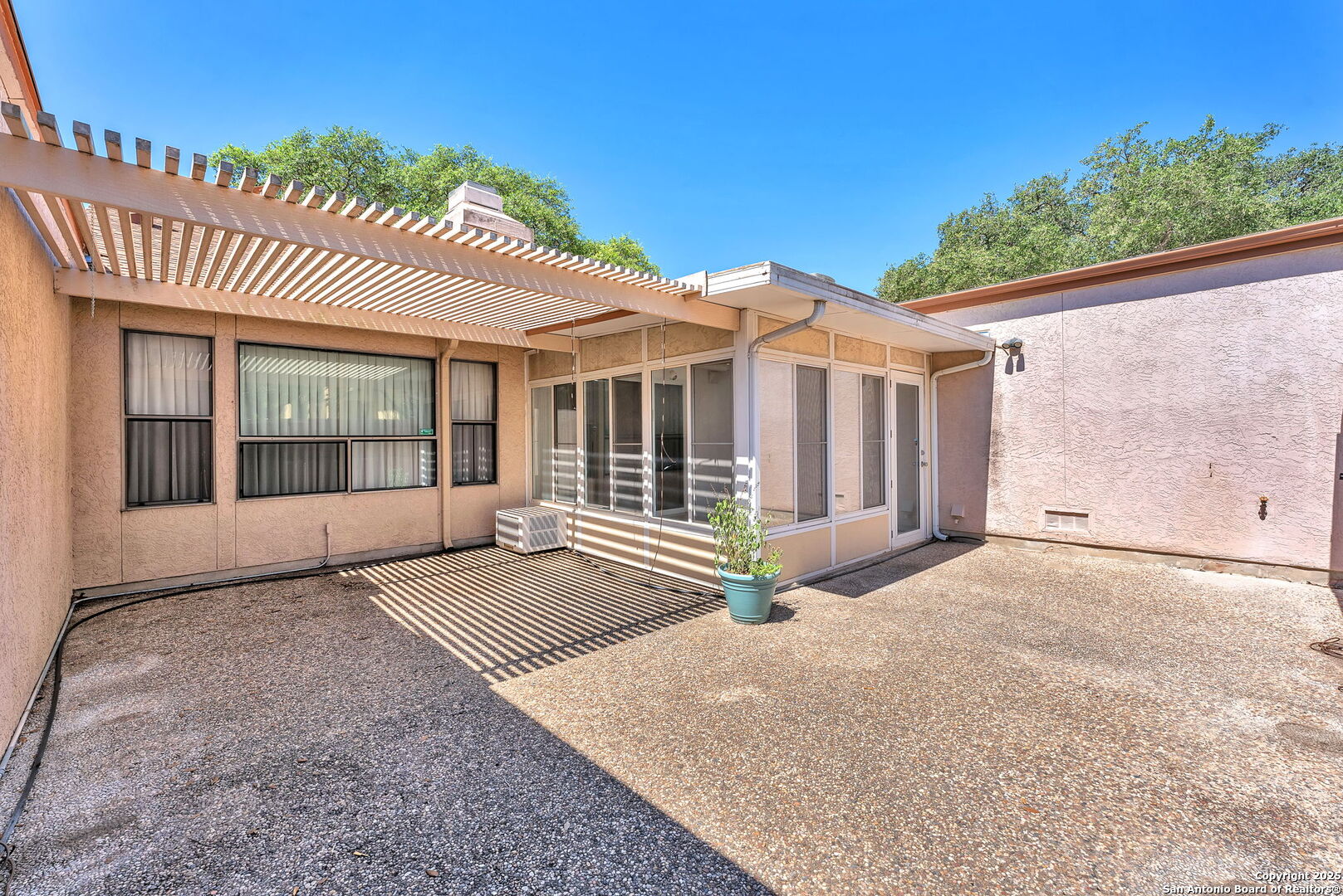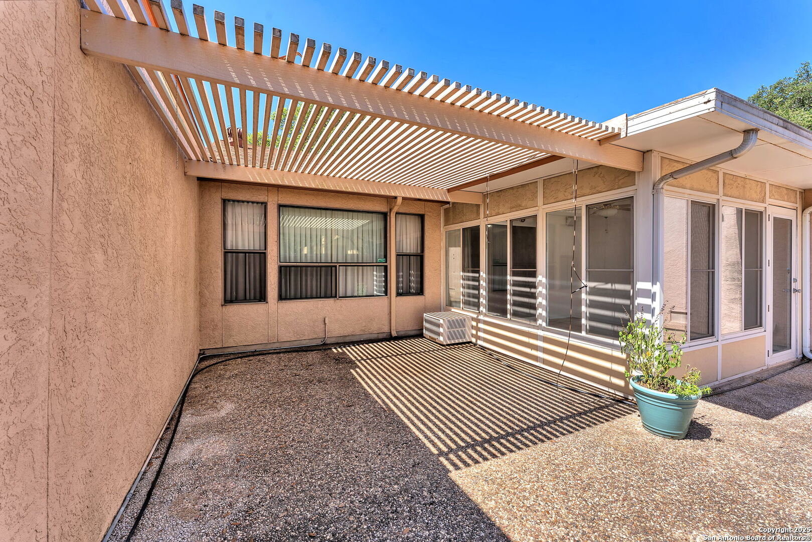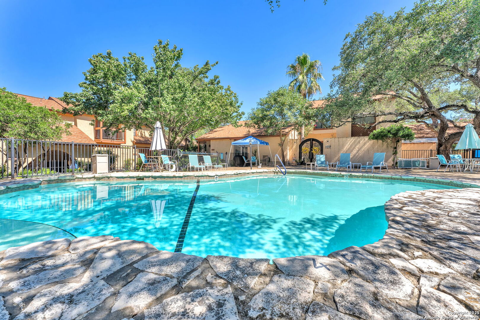 Townhome living at it's finest! Nestled within the complex and away from road noise, this 2/2 is ready for you! With plenty of room for a dining table and comfortable living area, you can also utilize the sun room for your favorite plants or art projects. The primary bath has an updated shower and a large walk in closet, in addition to a closet for linens. The secondary bedroom is separated well from the primary, with a second bath easily accessible. The low maintenance private patio is ready for your personalization, and the community pool is a short walk away. Close to shopping, 1604/281, and a quick shot to get to IH35 or IH10. Schedule your showing soon!