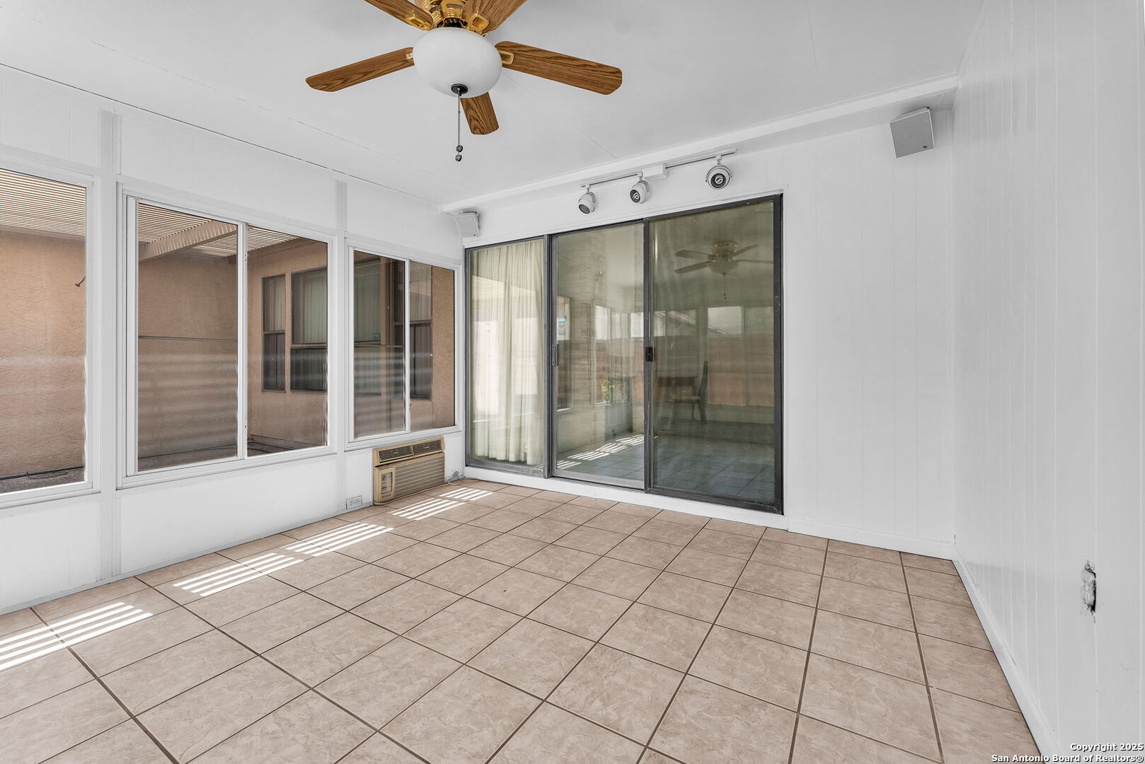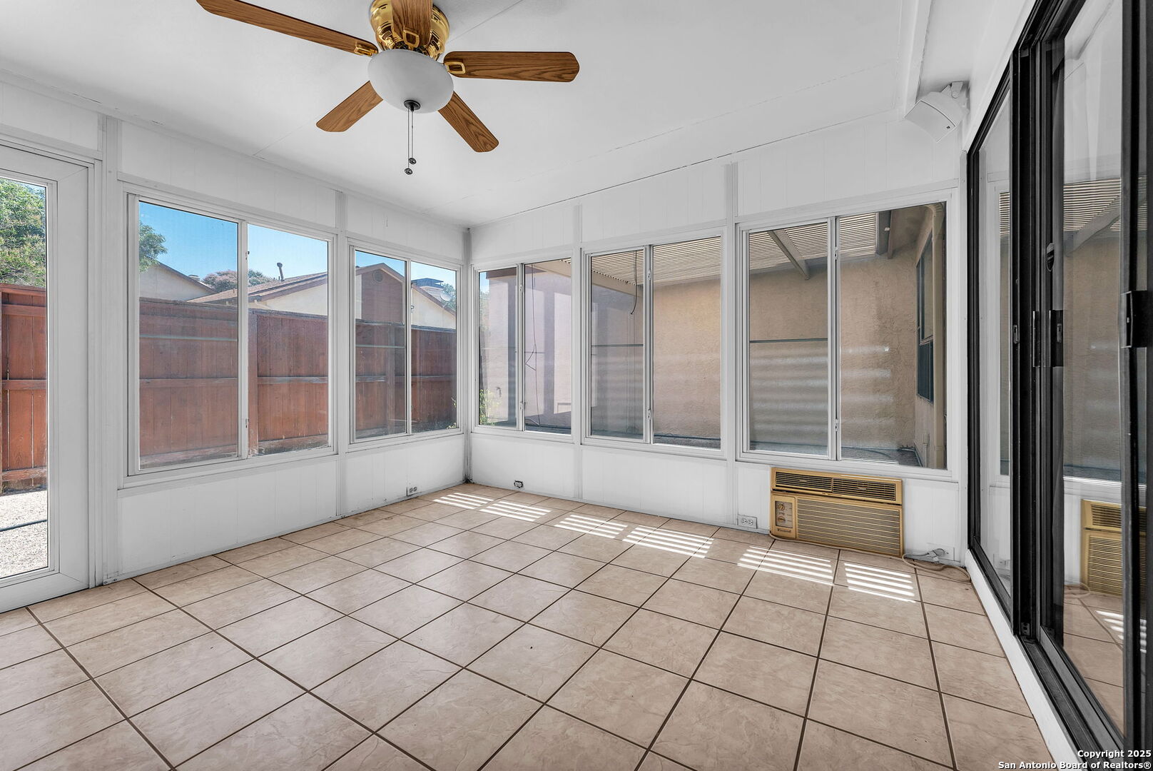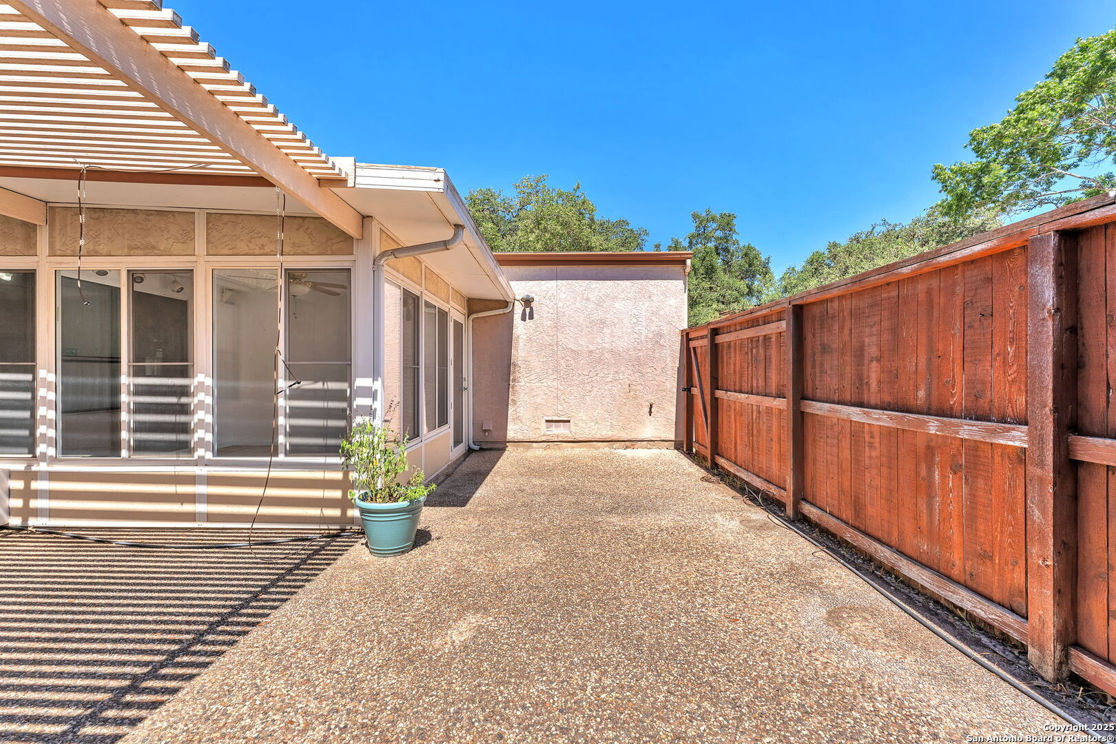 Townhome living at it's finest! Nestled within the complex and away from road noise, this 2/2 is ready for you! With plenty of room for a dining table and comfortable living area, you can also utilize the sun room for your favorite plants or art projects. The primary bath has an updated shower and a large walk in closet, in addition to a closet for linens. The secondary bedroom is separated well from the primary, with a second bath easily accessible. The low maintenance private patio is ready for your personalization, and the community pool is a short walk away. Close to shopping, 1604/281, and a quick shot to get to IH35 or IH10. Schedule your showing soon!