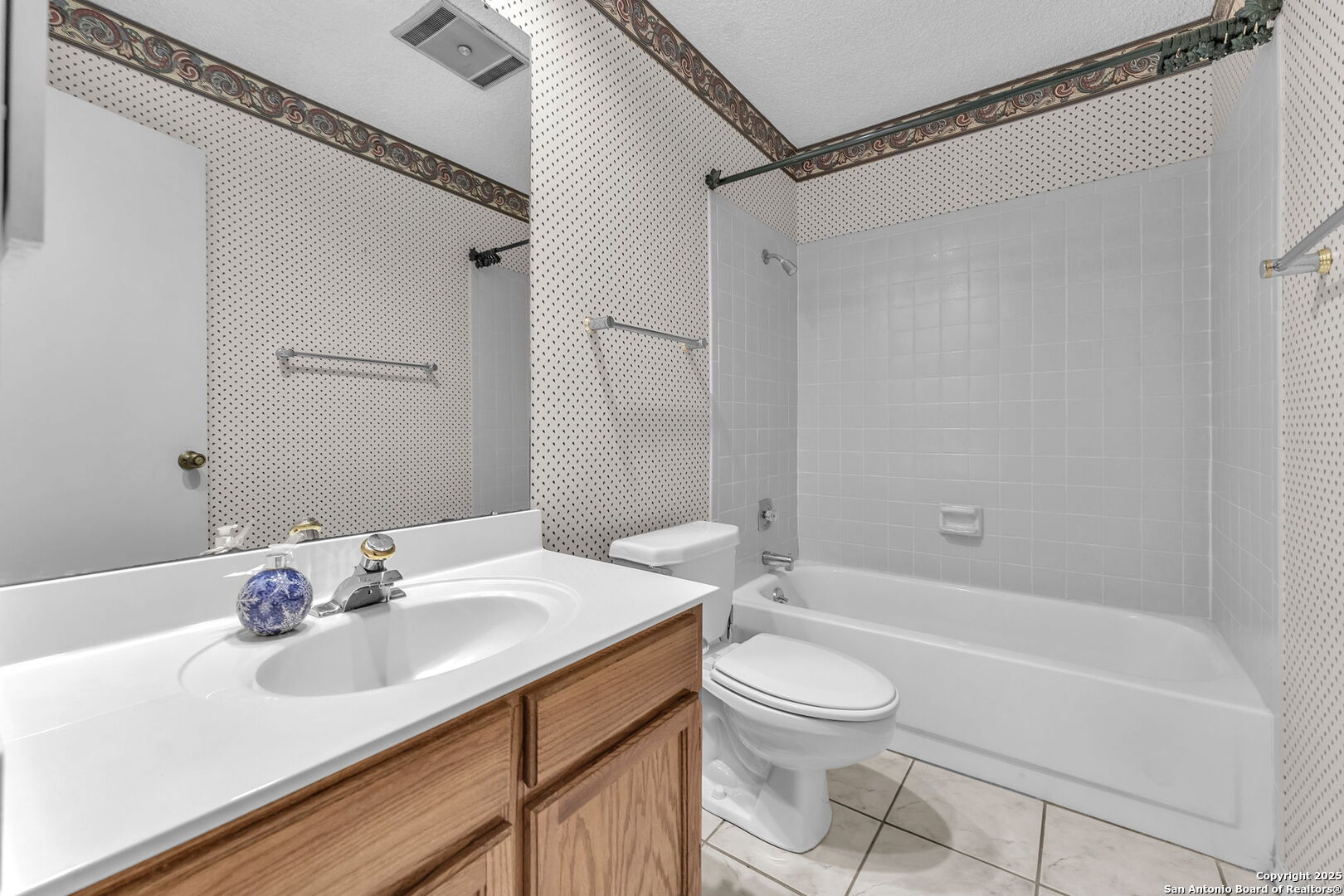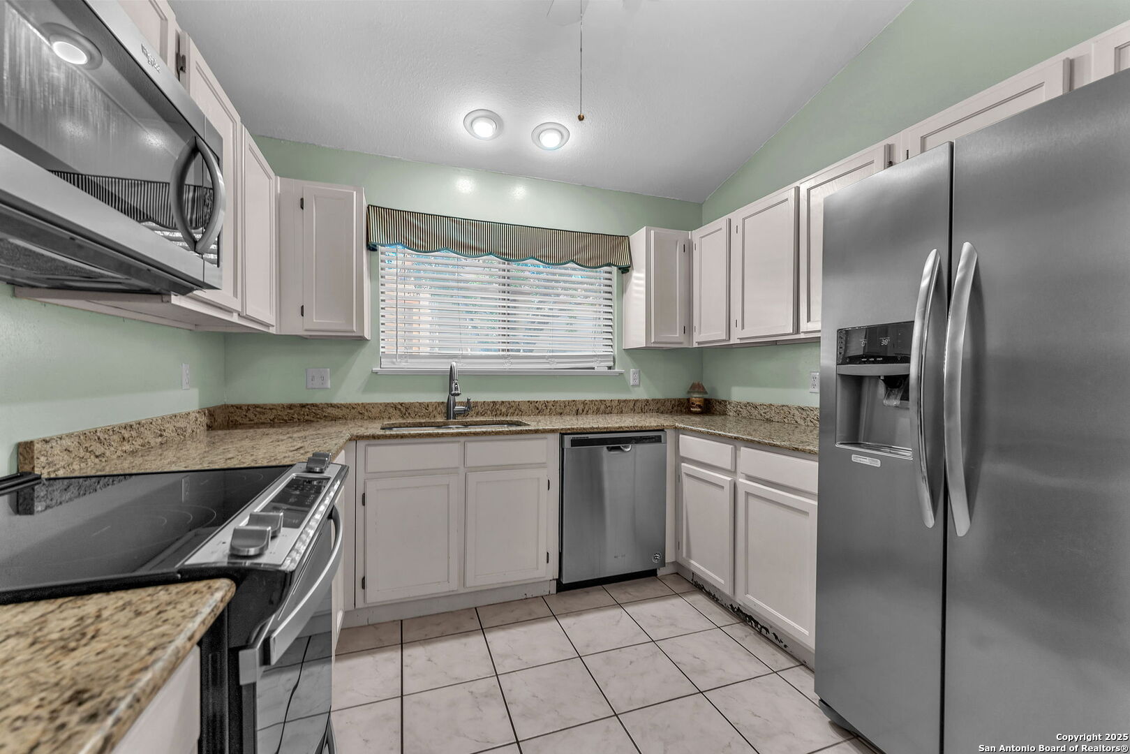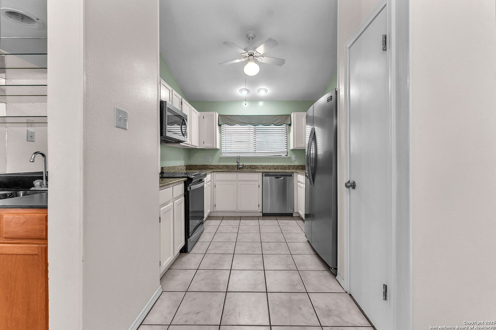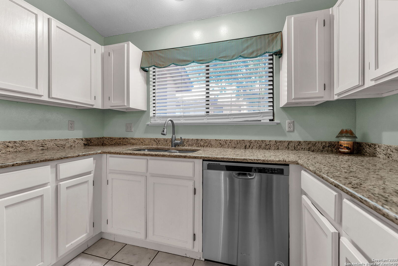 Townhome living at it's finest! Nestled within the complex and away from road noise, this 2/2 is ready for you! With plenty of room for a dining table and comfortable living area, you can also utilize the sun room for your favorite plants or art projects. The primary bath has an updated shower and a large walk in closet, in addition to a closet for linens. The secondary bedroom is separated well from the primary, with a second bath easily accessible. The low maintenance private patio is ready for your personalization, and the community pool is a short walk away. Close to shopping, 1604/281, and a quick shot to get to IH35 or IH10. Schedule your showing soon!