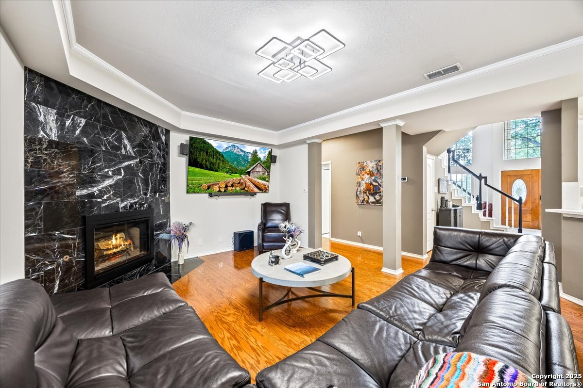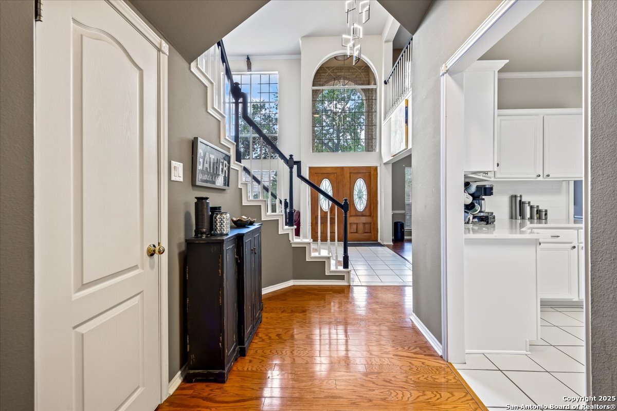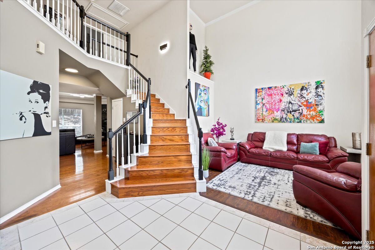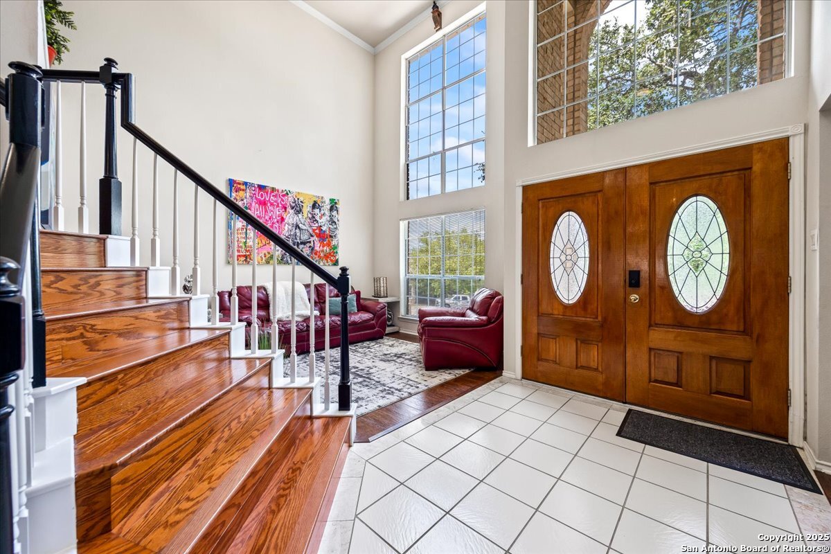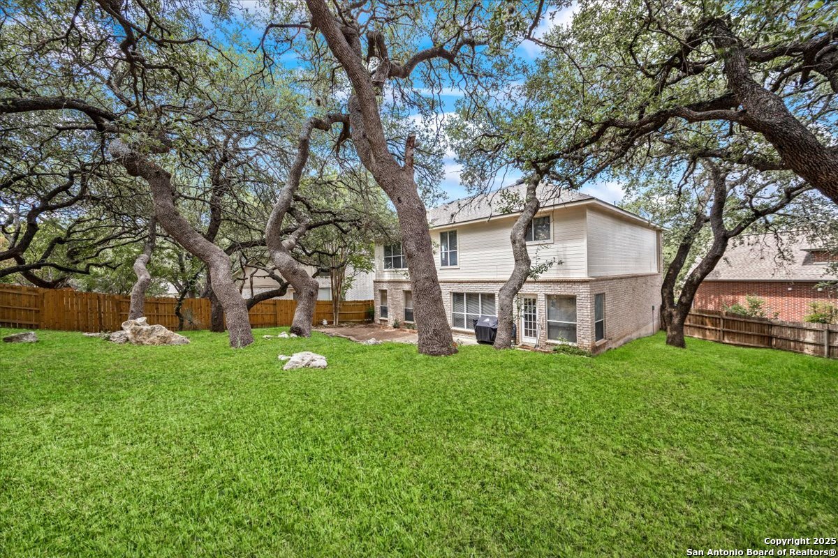 This beautiful home offers space, style, and comfort in one of the area's most sought-after neighborhoods. Step inside to a grand entry with a sweeping staircase and enjoy an open floor plan that seamlessly connects two spacious family rooms, a separate formal dining area, and a large kitchen-perfect for both everyday living and entertaining. The oversized primary suite is a true retreat, featuring a generous walk-in closet and a luxurious en-suite bath with a separate shower and soaking tub. Outdoors, mature trees provide shade and privacy, while permanent LED exterior lighting adds charm and curb appeal year-round. The expansive backyard patio is ideal for hosting gatherings or relaxing in your own serene space. Enjoy added peace of mind and exclusivity in this gated community. Don't miss your chance to own this exceptional property in the Heights at Westover!