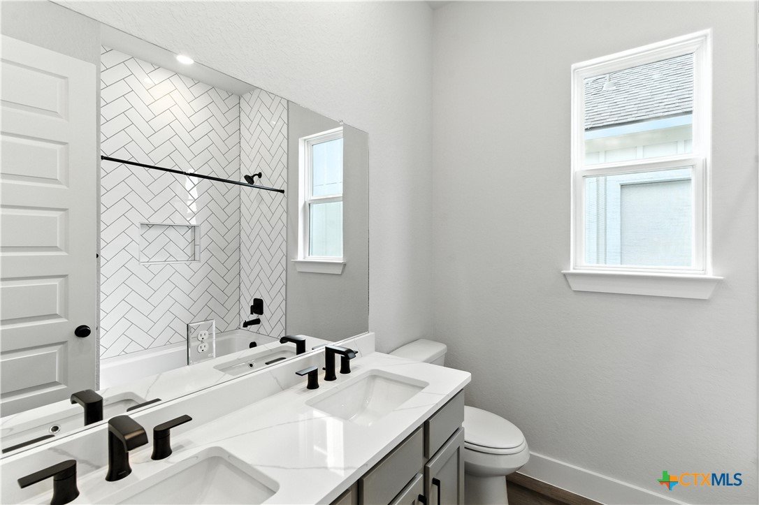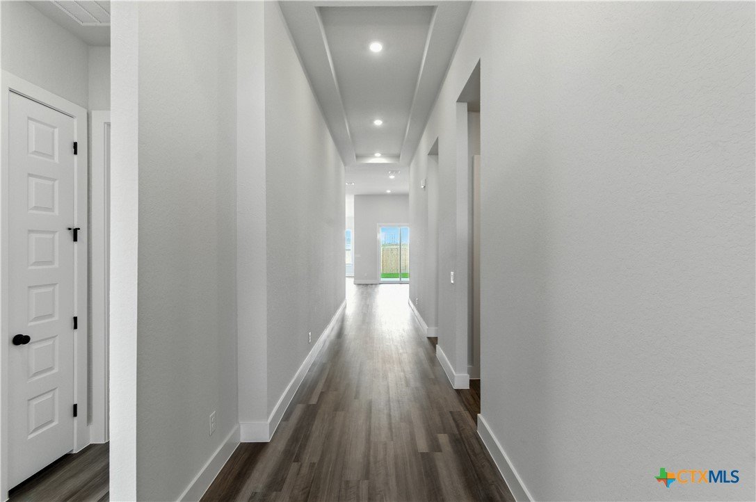 Discover 1637 Saddleback Run, nestled in the picturesque community of Weltner Farms in New Braunfels, TX. This Texas-sized home offers the perfect blend of peaceful hill country living and upscale finishes. Key Features Spacious Design: This Texas-sized floor plan welcomes you with a grand foyer leading into the heart of the home, where natural light enhances the open-concept design. The spacious layout seamlessly connects the kitchen and living room, creating an inviting atmosphere for entertaining. At the center of it all, the large kitchen features gas appliances, a walk-in pantry, and a cozy dining nook. Thoughtful Lifestyle Options: Designed with both versatility and comfort in mind, this floorplan places the guest bedrooms at the front of the home, while the primary suite is located at the back for added seclusion. A functional media room offers opportunities to serve as a game room, home office, or additional entertainment space to suit your lifestyle. An additional guest bedroom is thoughtfully tucked away with a nearby full bath, making it perfect as a private guest suite or for multi-generational living. Luxurious Owner’s Retreat: The primary retreat is truly an owner’s paradise, showcasing an generous bedroom paired with a spa-like bath. This serene space features a standalone soaking tub, a walk-in shower, dual sinks, and a generous walk-in closet complete with custom organization. Schedule a tour to visit 1637 Saddleback Run, nestled in the picturesque of Weltner Farms, in New Braunfels, TX, boasting a low tax rate as well as easy access to top-rated Comal ISD schools, the Guadalupe River, Schlitterbahn, charming boutiques, unique restaurants, and endless entertainment!