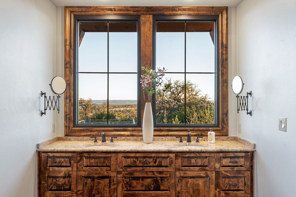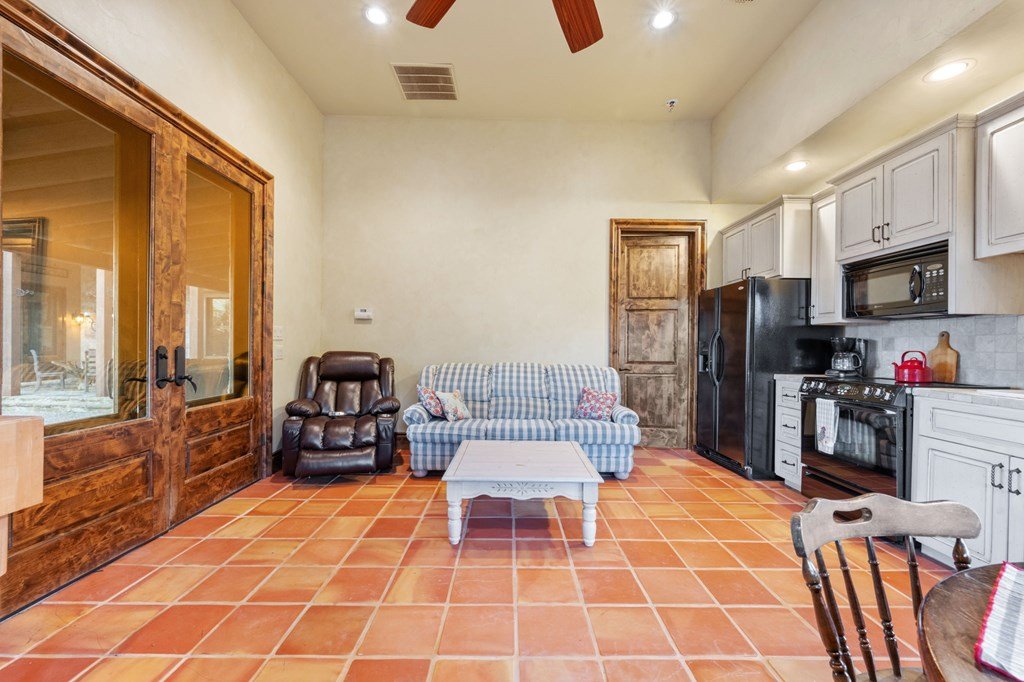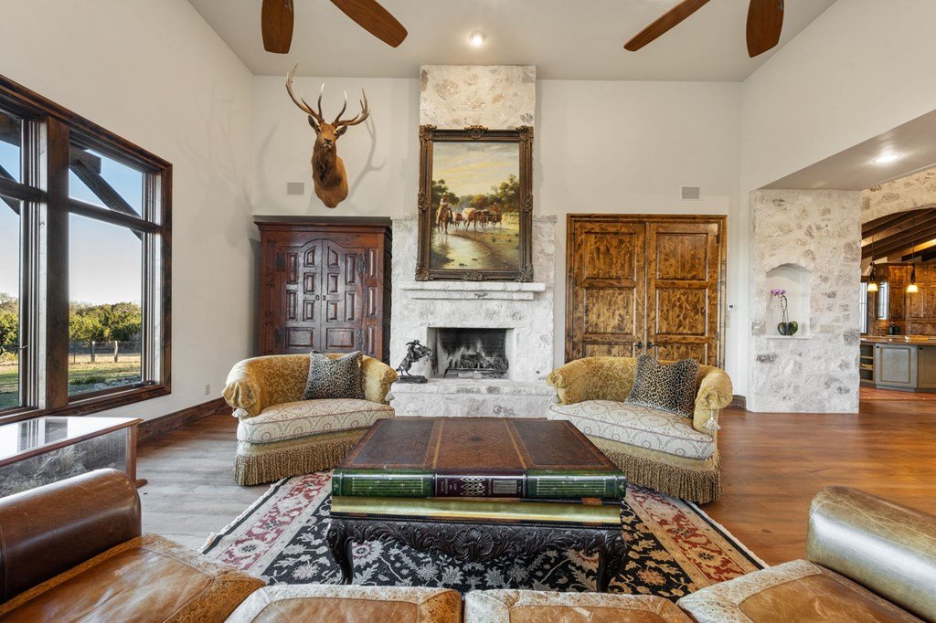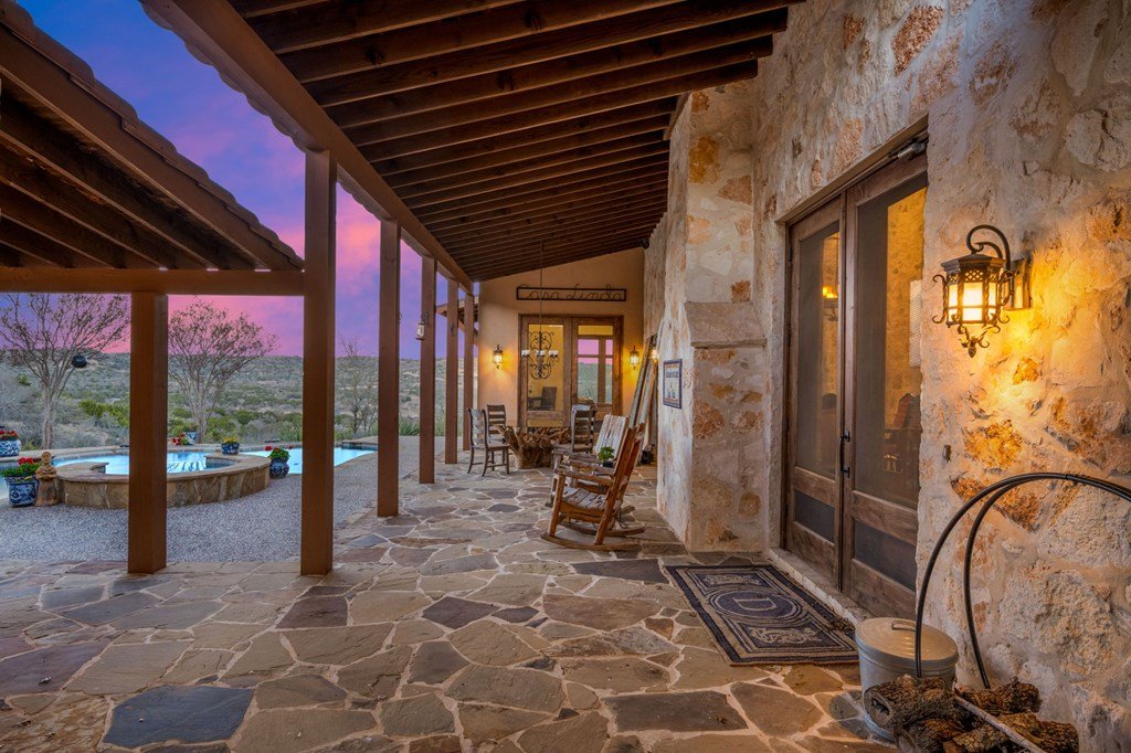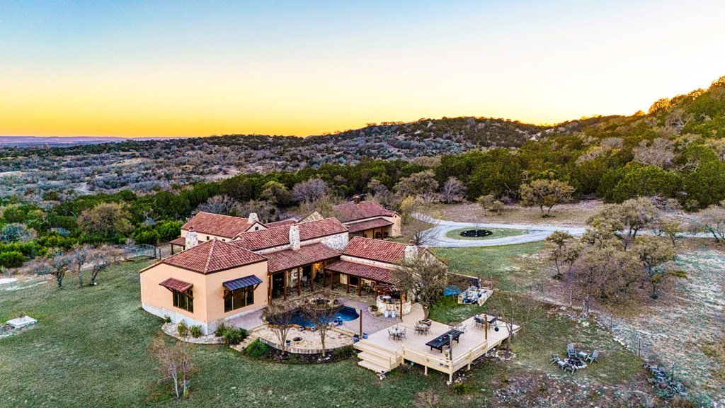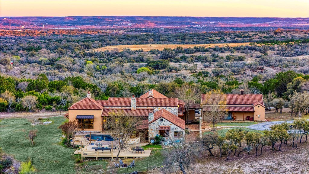 164 Camino del Reserve is a gracious Hill Country Hacienda with amazing views located in The Reserve @ Falling Water, a premiere gated neighborhood just outside of Comfort. Featuring a courtyard opening to the panoramic views overlooking 18+/- Acres, you'll enjoy the refreshing pool, deep covered gallery porches and decking for entertaining, Casa del Linda offers the Main Dwelling with 5 bedrooms and a Casita. The Casita is fully functional w/Kitchen, Fireplace, Living Area, Separate Bed & Bath + laundry. Built by Buffalo Homes featuring detail finishes such as Masonry fireplaces, wood & saltillo floors, soaring ceilings, abundant stonework, solid Alder doors and a fitted wine closet. Built for entertaining in the classic Hill Country style, the Great Room & Entry/Dining Gallery are the perfect palette for art and gatherings. A flexible room w/wood-planked ceilings is located off the Great Room and can serve as: Office, Media or Gameroom. The chef-inspired Kitchen is open w/imported counters, wood-planked beamed ceilings, gorgeous views, plentiful cabinets, wood-clad center island & high end appliances. The commanding Primary Bedroom suite is a spacious restful retreat.