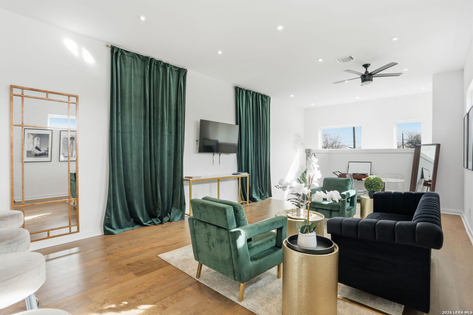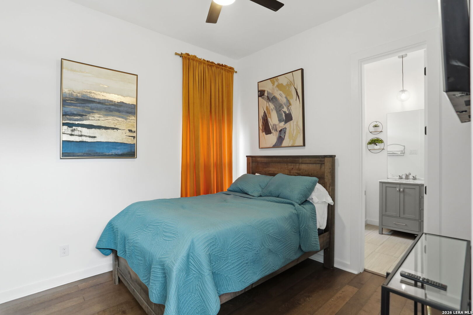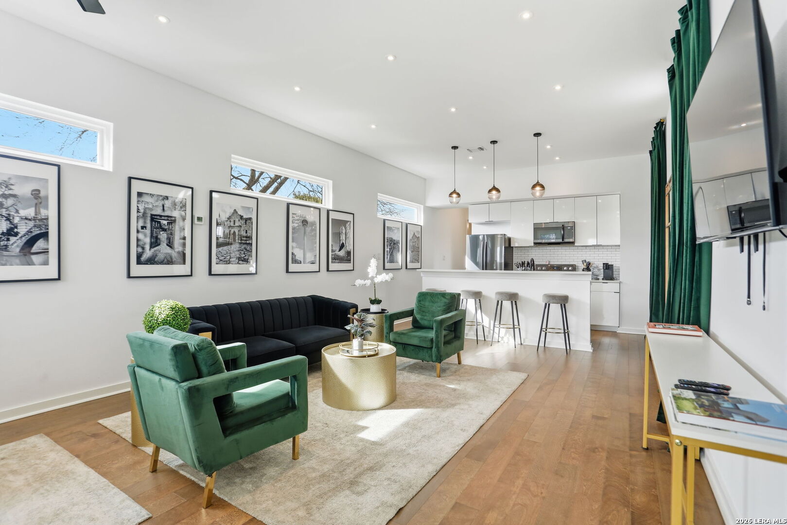 Bright, modern, and in the heart of downtown, this 2-bedroom, 2.5-bath home puts the best of the city right at your doorstep. With 1,295 sq. ft. of open living space, dramatic 10-foot ceilings, and sunlight pouring through oversized windows, every room feels fresh and inviting. The kitchen is ready for everything from weekday breakfasts to weekend entertaining, with quartz countertops, soft-close custom cabinets, stainless steel appliances, and a bar-height breakfast bar that's perfect for casual meals or coffee with friends. Both bedrooms have private en-suite bathrooms, and the master suite offers a glass-enclosed shower and a custom closet built for shoes and other treasures. Step outside to your fully-fenced backyard, or head out to explore downtown's dining, shopping, and cultural hotspots. Coming fully furnished and move-in ready, this home works perfectly for first-time buyers, empty nesters, or as an Airbnb. Don't wait-book your showing today and see downtown living at its best!