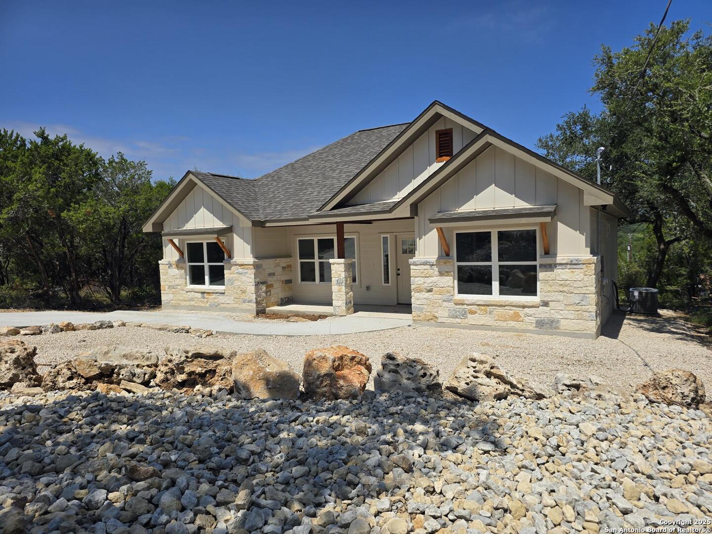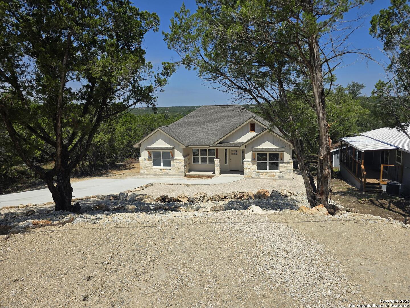 Preferred Lender paid 2/1 buydown mortgage available to qualified buyers, at no cost to the buyers. Come see yourself living in the scenic Canyon Lake area with a vaulted ceiling in the living room, tray ceiling in the master bedroom, 9 ft ceilings everywhere else, custom wood cabinets, natural stone countertops, wood look floor tile throughout and custom tile tub surrounds. Beautiful mature live oak trees adorn this property.