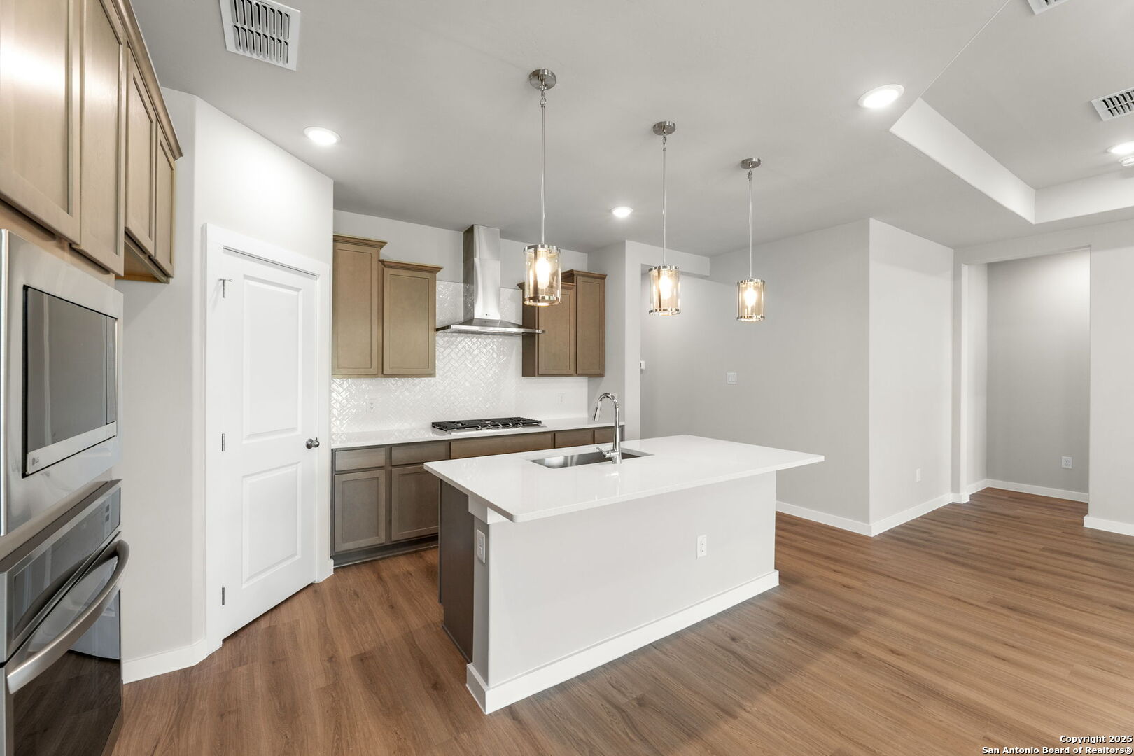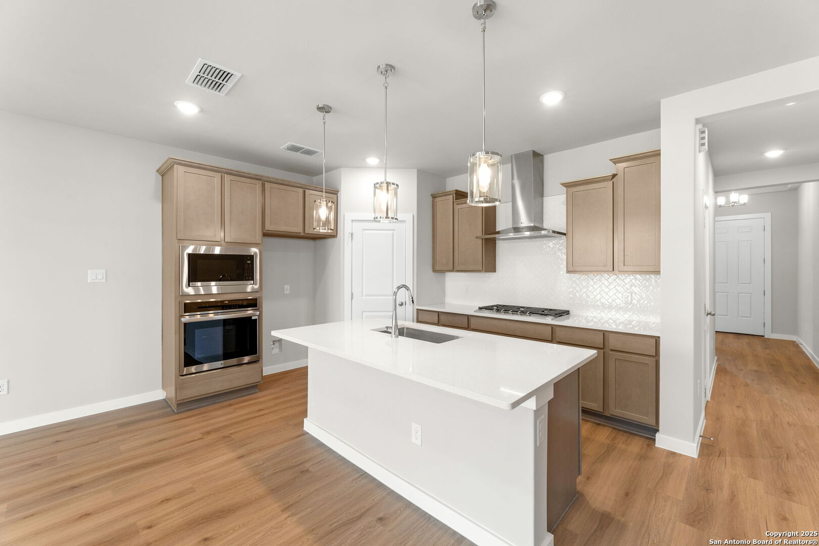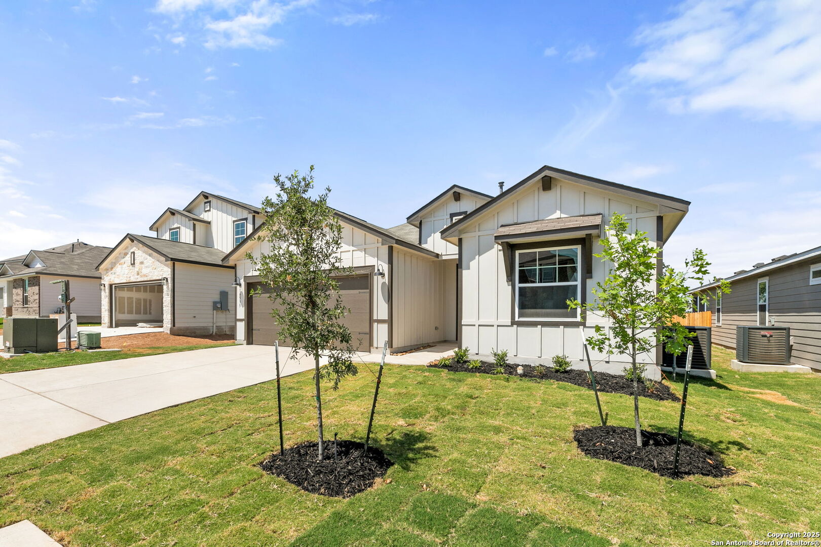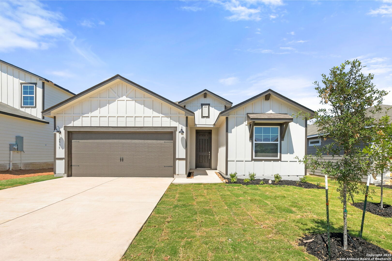 Hakes Brothers at Hickory Ridge presents the Jasmine plan, featuring a charming modern farmhouse elevation that welcomes you home with style and warmth. Designed for both comfort and connection, this thoughtfully planned home ensures that everyone has a place to retreat, with each bedroom offering privacy and tranquility. When it's time to gather, the open-concept living area provides the perfect setting-whether you're catching up after a long day, sharing a meal, or creating lasting memories together. The kitchen is as functional as it is stylish, featuring a gas cooktop with built-in stainless steel appliances, a spacious walk-in pantry, and a large island topped with white quartz countertops. Gray shaker-style cabinetry and a herringbone-patterned backsplash add a touch of timeless sophistication, while pendant lighting over the island enhances the space with both beauty and practicality. Under-cabinet lighting further elevates the kitchen's design, providing better visibility for food prep and a warm ambiance in the evenings. The Owner's Suite is a private retreat designed for relaxation, with an en-suite bathroom featuring dual vanities, ample countertop space, and a linen closet for additional storage. An extra-spacious walk-in shower with a recessed tile floor and elegant 12x24 tile walls creates a spa-inspired atmosphere, while a private commode area enhances comfort and privacy. Throughout the home, tray ceilings add depth and architectural interest, creating an open and airy feel in key living spaces. An 8-foot tall front door makes a striking first impression, welcoming you with a sense of grandeur. Additional LED lighting in the Owner's Suite and Great Room ensures bright, energy-efficient illumination, enhancing both comfort and functionality. For added convenience, in-wall conduit for flat-panel TV prep is included in both the Great Room and Owner's Suite, making it easy to mount your television without exposed wires. Beautiful LVP flooring flows seamlessly throughout the main living areas, enhancing the home's cohesive design from the welcoming front entry to the expansive covered patio at the rear, which extends across the width of the main living spaces and provides the perfect outdoor retreat to enjoy backyard views and unwind in the fresh air. We've thoughtfully designed every detail so you don't have to compromise. If this home has caught your eye, visit Hakes Brothers at Hickory Ridge today for an exclusive tour and experience its charm firsthand.