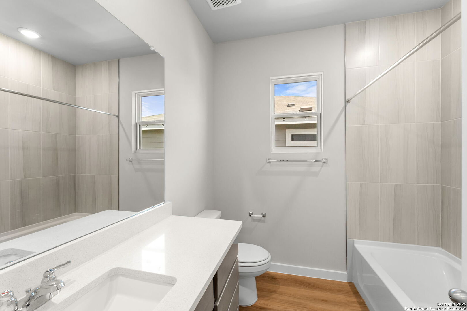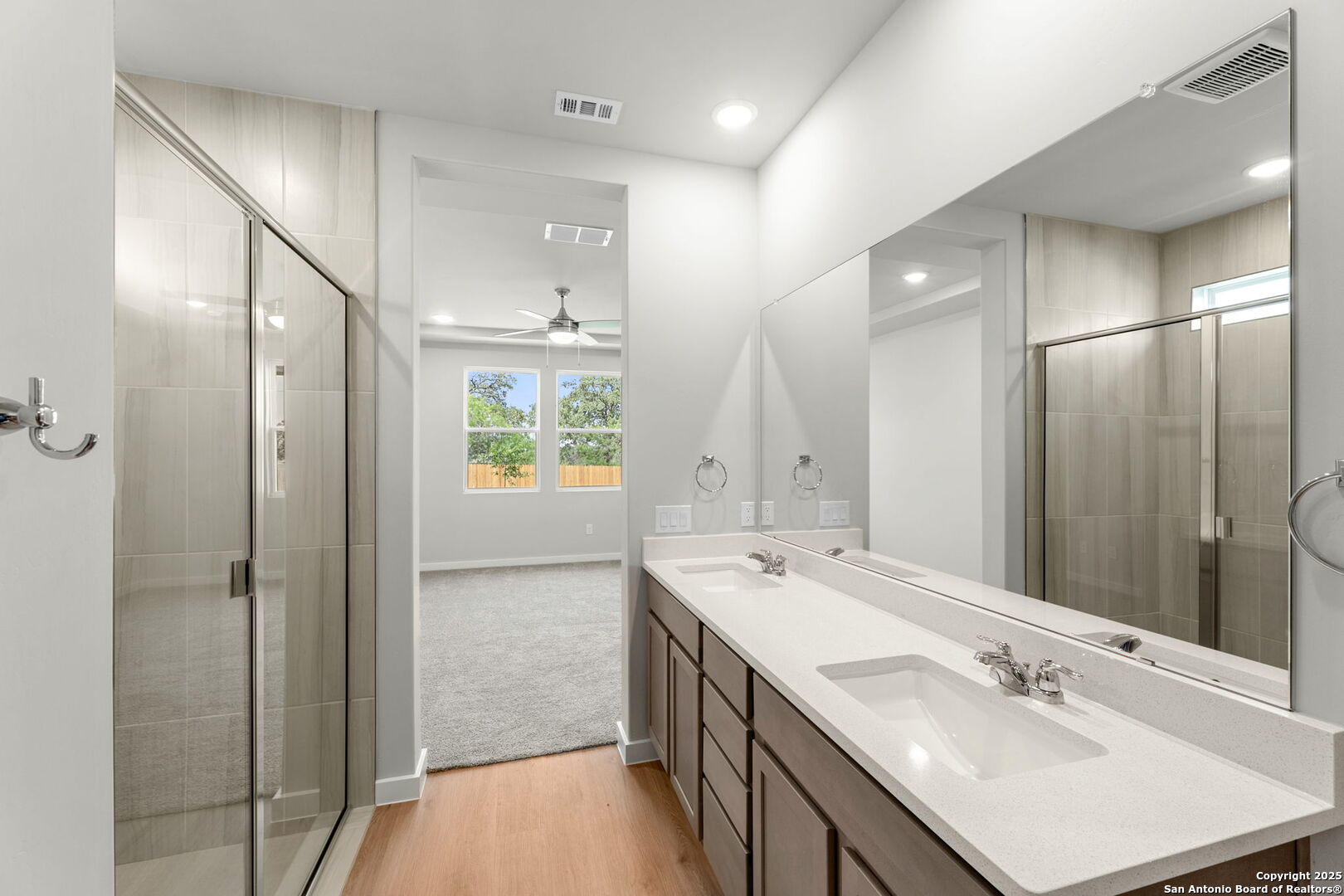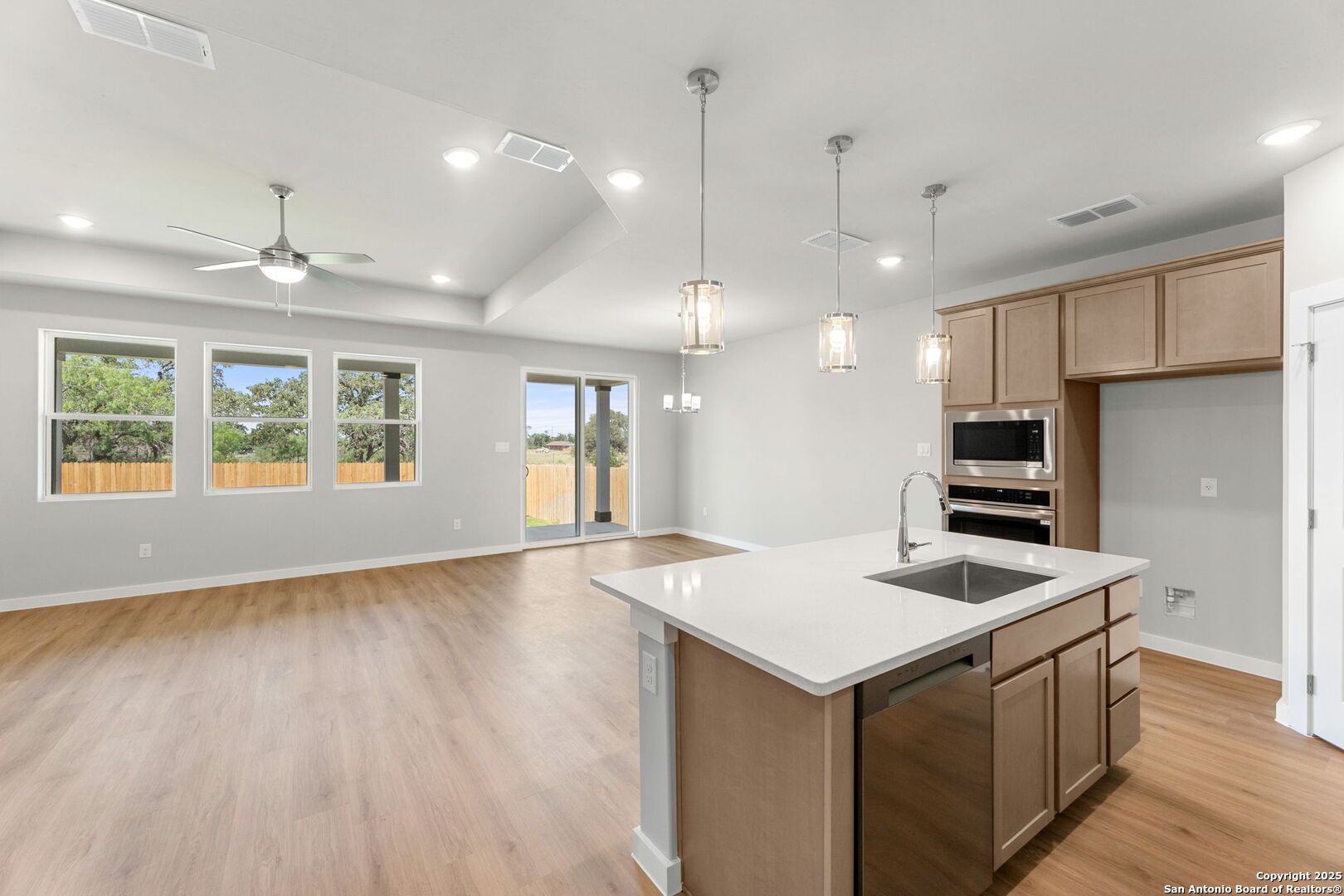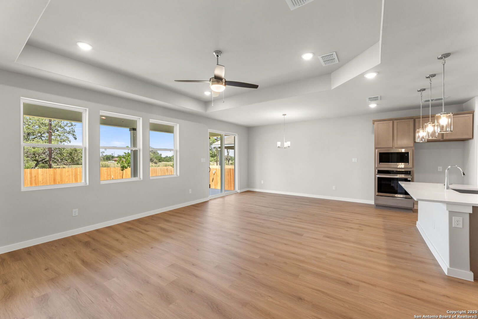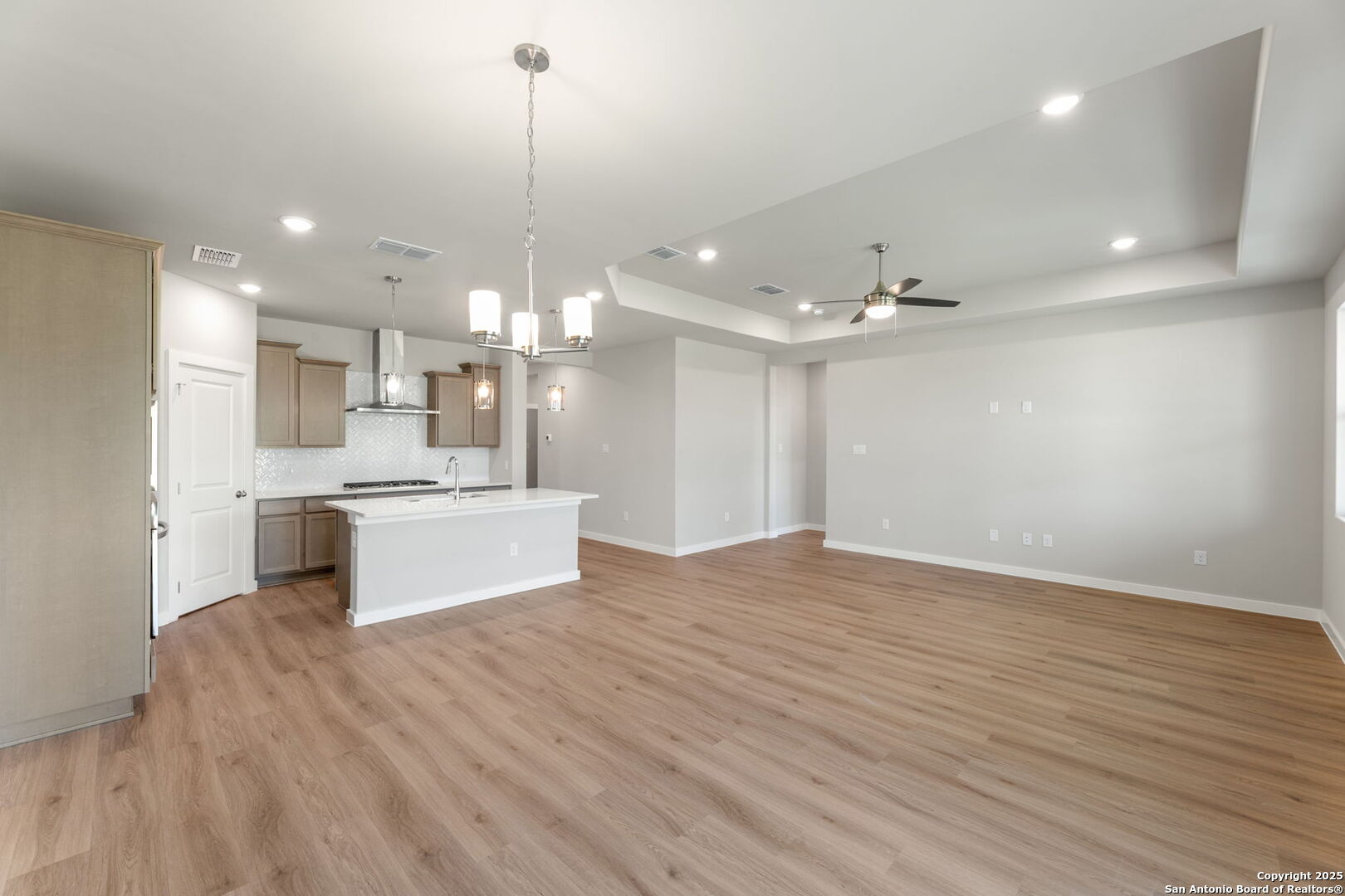Hakes Brothers at Hickory Ridge presents the Jasmine plan, featuring a charming modern farmhouse elevation that welcomes you home with style and warmth. Designed for both comfort and connection, this thoughtfully planned home ensures that everyone has a place to retreat, with each bedroom offering privacy and tranquility. When it's time to gather, the open-concept living area provides the perfect setting-whether you're catching up after a long day, sharing a meal, or creating lasting memories together. The kitchen is as functional as it is stylish, featuring a gas cooktop with built-in stainless steel appliances, a spacious walk-in pantry, and a large island topped with white quartz countertops. Gray shaker-style cabinetry and a herringbone-patterned backsplash add a touch of timeless sophistication, while pendant lighting over the island enhances the space with both beauty and practicality. Under-cabinet lighting further elevates the kitchen's design, providing better visibility for food prep and a warm ambiance in the evenings. The Owner's Suite is a private retreat designed for relaxation, with an en-suite bathroom featuring dual vanities, ample countertop space, and a linen closet for additional storage. An extra-spacious walk-in shower with a recessed tile floor and elegant 12x24 tile walls creates a spa-inspired atmosphere, while a private commode area enhances comfort and privacy. Throughout the home, tray ceilings add depth and architectural interest, creating an open and airy feel in key living spaces. An 8-foot tall front door makes a striking first impression, welcoming you with a sense of grandeur. Additional LED lighting in the Owner's Suite and Great Room ensures bright, energy-efficient illumination, enhancing both comfort and functionality. For added convenience, in-wall conduit for flat-panel TV prep is included in both the Great Room and Owner's Suite, making it easy to mount your television without exposed wires. Beautiful LVP flooring flows seamlessly throughout the main living areas, enhancing the home's cohesive design from the welcoming front entry to the expansive covered patio at the rear, which extends across the width of the main living spaces and provides the perfect outdoor retreat to enjoy backyard views and unwind in the fresh air. We've thoughtfully designed every detail so you don't have to compromise. If this home has caught your eye, visit Hakes Brothers at Hickory Ridge today for an exclusive tour and experience its charm firsthand.