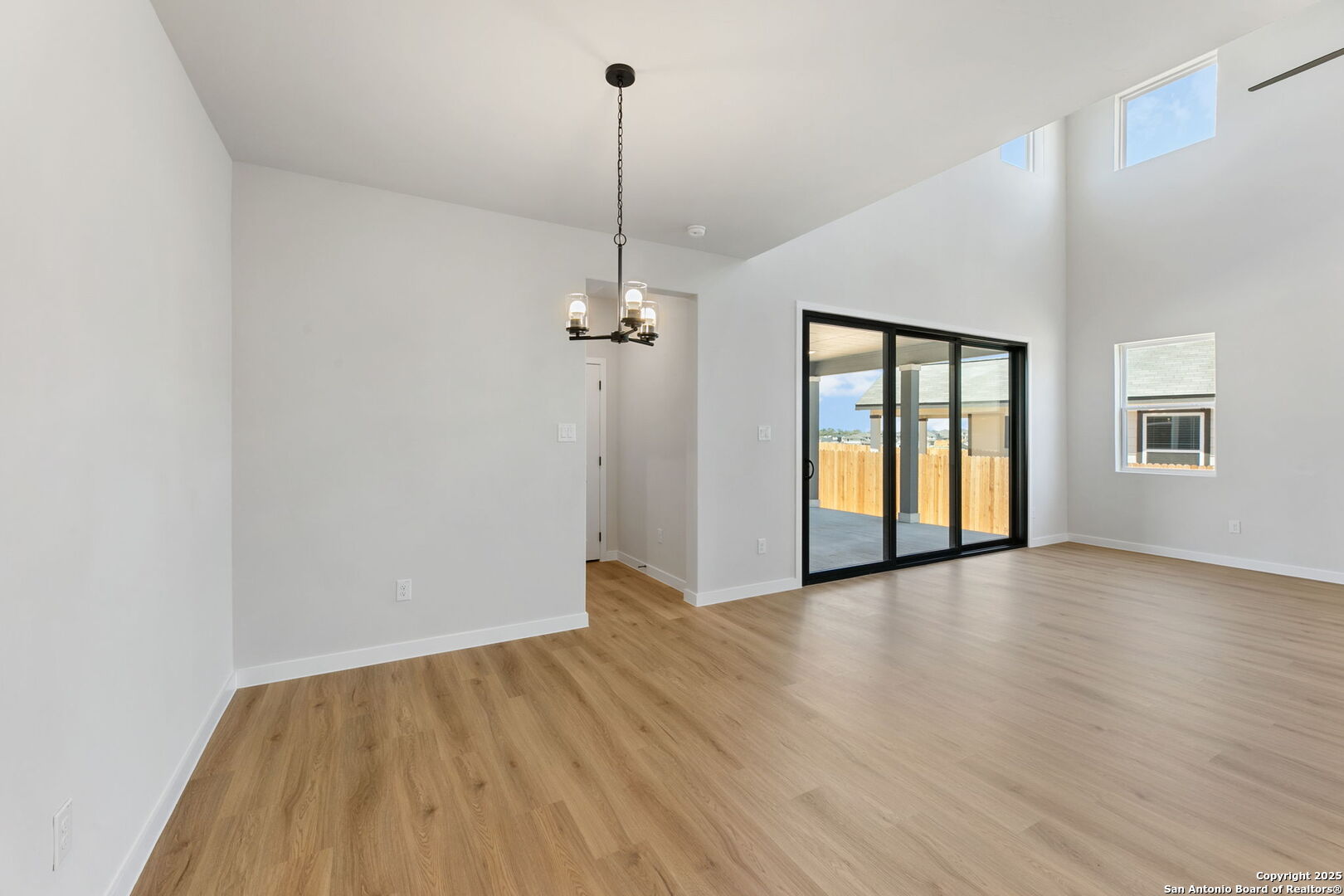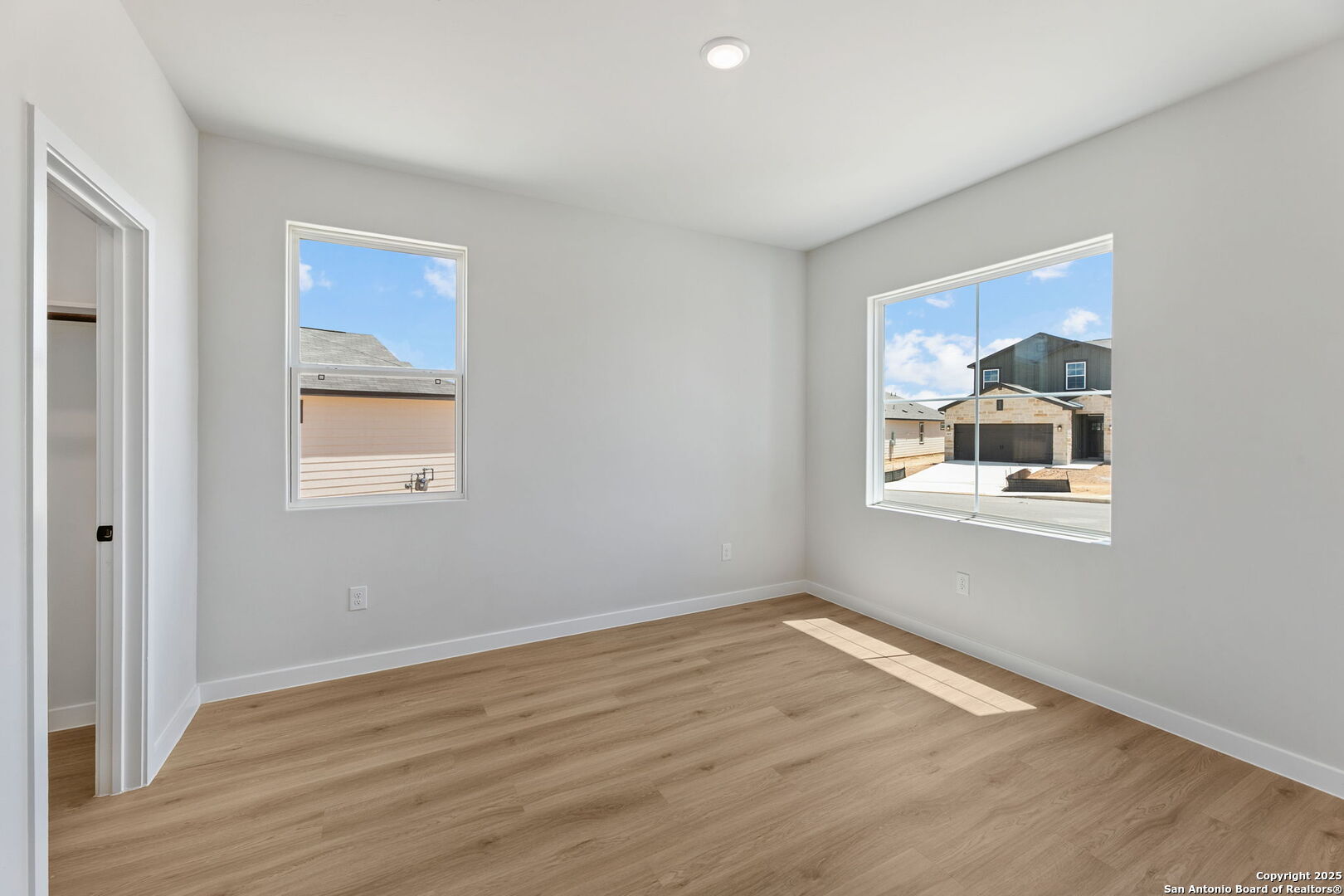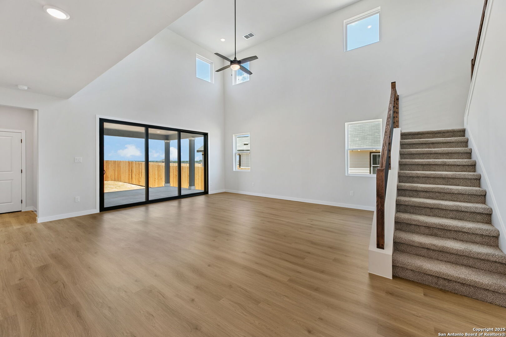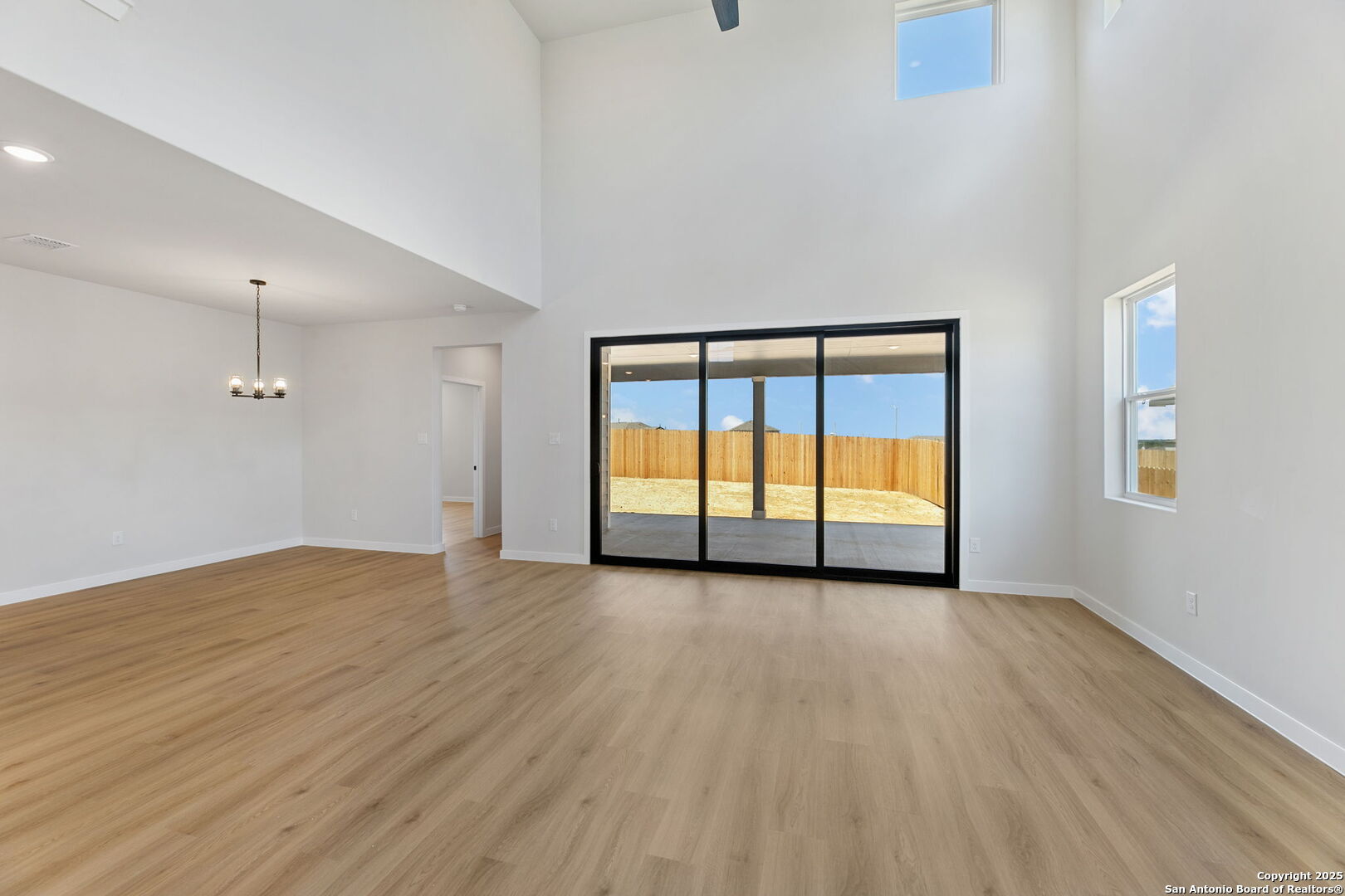 The beautifully upgraded Poinsettia plan blends warmth, style, and functionality in a layout designed for modern living. With striking Modern Farmhouse curb appeal and an 8-ft front door that makes a grand first impression, this home invites you into a light-filled interior featuring luxury vinyl plank flooring throughout the first floor for easy maintenance and timeless charm. The spacious Great Room stuns with soaring ceilings and a dramatic overlook from the second floor accented by elegant iron railing, while a 12-ft wide stacking glass door seamlessly connects indoor and outdoor living-perfect for entertaining-opening to an extended covered patio that's ideally shaded for relaxing late afternoons and evenings. The heart of the home is a chef-inspired gourmet kitchen with a 5-burner gas cooktop, built-in stainless appliances, and a designer finish-out that includes warm grey stained Shaker cabinets, crisp white quartz countertops, and a herringbone-pattern taupe backsplash-creating a space that's as beautiful as it is functional. The downstairs owner's suite is a peaceful retreat with a walk-in shower, dual vanity with generous storage, and an oversized walk-in closet. A flexible bonus room downstairs adapts to your lifestyle-ideal for an office, gym, or playroom. Upstairs, a cozy loft offers a second living area flanked by three well-sized secondary bedrooms, and a thoughtfully designed full bathroom provides extra privacy with a separate vanity and wet area. Additional linen closets upstairs ensure everyone has room to stay organized. Designed for connection and comfort, this home offers the perfect balance of shared spaces and quiet corners for every member of the household. Visit our Hakes Brothers model home in Hickory Ridge to tour this home today!