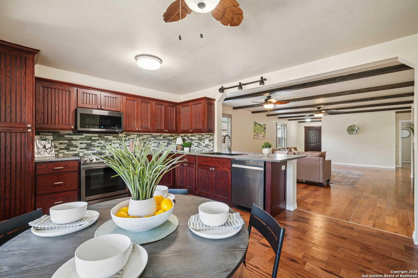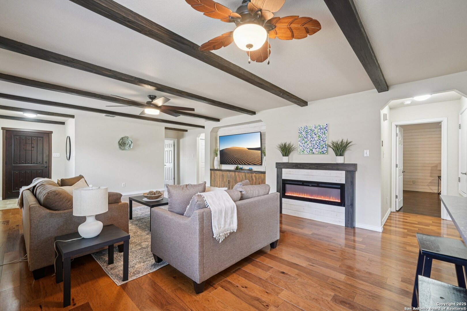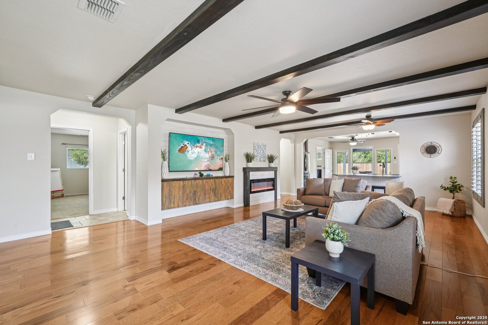 Beautifully updated 3-bed, 2-bath home in Retama Springs. Single-story with open floor plan, spacious kitchen, and tasteful updates throughout. Gorgeous curb appeal, landscaped yard, and serene backyard with greenbelt and horse stall views. Convenient to major highways, shopping, dining, and Judson ISD schools.