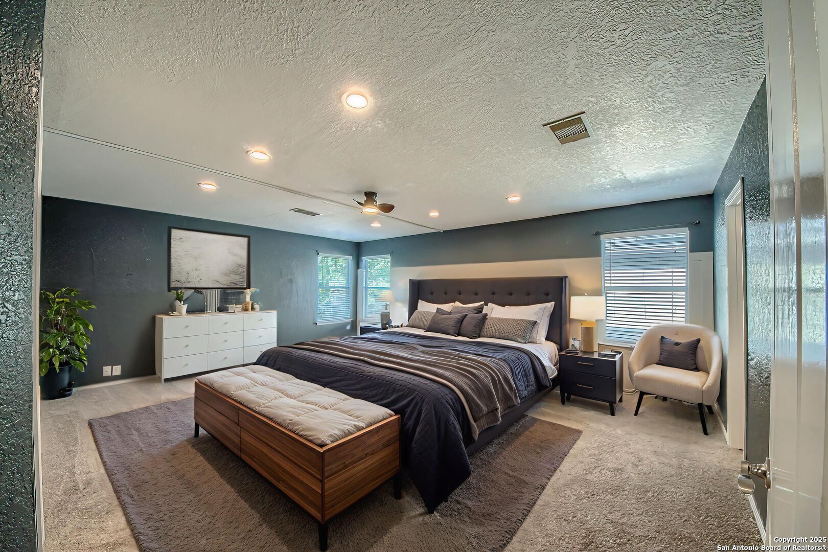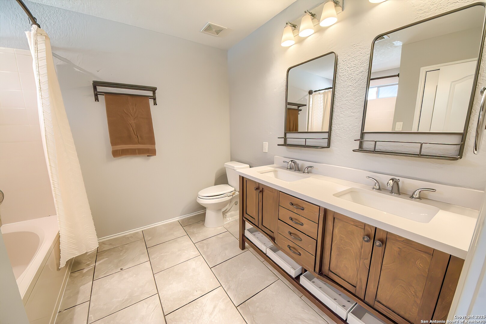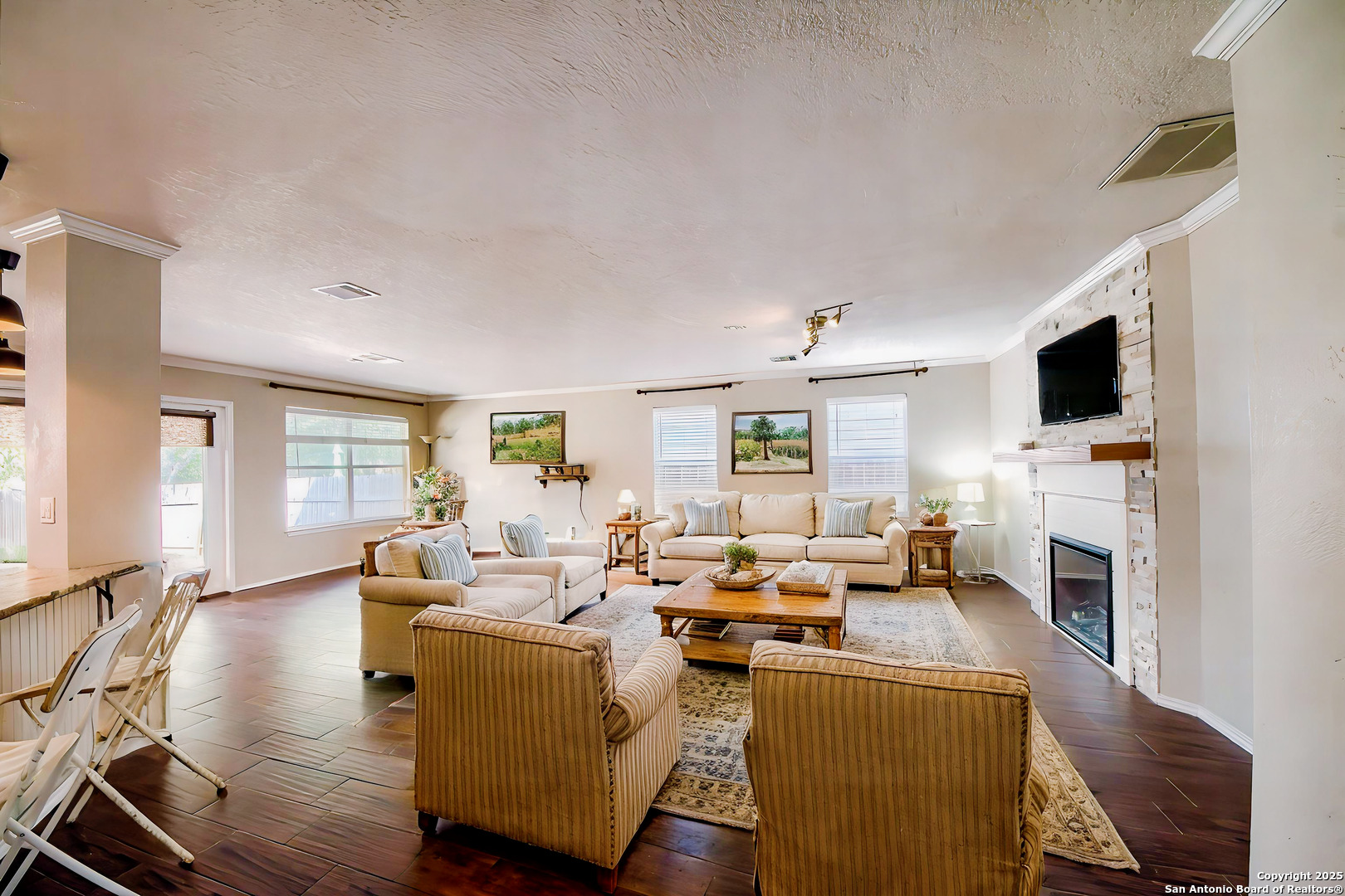 16739 Basin Oak, San Antonio, Texas. Welcome to this beautifully updated two-story home in the desirable Emerald Pointe community. Built in 2004, this 2,897 sq. ft. residence offers 4 spacious bedrooms, 2.5 bathrooms, and a thoughtful open layout perfect for family living and entertaining. Recent upgrades include a carpet, a 2025 HVAC system, a 2025 water heater, and a 3-year-old roof for peace of mind. The home showcases wood-look tile flooring downstairs, new carpet upstairs, and fresh modern paint throughout. The remodeled kitchen features 42" cabinets with crown molding, granite countertops, stainless steel appliances, and a breakfast bar overlooking the eat-in area and family room with a rock-accented electric fireplace. Upstairs, the large primary suite features an updated bathroom with a double vanity, tub/shower combination, and bidet. Three additional bedrooms share a second remodeled full bath, also with double vanities. Outdoor living features a covered front porch, a covered patio, a private fenced yard, a storage shed, and mature trees for added shade. Additional highlights include LED lighting, updated fixtures, and a two-car garage. Located in North East ISD near Loop 1604 and I-35, with quick access to Randolph AFB, Fort Sam Houston, The Forum, and San Antonio International Airport.