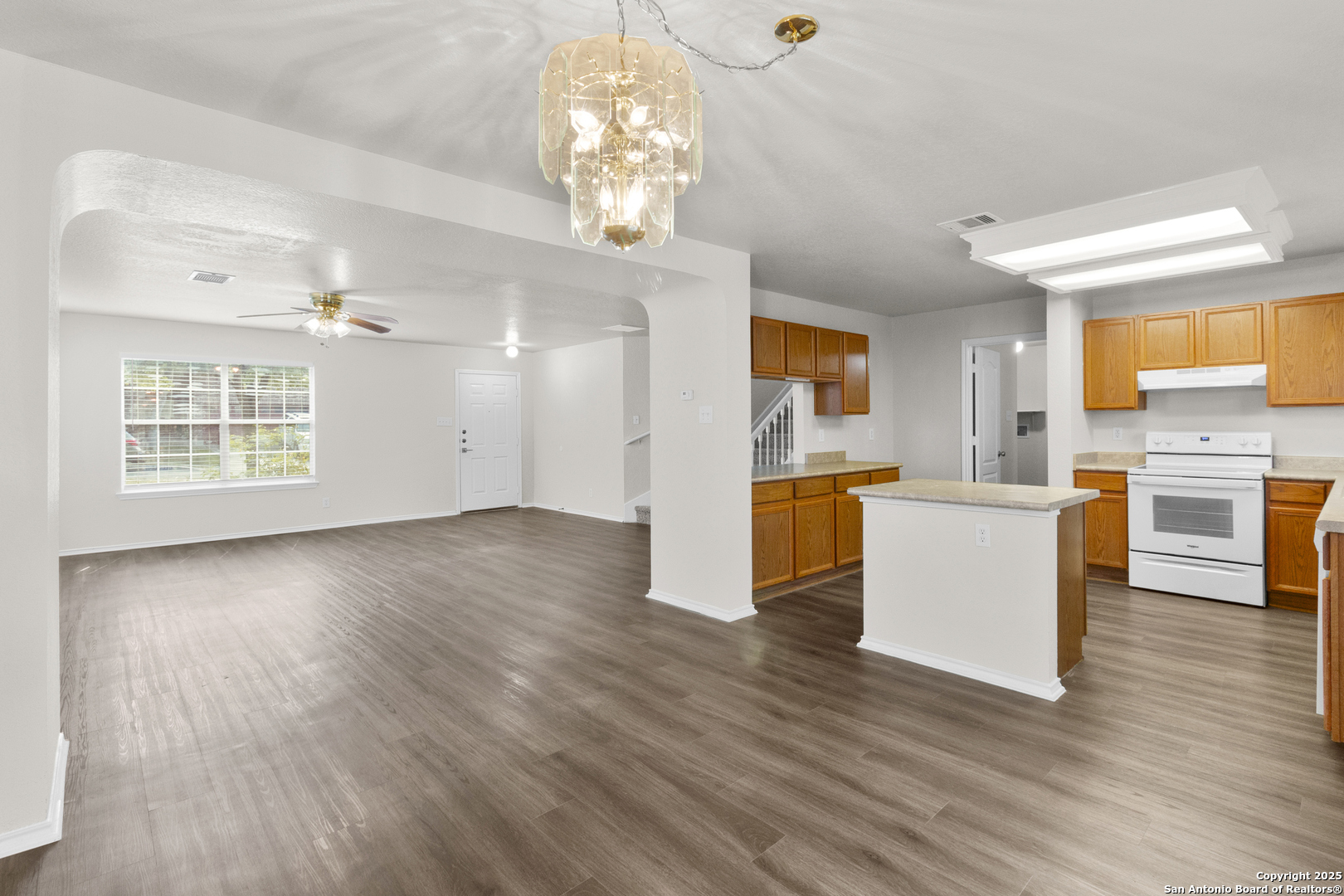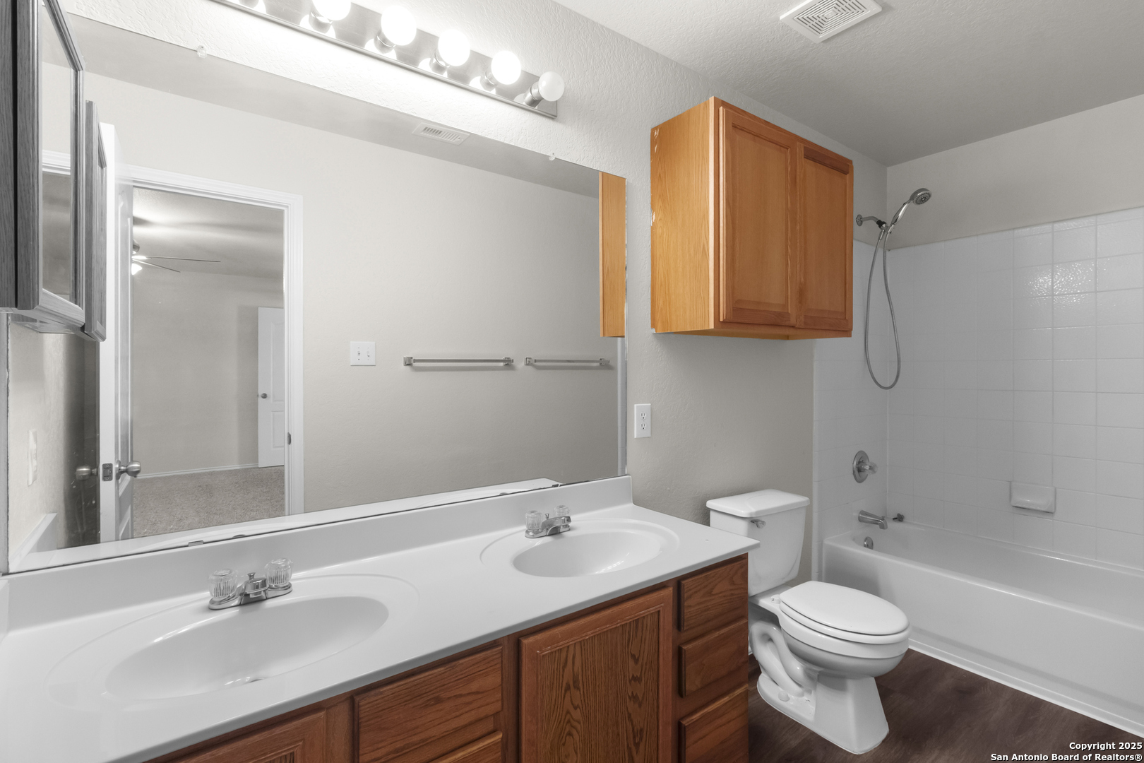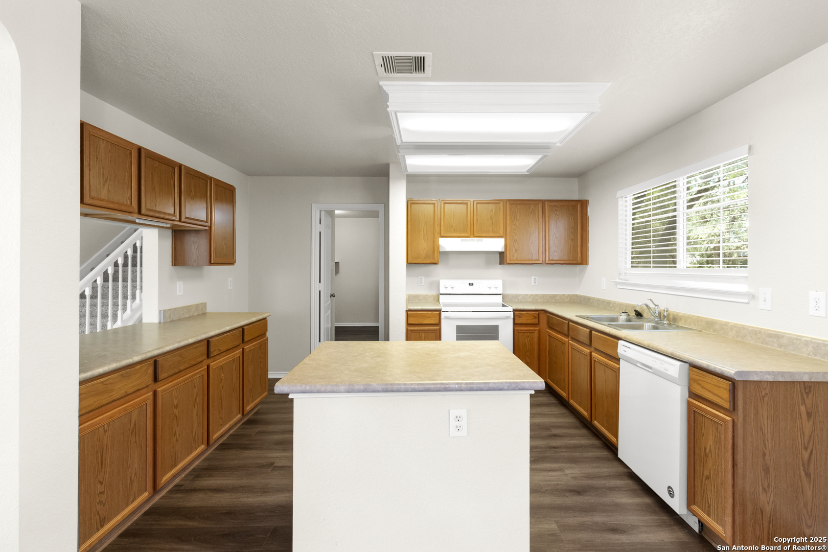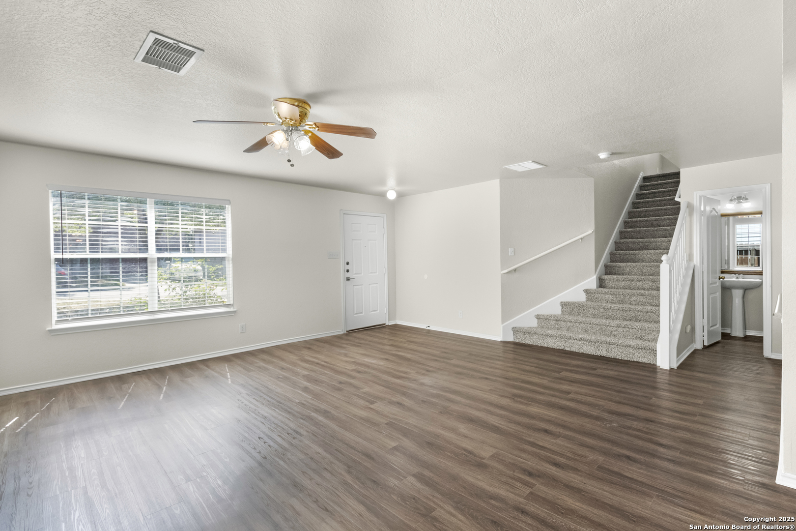 REMODELED!!!!Re-painted on interior and flooring replaced that consists of vinyl plank downstairs and carpet on the stairs/upstairs. Located in Northeast San Antonio just inside Loop 1604, Spacious lot that is heavily treed with a sprinkler system, Massive pantry with kitchen island and two inch wood faux blinds on the windows, Shows like a gem with pride in ownership. Conveniently located near Loop 1604, I-35 and Loop 410.
