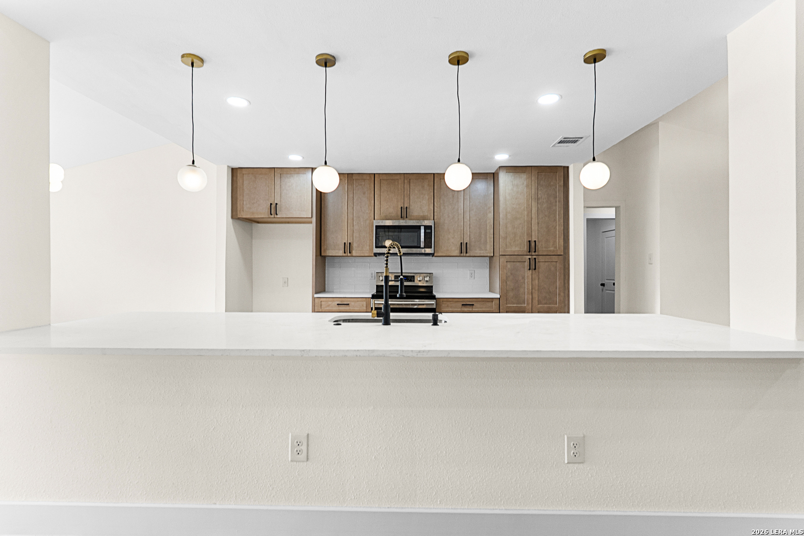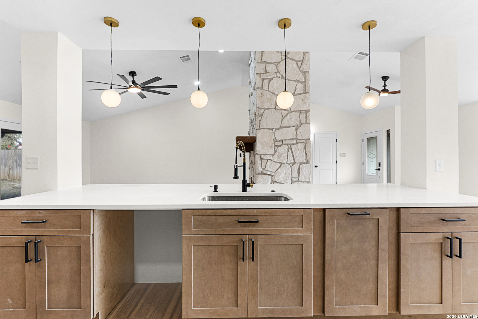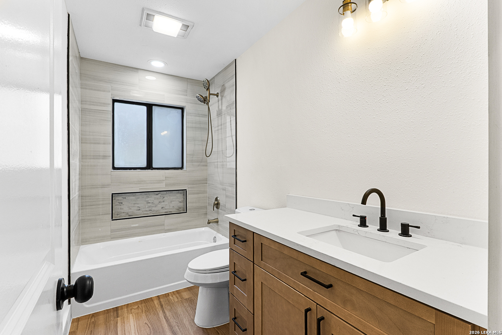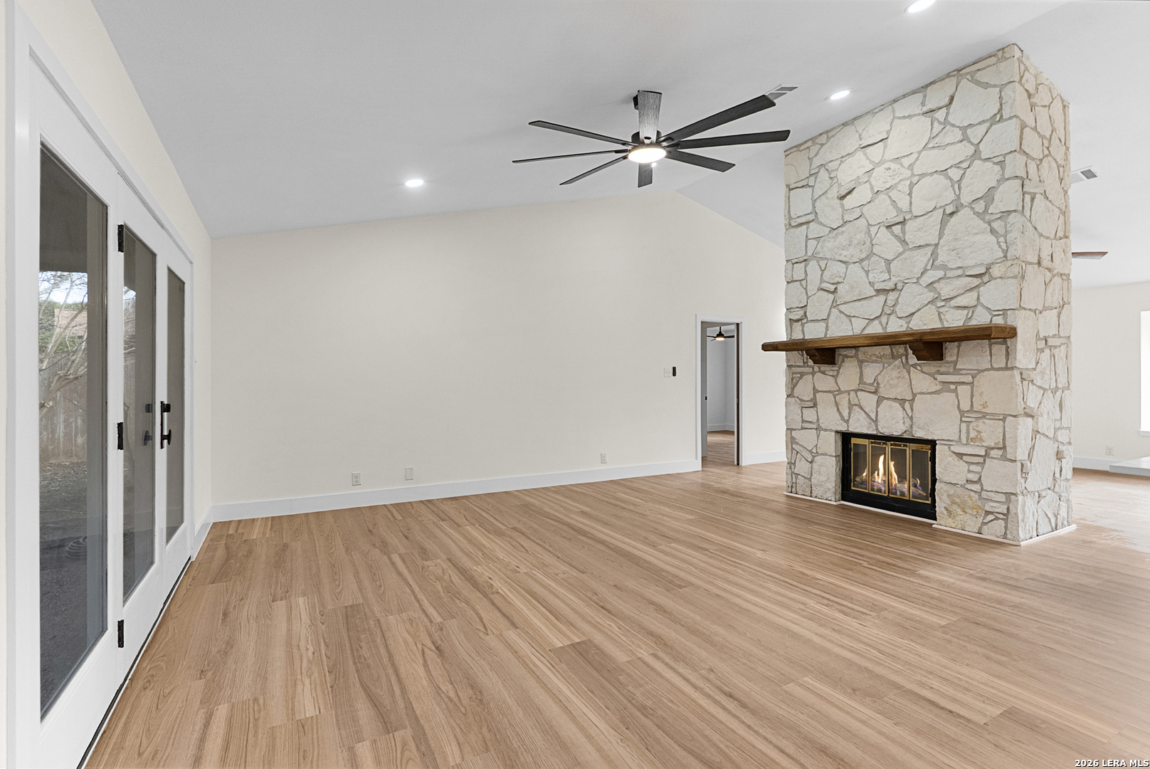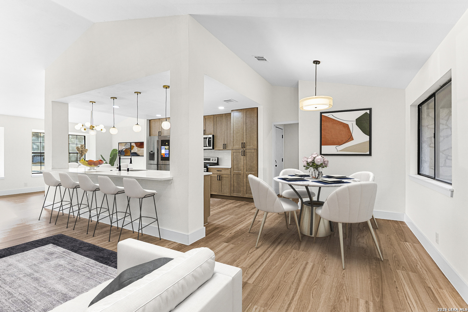 Welcome to 16923 Hidden Timber Wood! This home is the perfect blend of timeless charm and modern updates! Nestled on a quiet street just off Blanco Road inside Loop 1604, this beautifully renovated one-story home offers the character of an established neighborhood with the feel of new construction. This home features brand-new flooring throughout (no carpet!), a fully updated kitchen, and an open-concept layout created by opening the kitchen to the living and dining areas-perfect for entertaining. The flexible floor plan offers the potential for two living areas or two dining spaces to fit your lifestyle needs. Enjoy cozy evenings by the fireplace and appreciate the thoughtful upgrades throughout, including ceiling fans in every bedroom, a full walk-in shower in the primary suite, and a tub/shower combo in the guest bath. Step outside to a covered patio overlooking a large backyard-ideal for gatherings, pets, or simply relaxing. Additional features include central air, soaring ceilings, and an oversized garage. Located near the University of Texas at San Antonio, San Antonio International Airport, major highways, shopping, dining, and more-you truly get the best of convenience and community. This move-in-ready home delivers the best of an older charming home and a new home all in one. Don't miss your opportunity to own this stunning transformation in a highly desirable area!