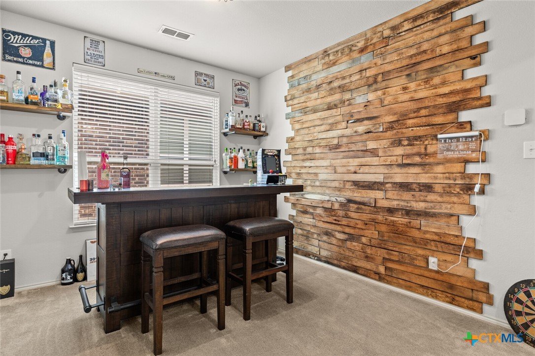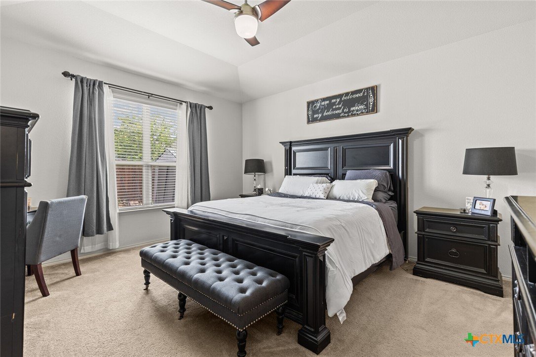 Set within the sought-after Quail Springs community, this thoughtfully designed 3-bedroom, 3-bath home features a flexible floor plan, generous space, and timeless comfort. Soaring 12-foot ceilings and abundant natural light create an inviting atmosphere from the moment you step inside, while the open layout is equally suited for everyday living and entertaining. The main level includes a private primary suite tucked into its own corner of the home, along with a second bedroom and a dedicated office—ideal for guests, remote work, or multi-generational needs. Upstairs, a spacious third bedroom is paired with a large second living area or flex space, perfect for a media room, game room, or quiet retreat. The open-concept kitchen showcases dark cabinetry, ample counter space, a center island, and modern appliances, flowing seamlessly into the breakfast nook and living area anchored by a cozy wood-burning fireplace. Out back, enjoy a covered patio overlooking a generously sized yard with room to relax, play, or entertain. Additional highlights include a roof replaced in 2021, a two-car garage, and a prime location just minutes from dining, shopping, and everyday conveniences.