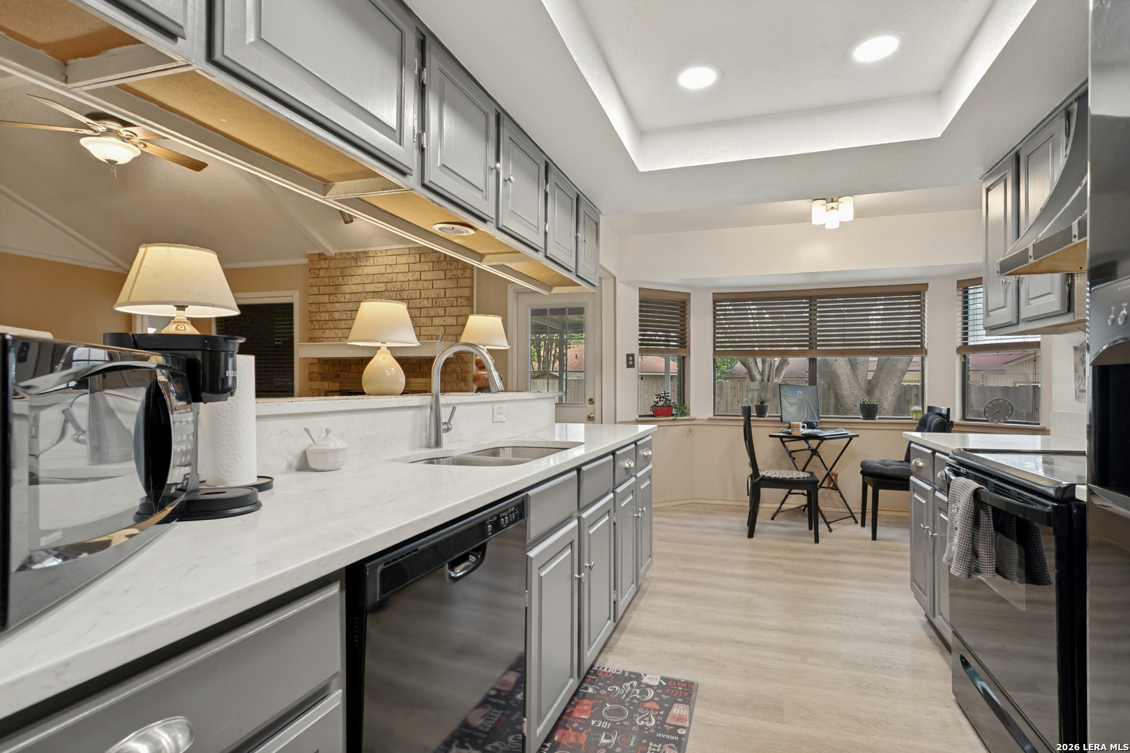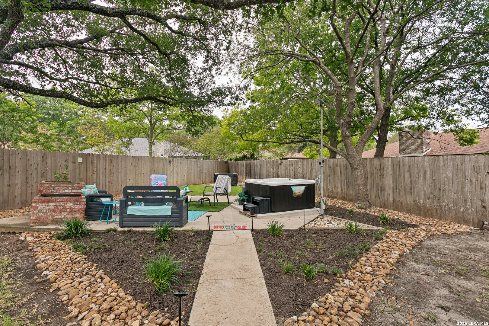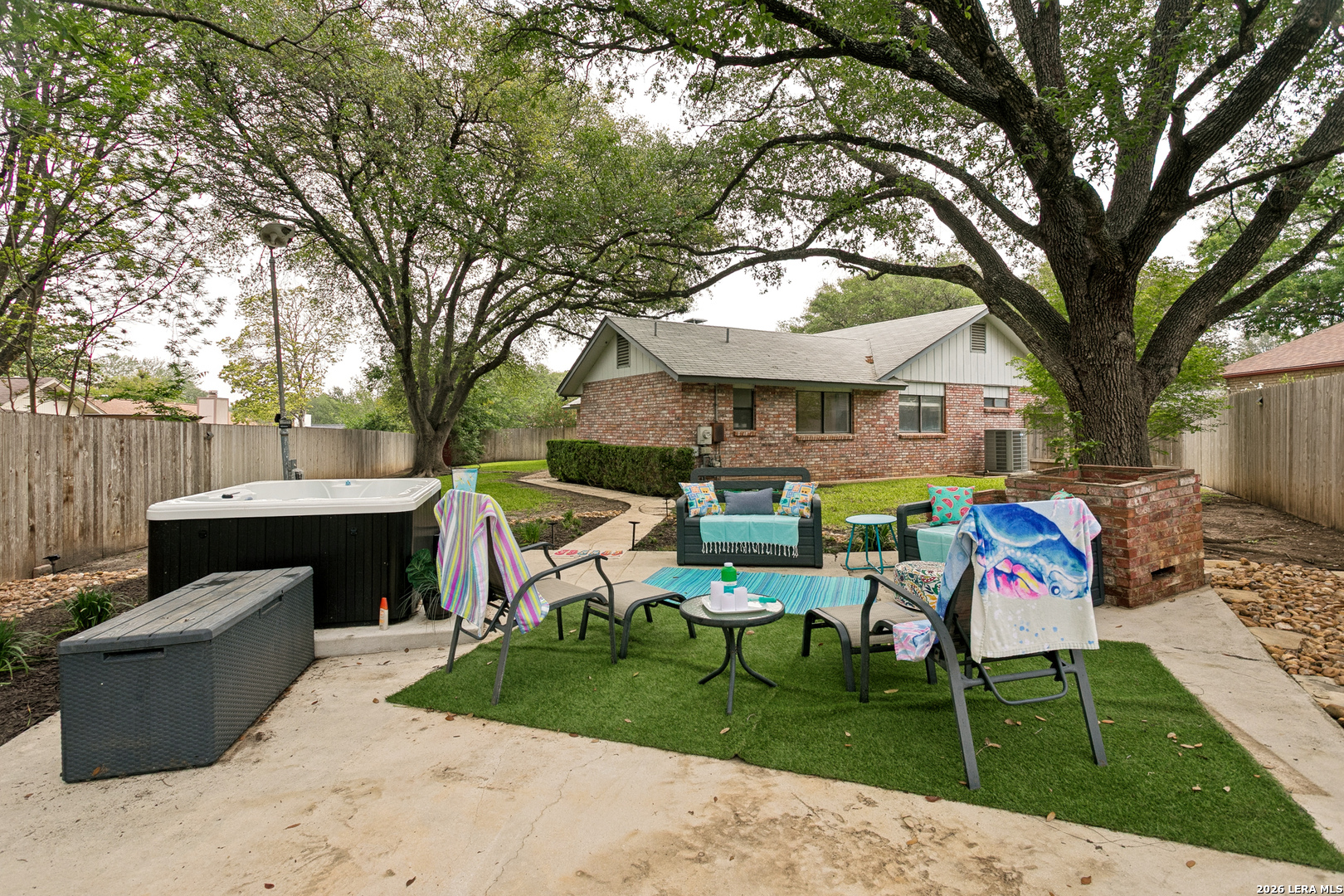 Charming home in the highly sought-after Heritage Park Estates! Nestled on an oversized lot on a quiet cul-de-sac, this beautifully updated home offers a spacious living area with a cozy fireplace and an inviting atmosphere throughout. The stunning kitchen features new quartz countertops, while recent upgrades include front windows, updated lighting, a new garage door, new flooring, stylish bathroom vanities, and a new HVAC system and water heater. Step outside to your private backyard retreat , complete with a new jacuzzi - perfect for relaxing and unwinding. Outdoor enthusiasts will appreciate the home's prime location near McAllister Park, offering miles of scenic trails, green space, and outdoor recreation just minutes away.