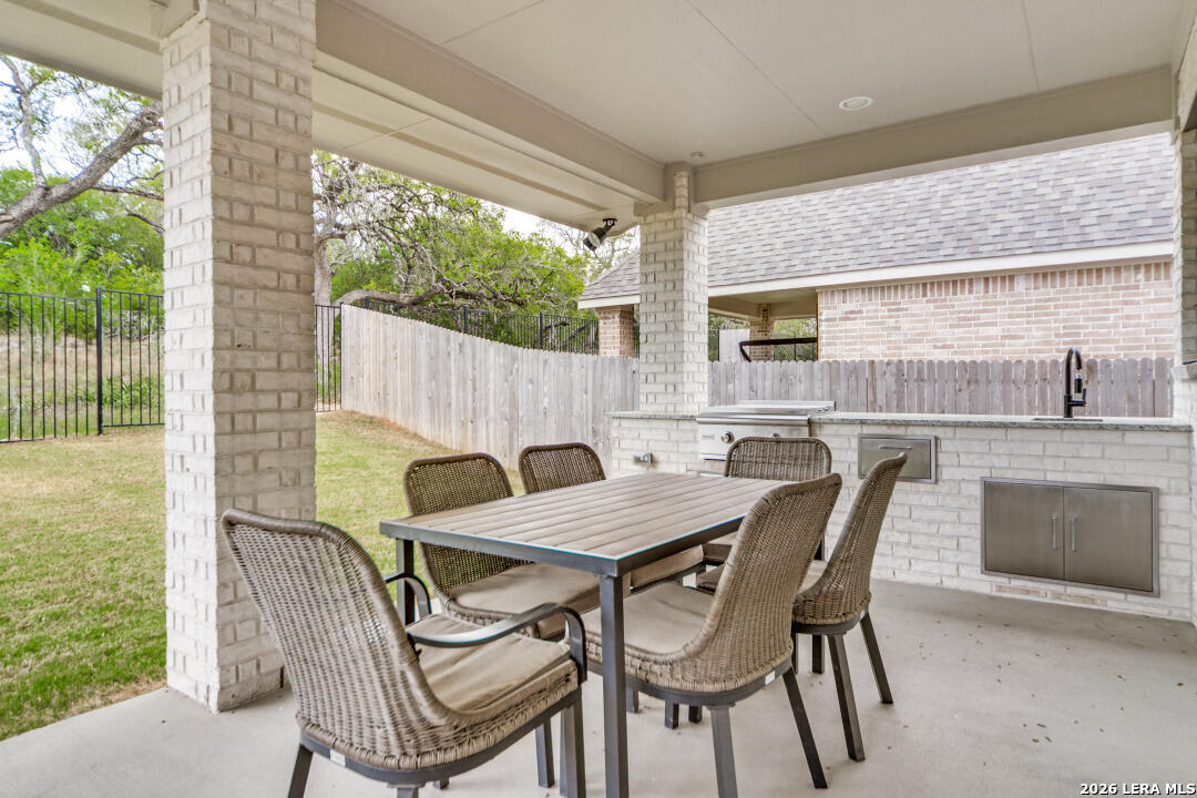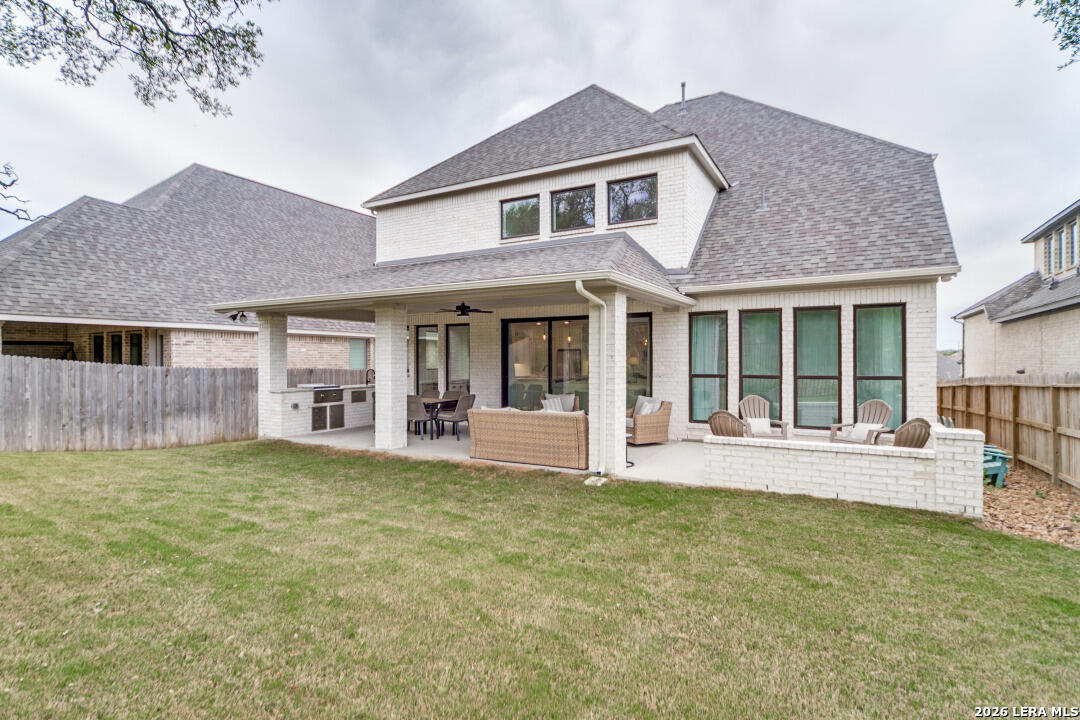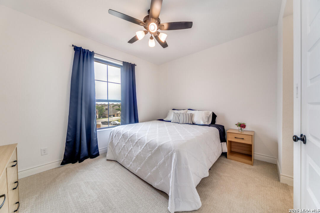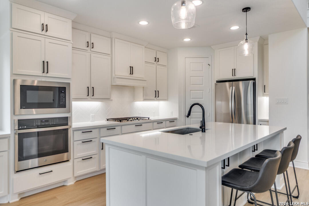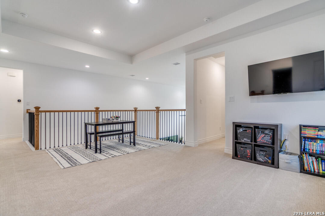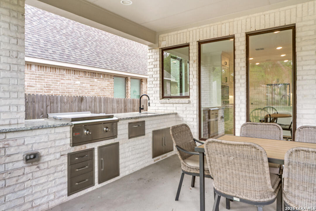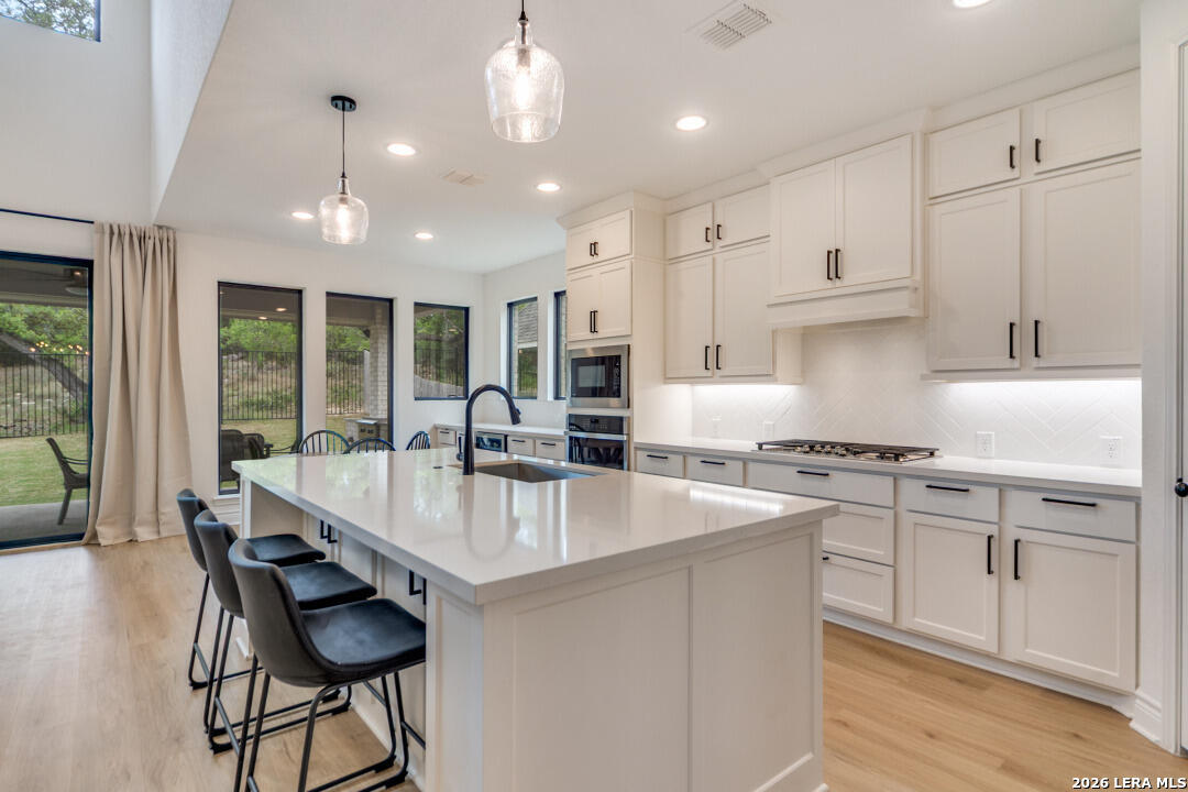 Welcome to this beautifully upgraded 4-bedroom, 3.5-bath 3,190 sq ft home designed with both functionality and style in mind. The thoughtfully designed layout has the ideal separation of space, featuring a private wing complete with a Jack-and-Jill bathroom and spacious loft game room, while a separate guest suite with its own dedicated bathroom provides comfort and privacy for visitors. Downstairs, you'll find a dedicated office, along with an open-concept living area that flows seamlessly into the kitchen. The kitchen is a true showstopper, featuring quartz countertops, double-stacked cabinetry, soft-close cabinets and drawers, an extended bar area, and a 36-inch gas range-functional for both everyday living and entertaining. A large sliding glass door fills the space with natural light and opens to the backyard, while black-framed windows add a modern, high-end touch throughout. Upstairs, enjoy the large media room for movie nights or relaxing with family. This home is loaded with upgrades including luxury vinyl plank flooring, upgraded carpet upstairs, tile extended to the ceiling in all bathrooms, quartz countertops throughout, tankless water heater, soft water plumbing, whole-home gutters, irrigation system, CAT6 wiring, and surveillance camera pre-wiring. The 4-sided masonry, including second-story brick exterior adds both charm and low-maintenance durability. A 3-car tandem garage provides ample space for parking, storage, or a home gym setup. Step outside to your extended patio and outdoor kitchen for entertaining year-round. Situated on a premium lot with no future builds behind, you'll enjoy peaceful views of beautiful green space and added privacy. This home truly checks every box-modern upgrades, well-designed layout, and a prime lot. In your spare time, enjoy the community amenities, including a pool and pavilion or the hiking and biking trails!