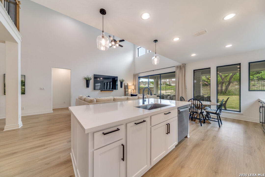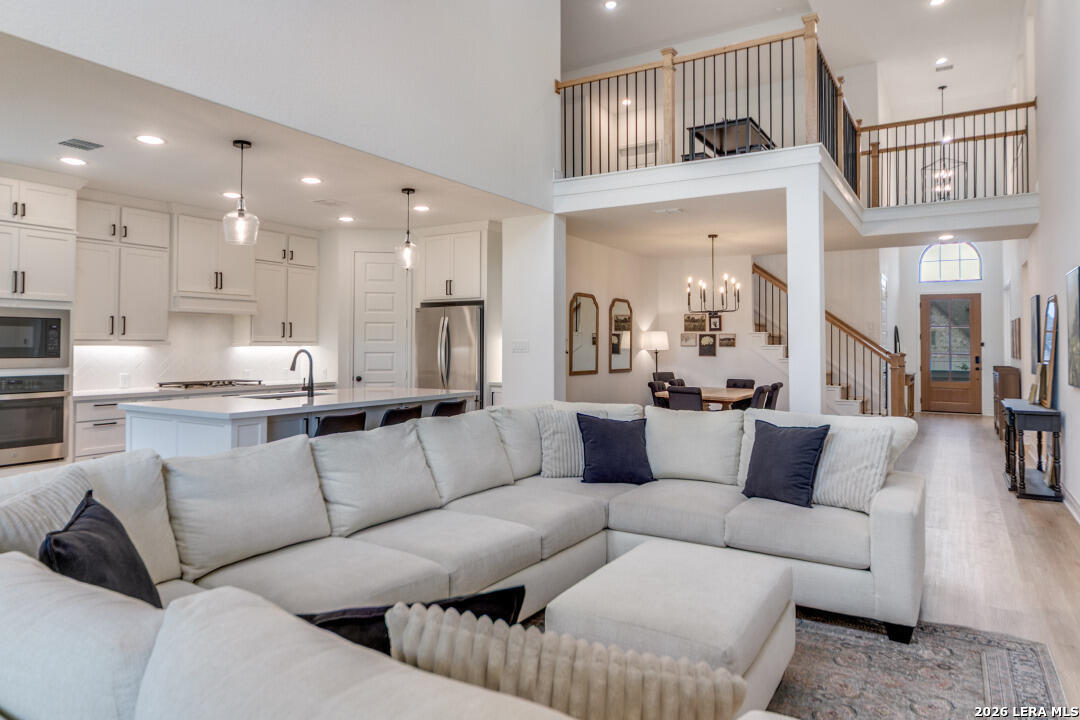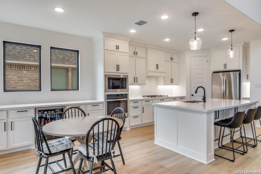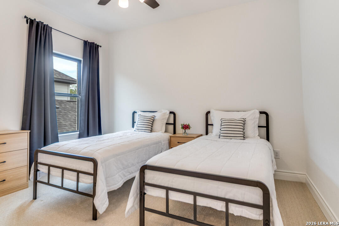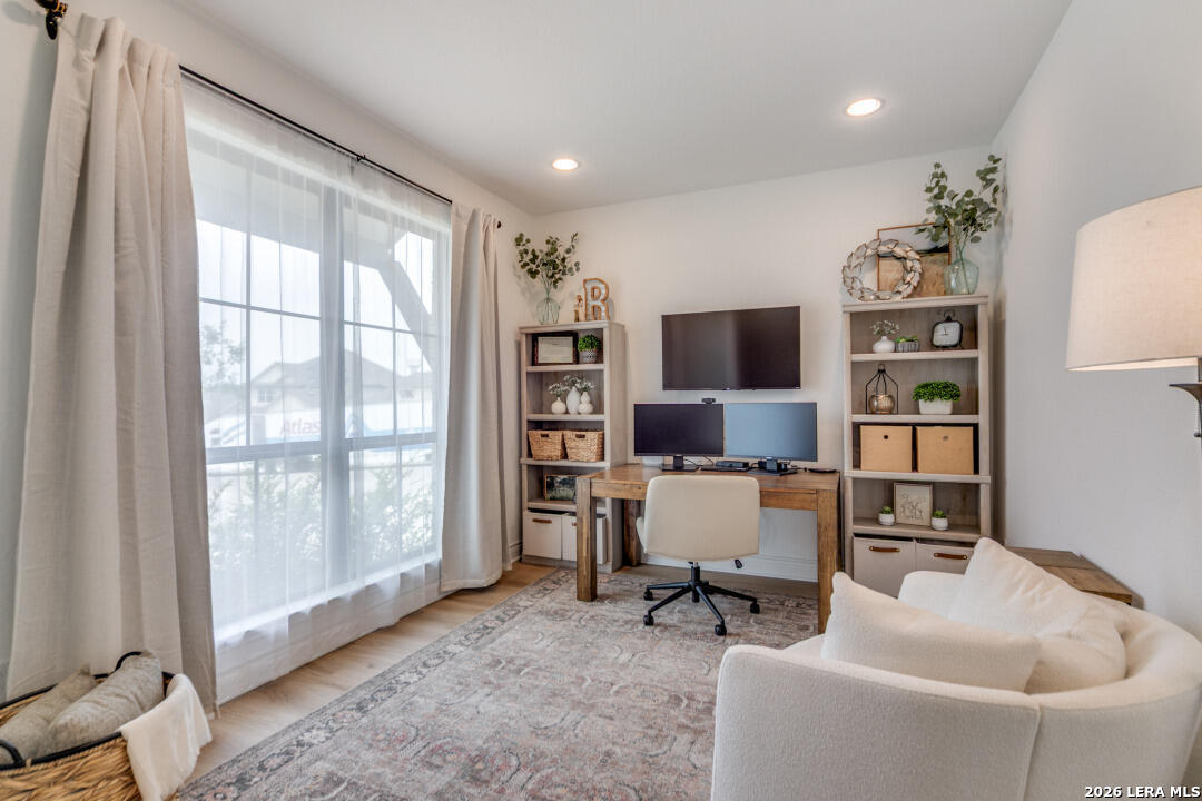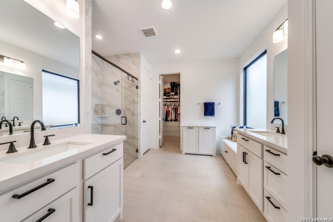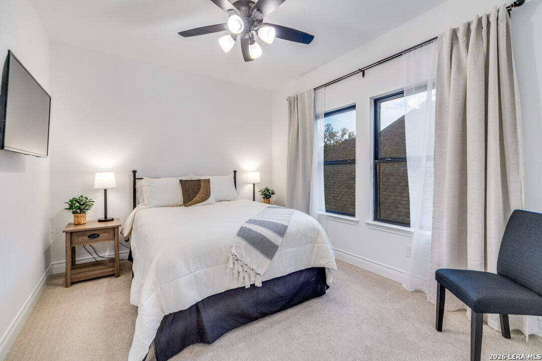 Welcome to this beautifully upgraded 4-bedroom, 3.5-bath 3,190 sq ft home designed with both functionality and style in mind. The thoughtfully designed layout has the ideal separation of space, featuring a private wing complete with a Jack-and-Jill bathroom and spacious loft game room, while a separate guest suite with its own dedicated bathroom provides comfort and privacy for visitors. Downstairs, you'll find a dedicated office, along with an open-concept living area that flows seamlessly into the kitchen. The kitchen is a true showstopper, featuring quartz countertops, double-stacked cabinetry, soft-close cabinets and drawers, an extended bar area, and a 36-inch gas range-functional for both everyday living and entertaining. A large sliding glass door fills the space with natural light and opens to the backyard, while black-framed windows add a modern, high-end touch throughout. Upstairs, enjoy the large media room for movie nights or relaxing with family. This home is loaded with upgrades including luxury vinyl plank flooring, upgraded carpet upstairs, tile extended to the ceiling in all bathrooms, quartz countertops throughout, tankless water heater, soft water plumbing, whole-home gutters, irrigation system, CAT6 wiring, and surveillance camera pre-wiring. The 4-sided masonry, including second-story brick exterior adds both charm and low-maintenance durability. A 3-car tandem garage provides ample space for parking, storage, or a home gym setup. Step outside to your extended patio and outdoor kitchen for entertaining year-round. Situated on a premium lot with no future builds behind, you'll enjoy peaceful views of beautiful green space and added privacy. This home truly checks every box-modern upgrades, well-designed layout, and a prime lot. In your spare time, enjoy the community amenities, including a pool and pavilion or the hiking and biking trails!