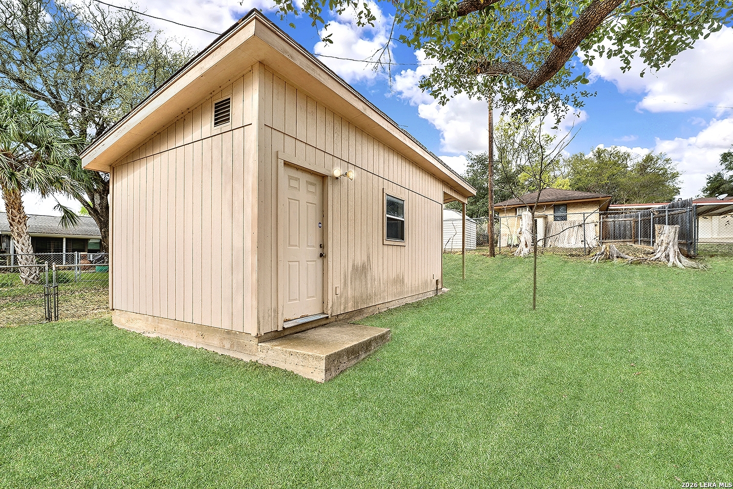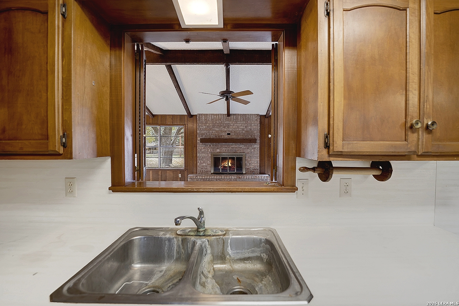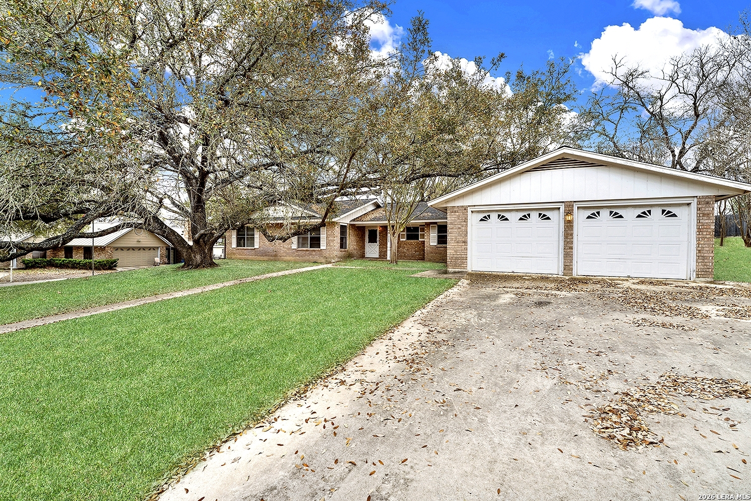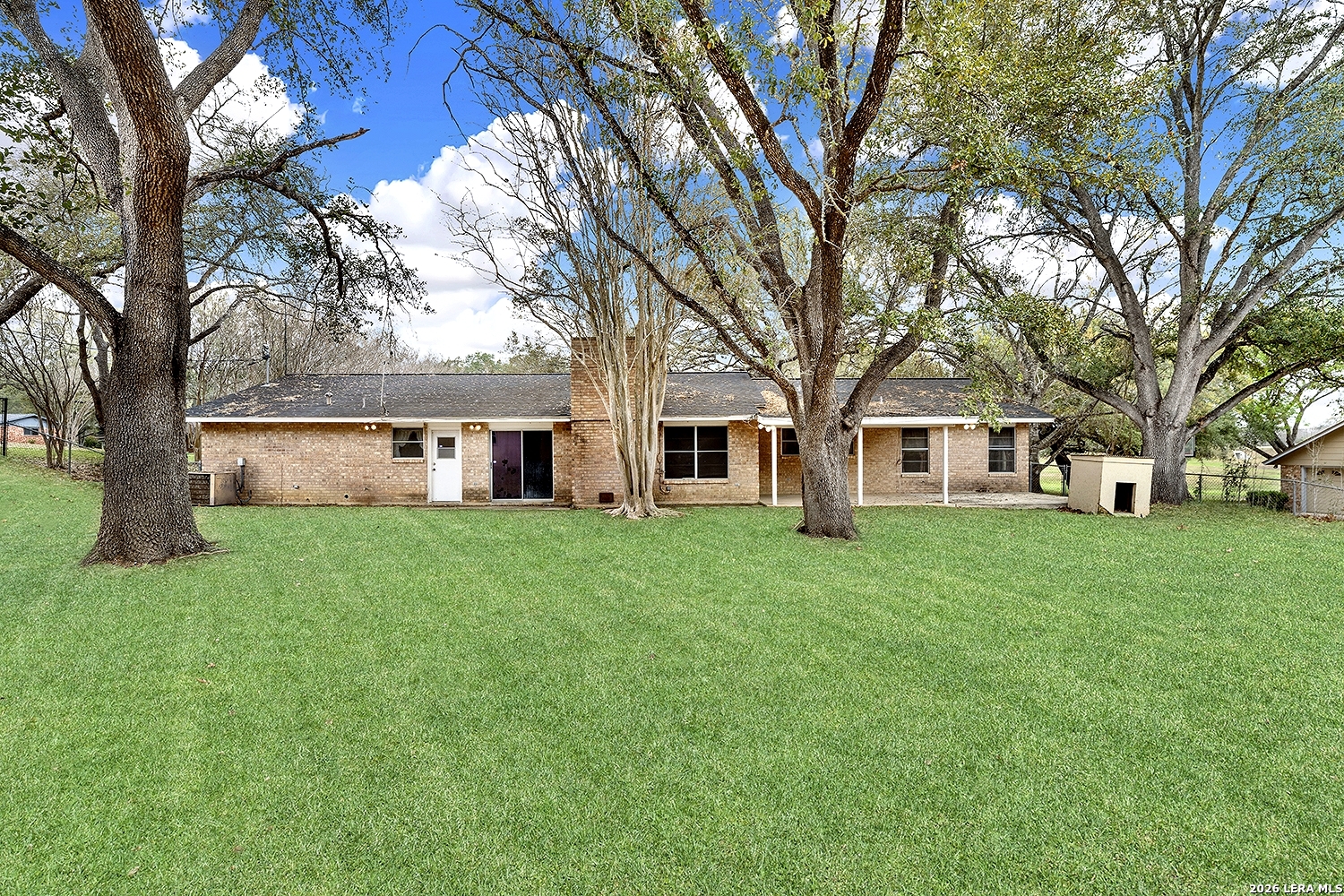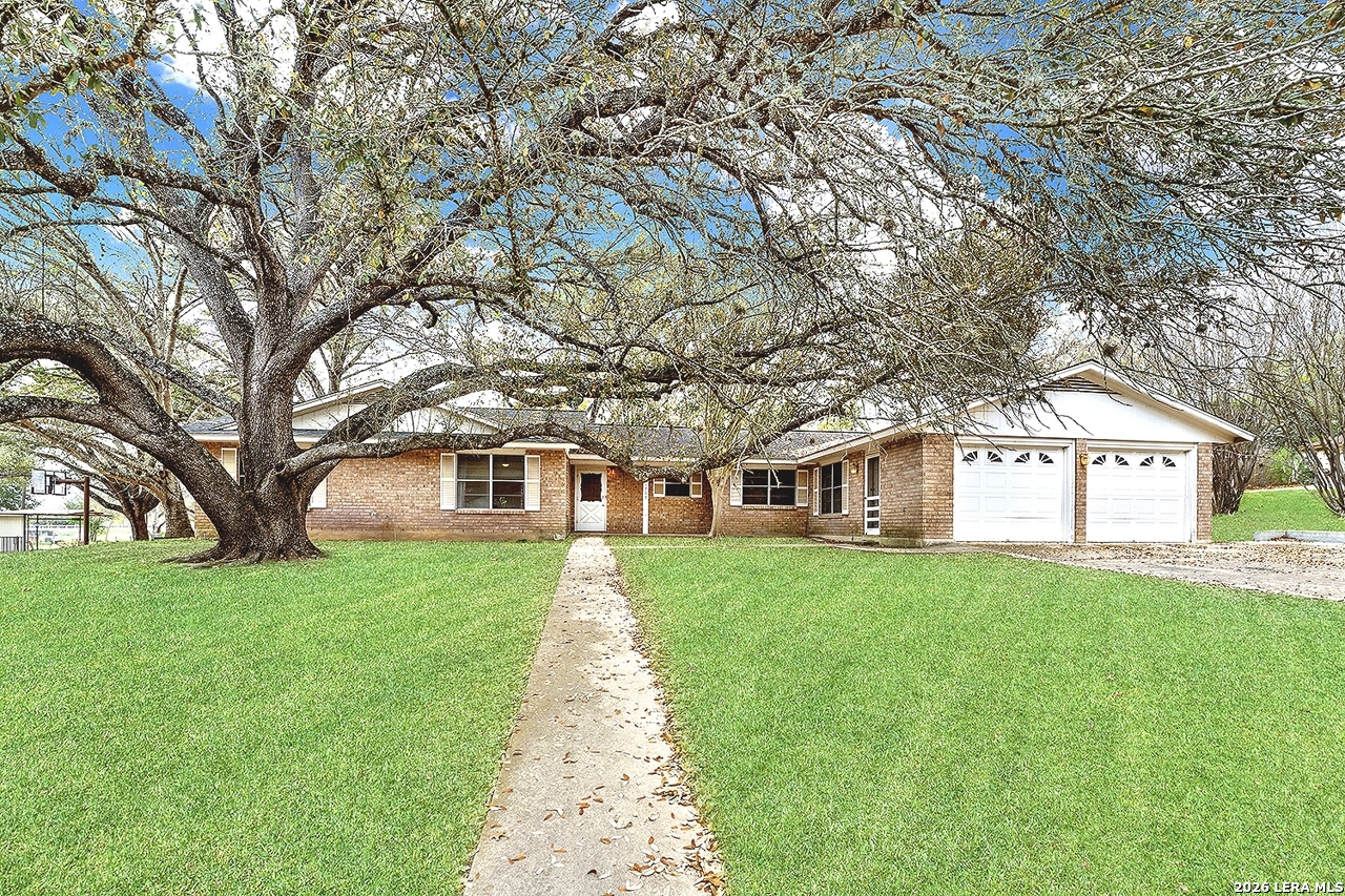 Location, location, location! This home sits on a lovely lot close to downtown Floresville, with a beautiful large oak shading most of the front yard. The home has great bones, single owner family, and ready for a new family to make memories! Two living spaces offer lots of family & entertaining space, including lots of storage, could easily be remodeled to an open concept if desired. Floor to ceiling brick fireplace in the main living area. Come make this home yours today!