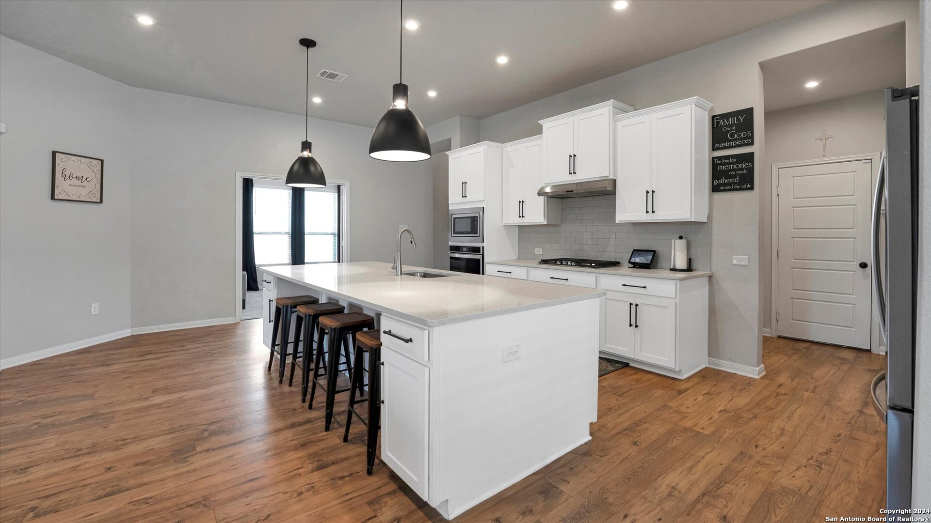 Motivated Sellers - Bring Your Offers! Our sellers are highly motivated and have just made a significant price reduction, bringing this beautiful home to one of the most competitive price points in the area. While we're open to offers, please keep in mind that we've already priced the home near the bottom line. This is a fantastic opportunity to secure a wonderful property in the gated community of Prospect Hill within the Kinder Ranch subdivision. Don't hesitate to submit your best offer! This spacious, all-one-story home offers the perfect blend of comfort and luxury, featuring 4 bedrooms, 3 full baths, an office/study, and a versatile flex room. Key Features: Prime Location: Enjoy the convenience of having all schools from elementary to high school within walking distance. The schools and their sports programs are highly rated, making it an ideal place for your kids to thrive. Spacious Layout: With a tandem 3 car garage, this home boasts an all-brick exterior and an oversized covered back patio perfect for relaxing or entertaining. Modern Amenities: Upgraded 8ft interior doors and taller-than-average ceiling heights create an open and airy feel throughout the house. The large laundry room and gas stovetop add to the home's functionality. Beautiful Interiors: The natural colored wood floors are stunning, and the oversized island in the kitchen is perfect for entertaining guests. Extras Included: A water softener and security system setup are already in place, and the refrigerator is negotiable. Listing agent is providing a $250 credit for the buyer's chosen home warranty upon closing and funding. This CLEAN, well-maintained home is ready for you to move in and make it your own. Don't miss out on this incredible opportunity to live in one of the most sought-after communities.