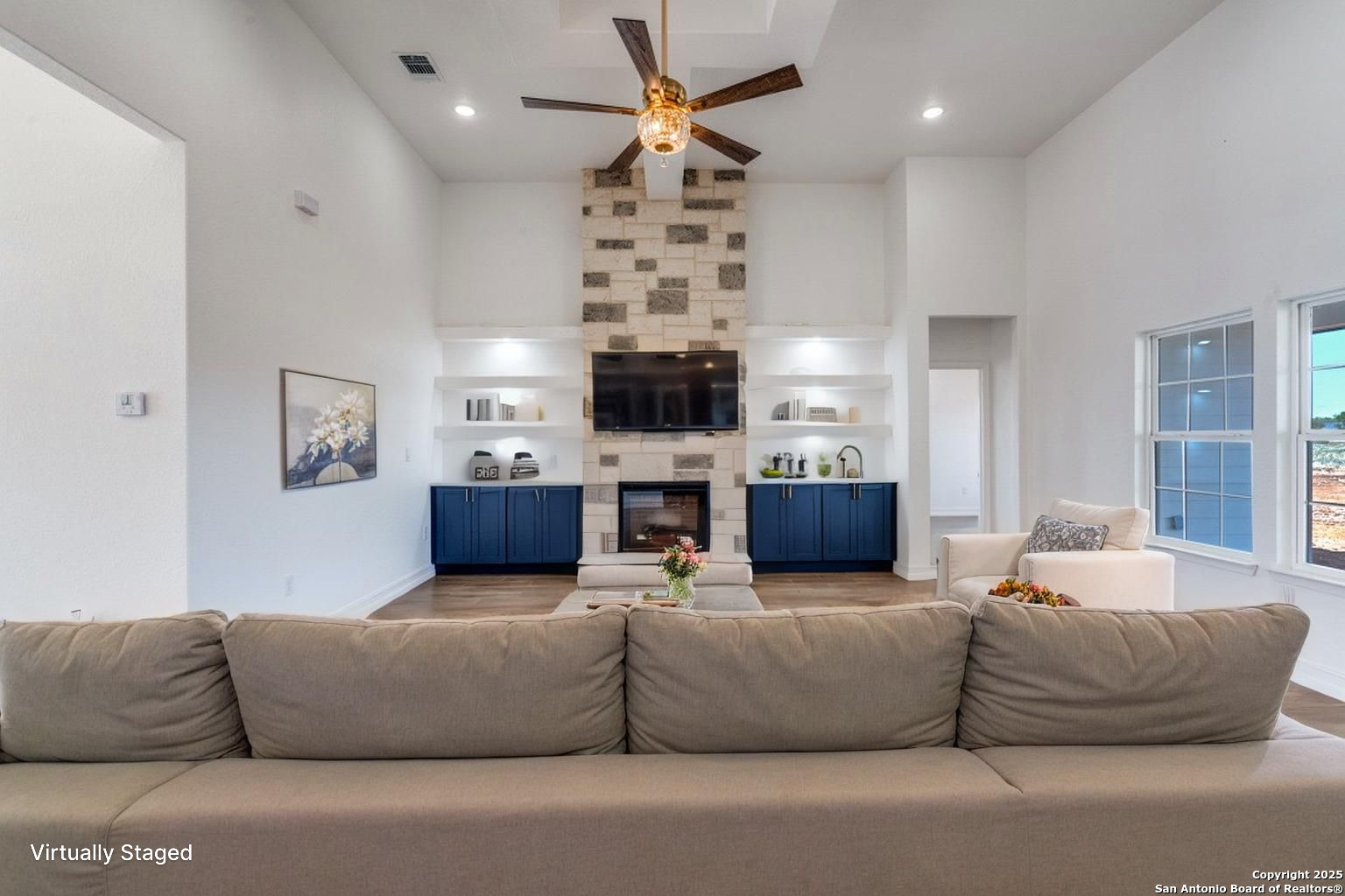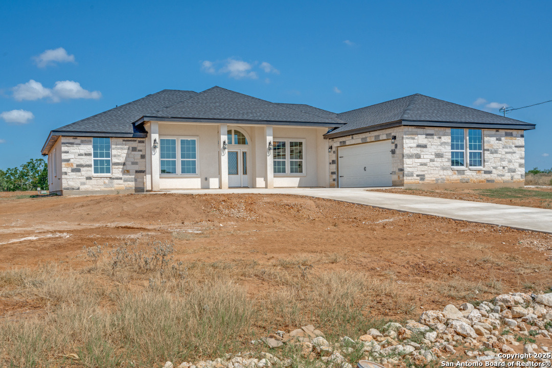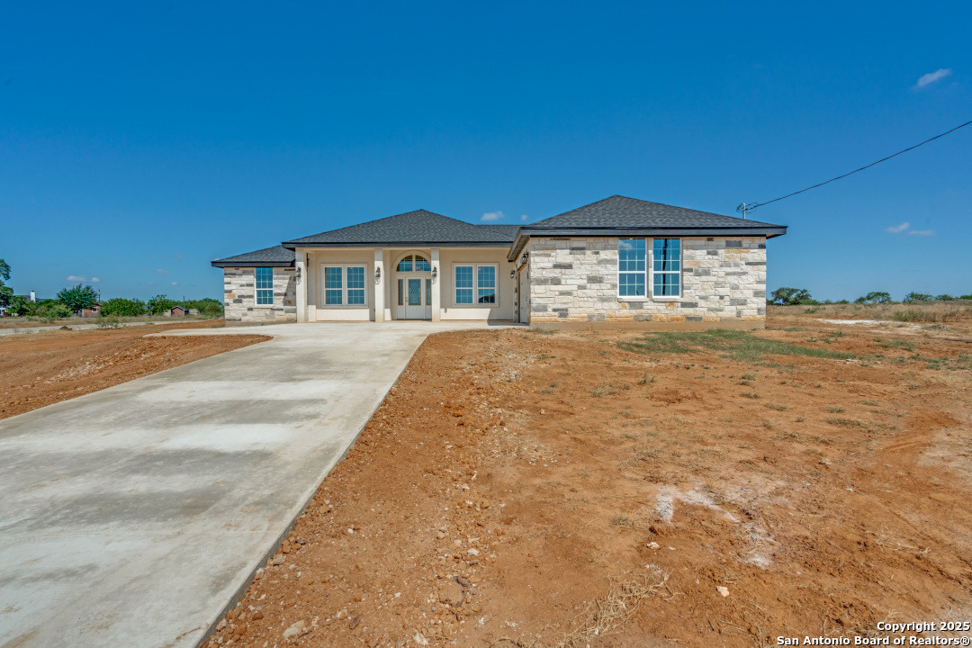 OPEN HOUSE SATUARDAY 2 to 4!!!! Experience modern luxury with timeless charm in this stunning new construction gem, on over an acre located in Floresville. The open floorplan features soaring ceilings, a cozy rock fireplace, and a gourmet chef's kitchen with quartz countertops. Perfect for gatherings. Relax in the spa-inspired primary suite with an amazing closet and retreat-style bath. Enjoy peaceful country living just minutes from downtown San Antonio. Admire breathtaking sunsets from the large covered p