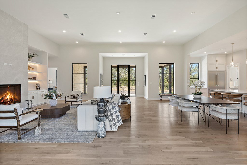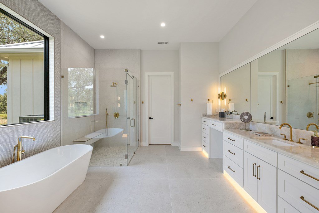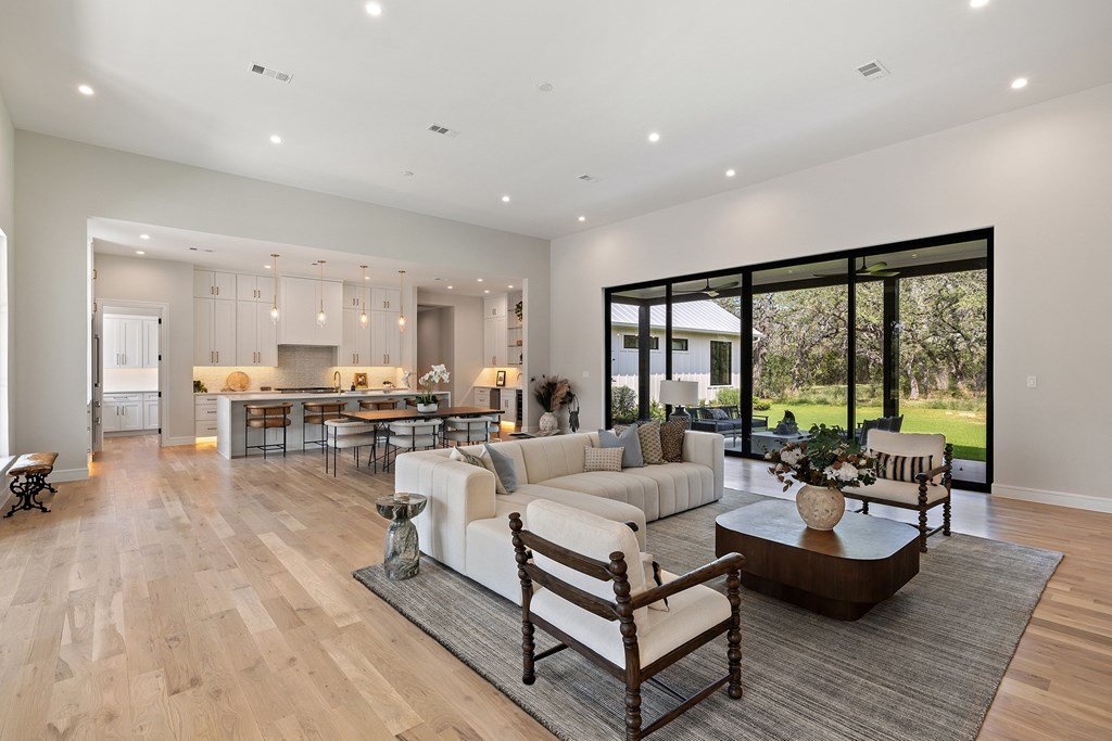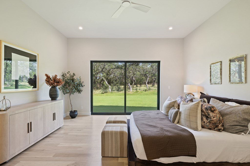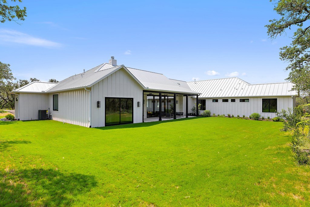 Hill Country contemporary with understated elegance built for entertaining, comfort and privacy. Brand new construction on 5.17 acres within the prestigious 464 Ranch subdivision. Upon entry your eye will be drawn to the vast windows & doors showcasing tranquil views of nature throughout the space. The kitchen features all Thermador appliances, ice maker, wine/beverage refrigerator, custom cabinetry, large chef's pantry & wet bar. The living room features 14' tall ceilings and wood/gas burning fireplace. The primary suite features a spa-like bathroom with dual vanities, shower enclosure and soaking tub that overlooks the countryside right outside the large picture window. The primary closet commands bragging rights with its opulent size and custom cabinetry. Other features include 3 guest bedrooms, 2.5 guest bathrooms, massive laundry room, mud room, office/playroom and 3-car garage. Spacious front & back porch, white oak hardwood floors, luxury European tile, quartzite & quartz counters, Quaker exterior doors & windows, all solid core interior doors, and 10'-11' ceilings in all non-living areas. With its beautiful gated entry, 464 Ranch is a large lot ranchette subdivision that is intended to feel like living on a large trophy ranch. Located 3 mi. north of downtown Johnson City and 1-hour from Austin & San Antonio, the project is high fenced, includes exotic wildlife, and an in-place wildlife tax exemption. Community improvements include buried utilities, high speed fiber internet, asphalt roads, 7-acre community park, and 2-mile hike & bike trail.