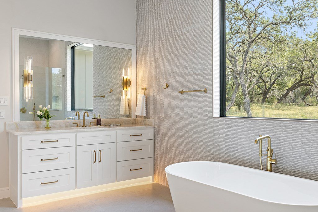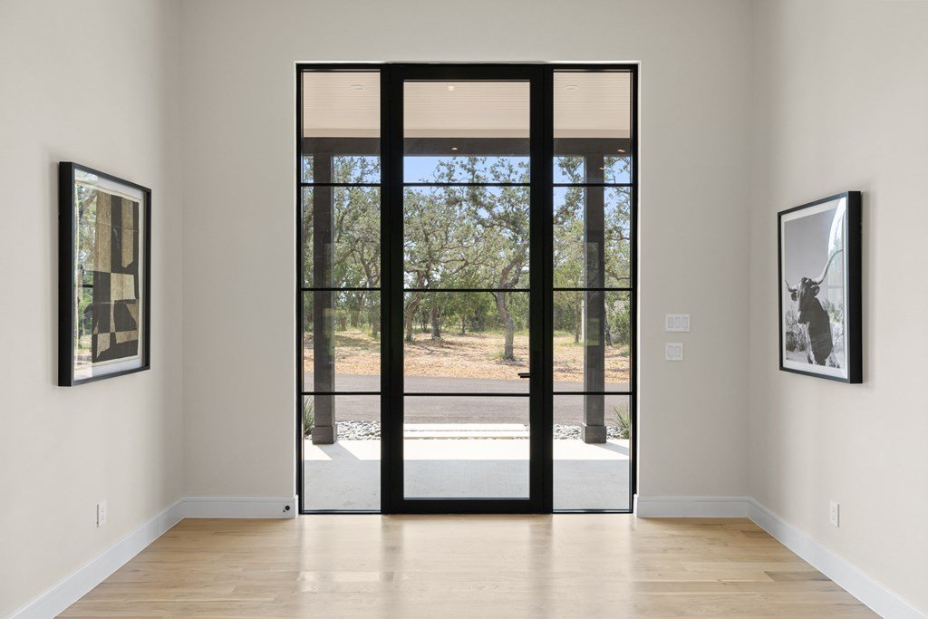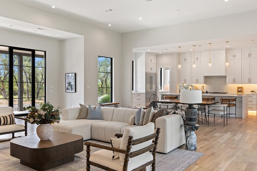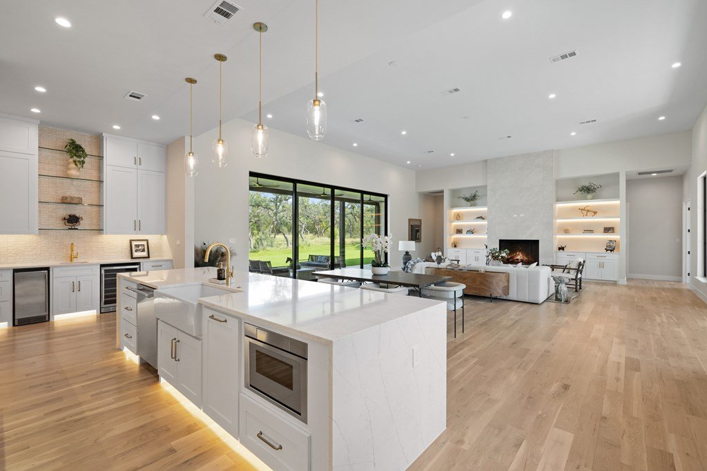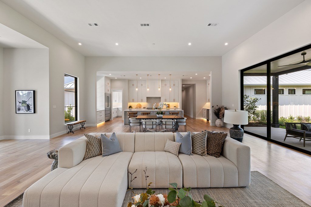 Hill Country contemporary with understated elegance built for entertaining, comfort and privacy. Brand new construction on 5.17 acres within the prestigious 464 Ranch subdivision. Upon entry your eye will be drawn to the vast windows & doors showcasing tranquil views of nature throughout the space. The kitchen features all Thermador appliances, ice maker, wine/beverage refrigerator, custom cabinetry, large chef's pantry & wet bar. The living room features 14' tall ceilings and wood/gas burning fireplace. The primary suite features a spa-like bathroom with dual vanities, shower enclosure and soaking tub that overlooks the countryside right outside the large picture window. The primary closet commands bragging rights with its opulent size and custom cabinetry. Other features include 3 guest bedrooms, 2.5 guest bathrooms, massive laundry room, mud room, office/playroom and 3-car garage. Spacious front & back porch, white oak hardwood floors, luxury European tile, quartzite & quartz counters, Quaker exterior doors & windows, all solid core interior doors, and 10'-11' ceilings in all non-living areas. With its beautiful gated entry, 464 Ranch is a large lot ranchette subdivision that is intended to feel like living on a large trophy ranch. Located 3 mi. north of downtown Johnson City and 1-hour from Austin & San Antonio, the project is high fenced, includes exotic wildlife, and an in-place wildlife tax exemption. Community improvements include buried utilities, high speed fiber internet, asphalt roads, 7-acre community park, and 2-mile hike & bike trail.