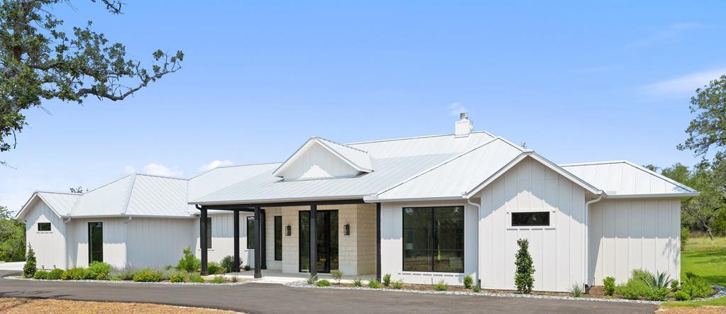 Hill Country contemporary with understated elegance built for entertaining, comfort and privacy. Brand new construction on 5.17 acres within the prestigious 464 Ranch subdivision. Upon entry your eye will be drawn to the vast windows & doors showcasing tranquil views of nature throughout the space. The kitchen features all Thermador appliances, ice maker, wine/beverage refrigerator, custom cabinetry, large chef's pantry & wet bar. The living room features 14' tall ceilings and wood/gas burning fireplace. The primary suite features a spa-like bathroom with dual vanities, shower enclosure and soaking tub that overlooks the countryside right outside the large picture window. The primary closet commands bragging rights with its opulent size and custom cabinetry. Other features include 3 guest bedrooms, 2.5 guest bathrooms, massive laundry room, mud room, office/playroom and 3-car garage. Spacious front & back porch, white oak hardwood floors, luxury European tile, quartzite & quartz counters, Quaker exterior doors & windows, all solid core interior doors, and 10'-11' ceilings in all non-living areas. With its beautiful gated entry, 464 Ranch is a large lot ranchette subdivision that is intended to feel like living on a large trophy ranch. Located 3 mi. north of downtown Johnson City and 1-hour from Austin & San Antonio, the project is high fenced, includes exotic wildlife, and an in-place wildlife tax exemption. Community improvements include buried utilities, high speed fiber internet, asphalt roads, 7-acre community park, and 2-mile hike & bike trail.