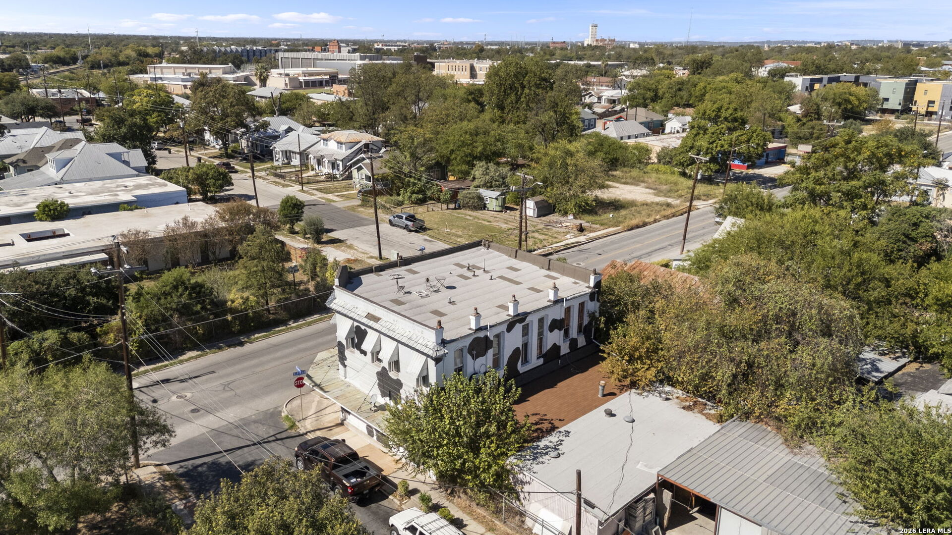 Unique building in a prime location in Southtown/ Mission Reach/ San Antonio River. Many historic art deco features including high ceilings decorated with copper and tin tiles, decorative awnings, and enclosed warehouse/ storage as well as an outbuilding shop constructed in 2006. demising walls easily removed to open showroom/retail space, or built upon for further subdivision per the new owners needs. * Hard Corner of S. Presa and Panama * Highly visible building with lots of local reinvestment * 13' high ceilings * Copper and tin tile ceilings * Additional Warehouse storage area and insulated outbuilding. * side entry gate, 2026 replaced sidewalk access on 2 streets for pedestrian traffic