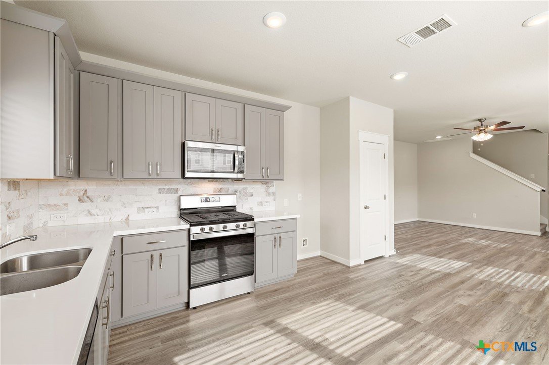 Immaculately maintained corner-unit condo in the desirable Cardinal Crossing community of Pflugerville. This stylish, low-maintenance home features 4 bedrooms with the primary suite on the main level, complete with an ensuite bath and dual vanities. The open concept living and dining areas are filled with natural light throughout and ideal for everyday living and entertaining. The kitchen features quartz countertops, stainless steel appliances, decorative subway style backsplash with accent details, and luxury vinyl plank flooring throughout. Upstairs offers 3 secondary bedrooms and a large, versatile loft for additional living, work, or entertainment space. Additional highlights include a 2-car attached garage, a fenced backyard, automatic sprinkler system, water softener loop in the garage, and low tax rate. Enjoy nearby parks with walking trails, sports courts, playgrounds, and pavilions. Property HOA pays for water, sewer, trash and landscaping. Less than 10 minutes from Stone Hill Town Center for convenient shopping and dining, including local favorite Brotherton’s Black Iron Barbecue. Easy access to IH 35, SH-130, HWY 79 and TX-45 allows quick commuting to Austin, Round Rock, and major employment centers including the Tesla Gigafactory and surrounding tech hubs. Schedule a private showing today and experience the comfort, convenience, and lifestyle this home offers.