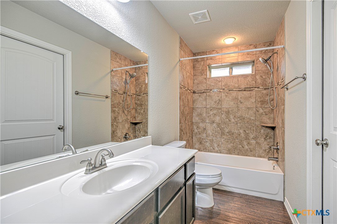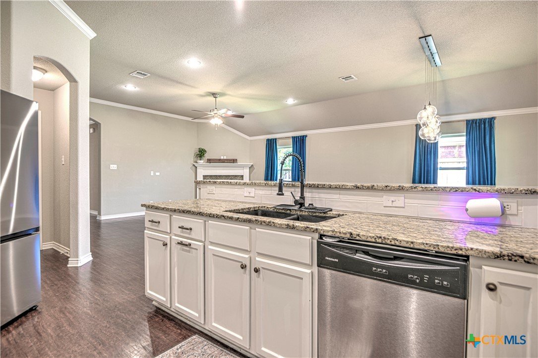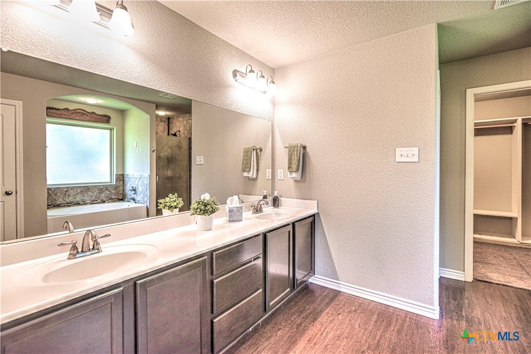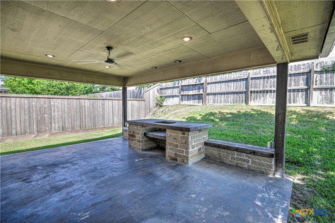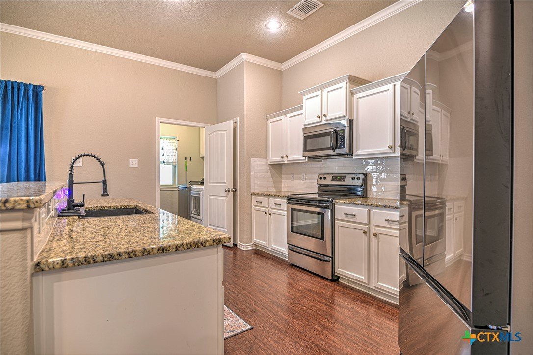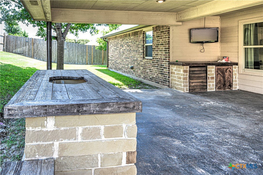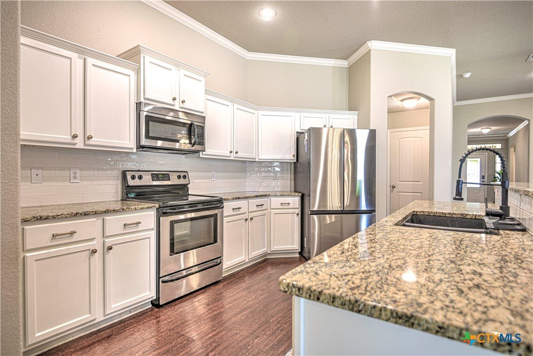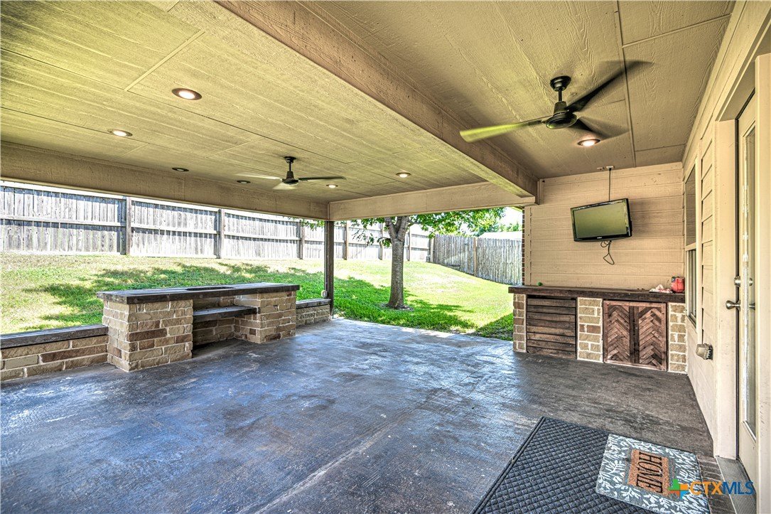 Exquisite Beauty! Welcome home to this highly sought after, gated community of Southern Draw. Impeccably maintained, this spacious home is a perfect blend of open split floor plan and spacious comfort. The home has modern upgrades and beautiful features, it features the hard to find-true guest suite with a full bathroom and private entry into the three-car garage. A very functional layout that is ideal for family or entertainment, from the gorgeous kitchen with subway tile to the spacious living areas. The kitchen boosts stainless steel appliances, granite counter tops, custom cabinets with cabinet pulls, and island over looking the dining and living room area. Laundry room has lots of built-in cabinets for storage. Step outside to the oversized covered patio and enjoy the peaceful backyard oasis, with built in area for a big green BBQ egg! Perfect for relaxing or hosting gatherings with friends and family. Master bedroom and bathroom are oversized with separate shower and tub, double vanity, and walk in closet. Located in West Temple, this home is conveniently close to shopping, dining, and entertainment of both Temple and Belton. Belton ISD