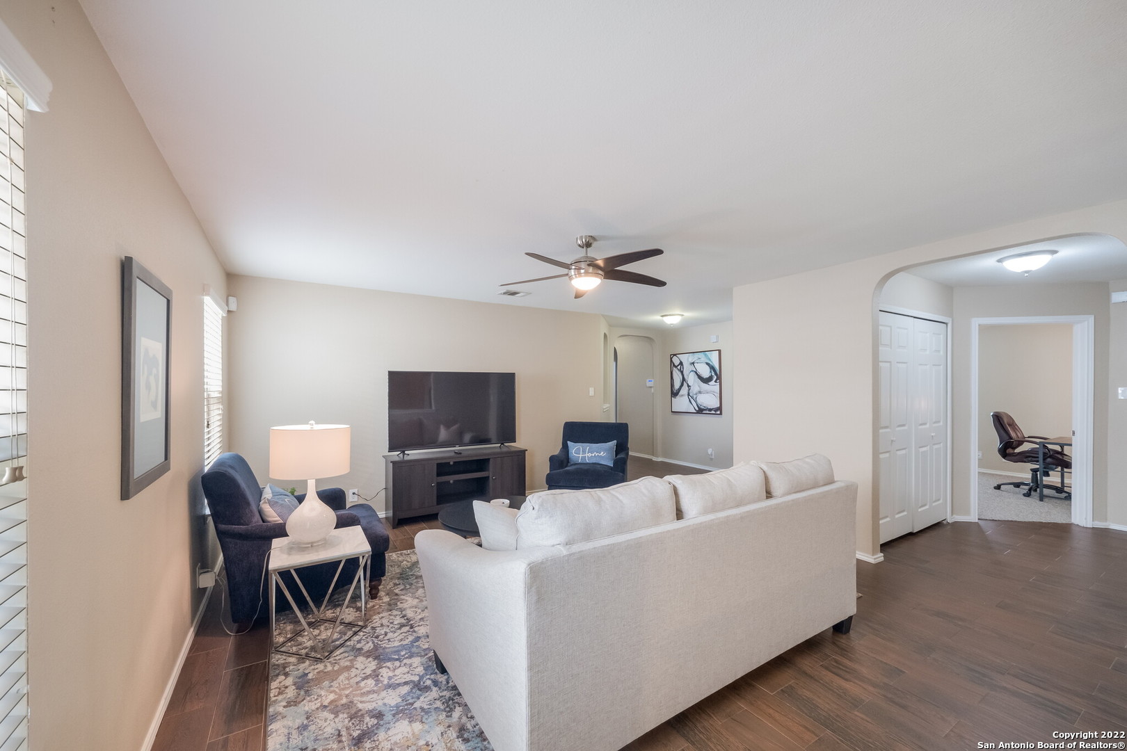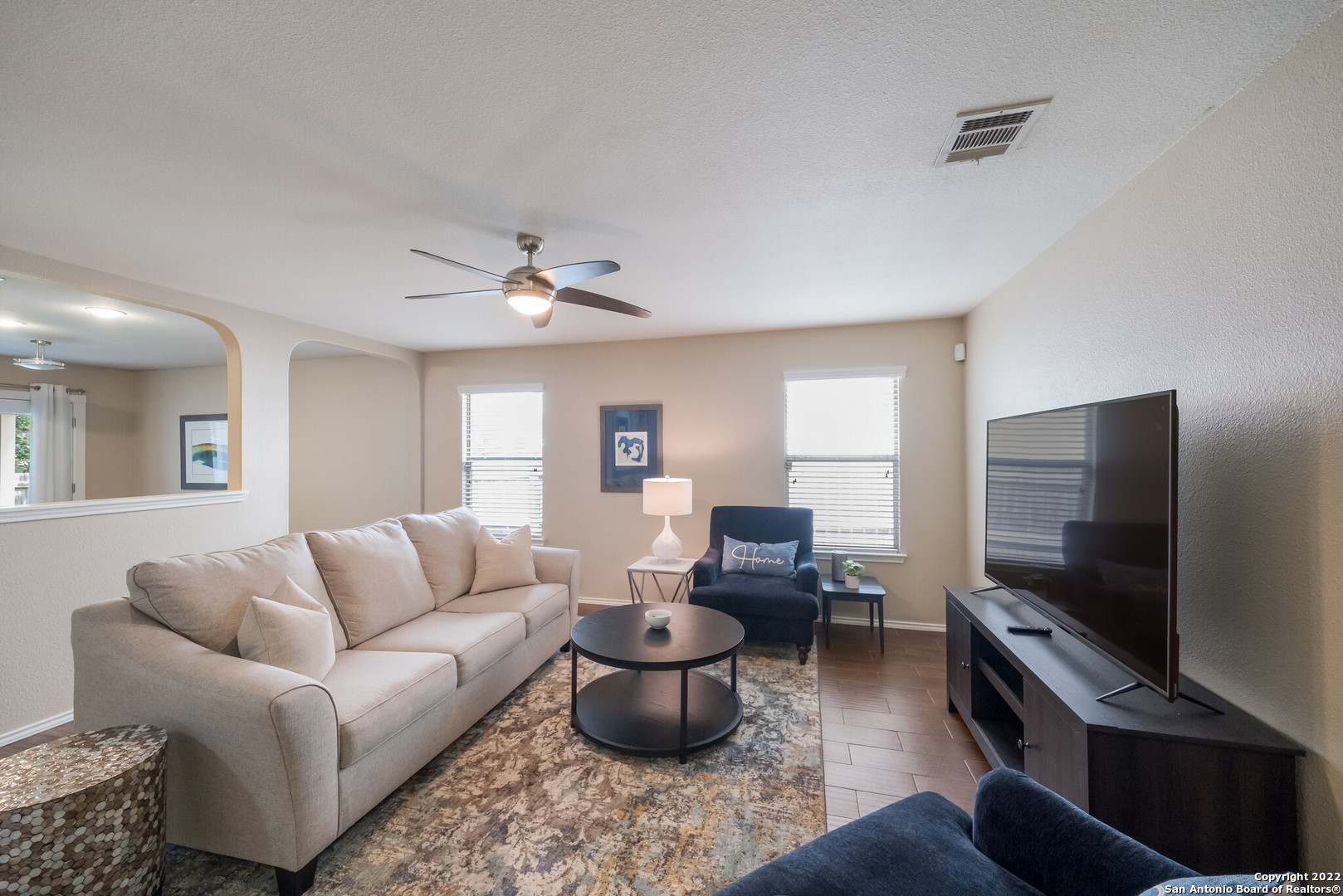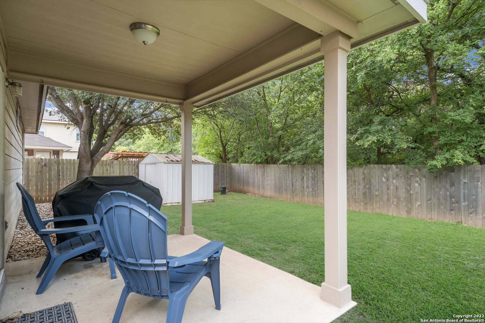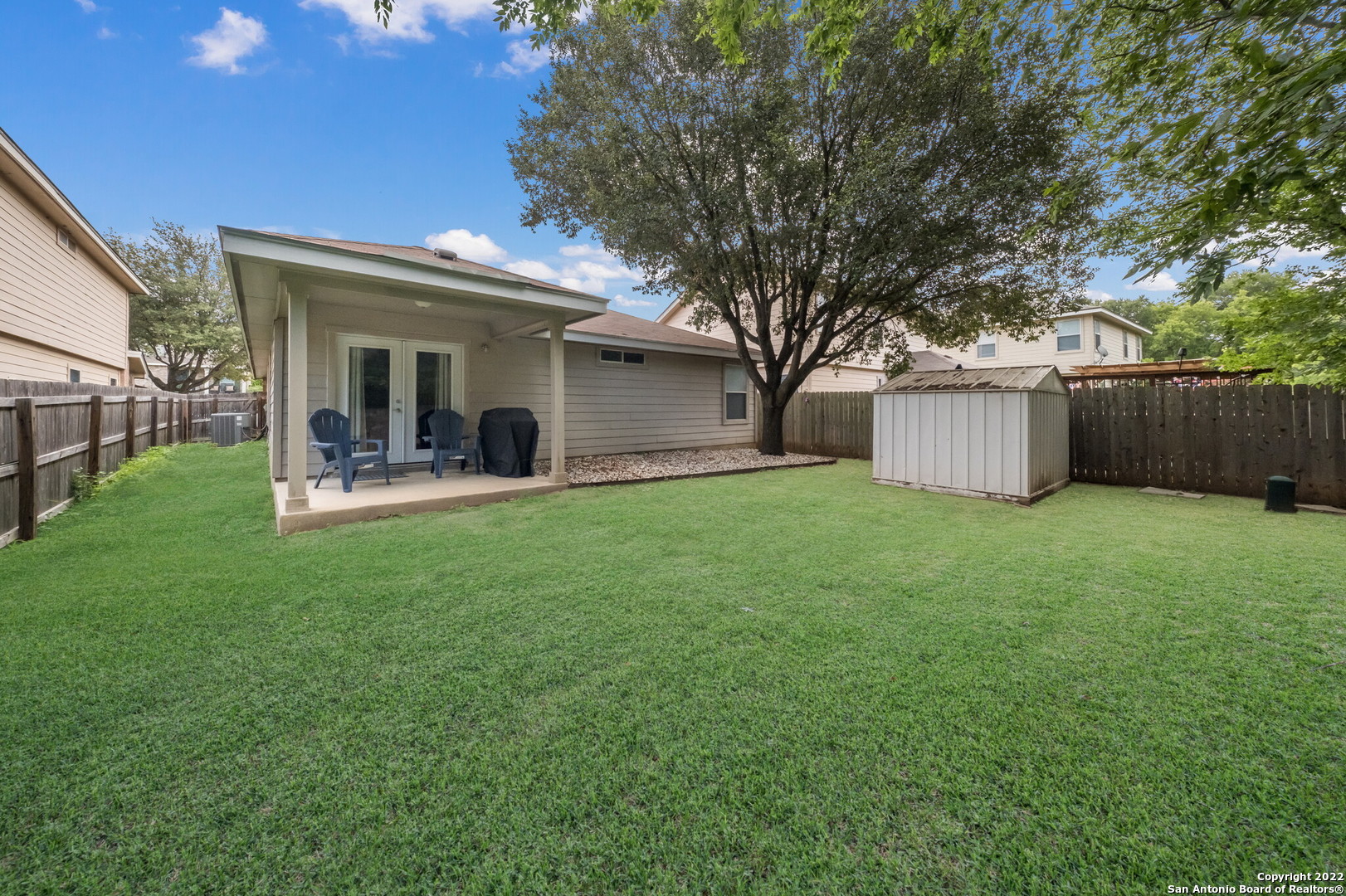 Charming One Story in Cul De Sac in Steubing Ranch on a Greenbelt space* 4 full bedrooms and 2 full baths* Nice size closets in each room and Laundry room in side the home* Family room open to the kitchen and eat in Kitchen *Quartz counters and beautiful backsplash with stainless appliances* Roof in 2019 *Tile in all living and kitchen area*Carpet replaced in bedrooms 12/12/22* Convered porch to entertain in backyard to enjoy the mature trees and greenbelt private space in backyard*Shed to store your extras or even a workspace*Steubing Ranch ha