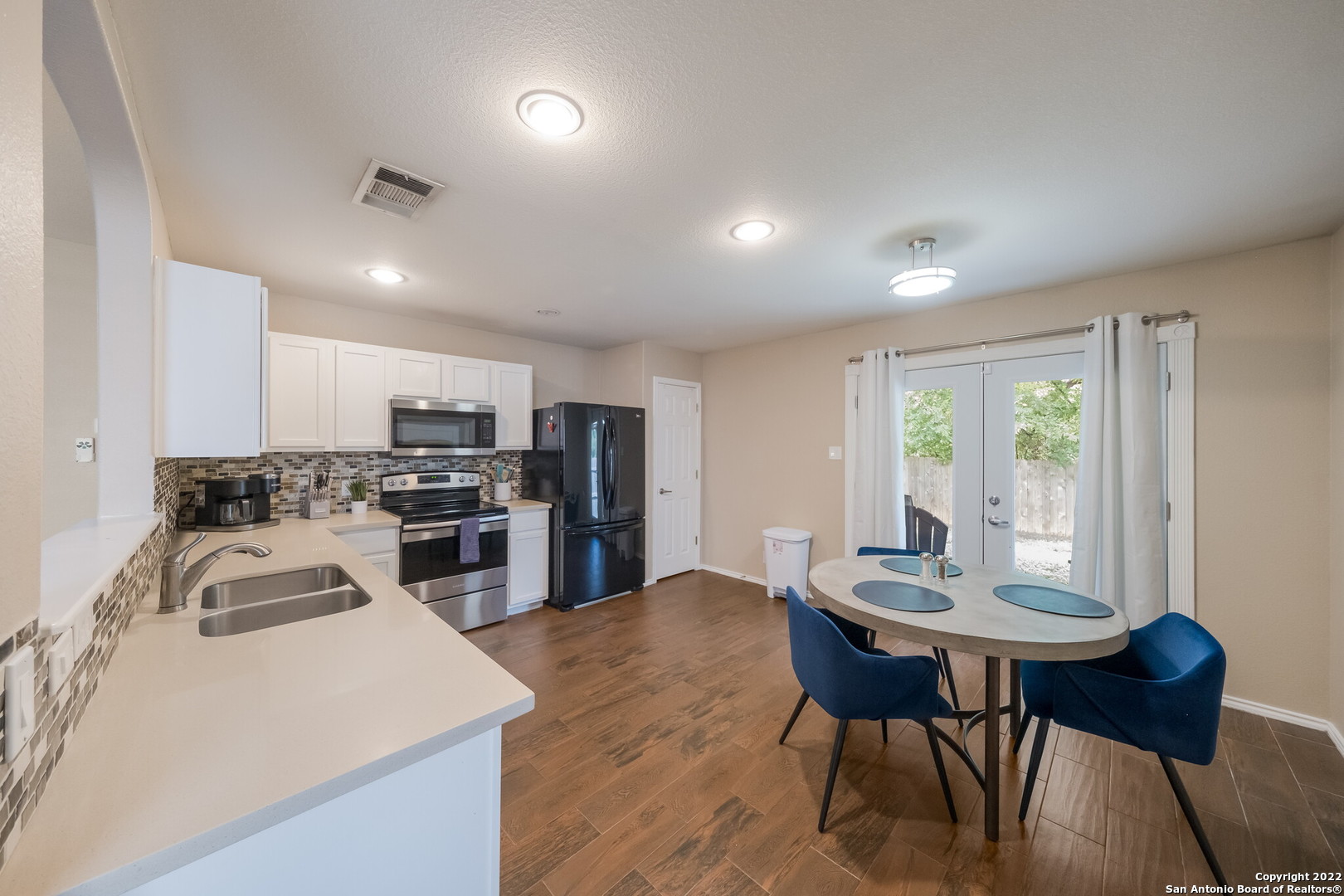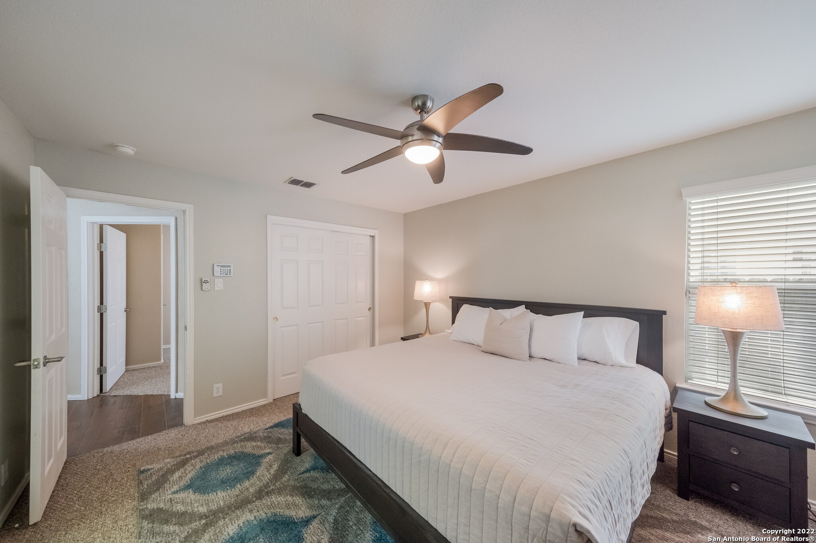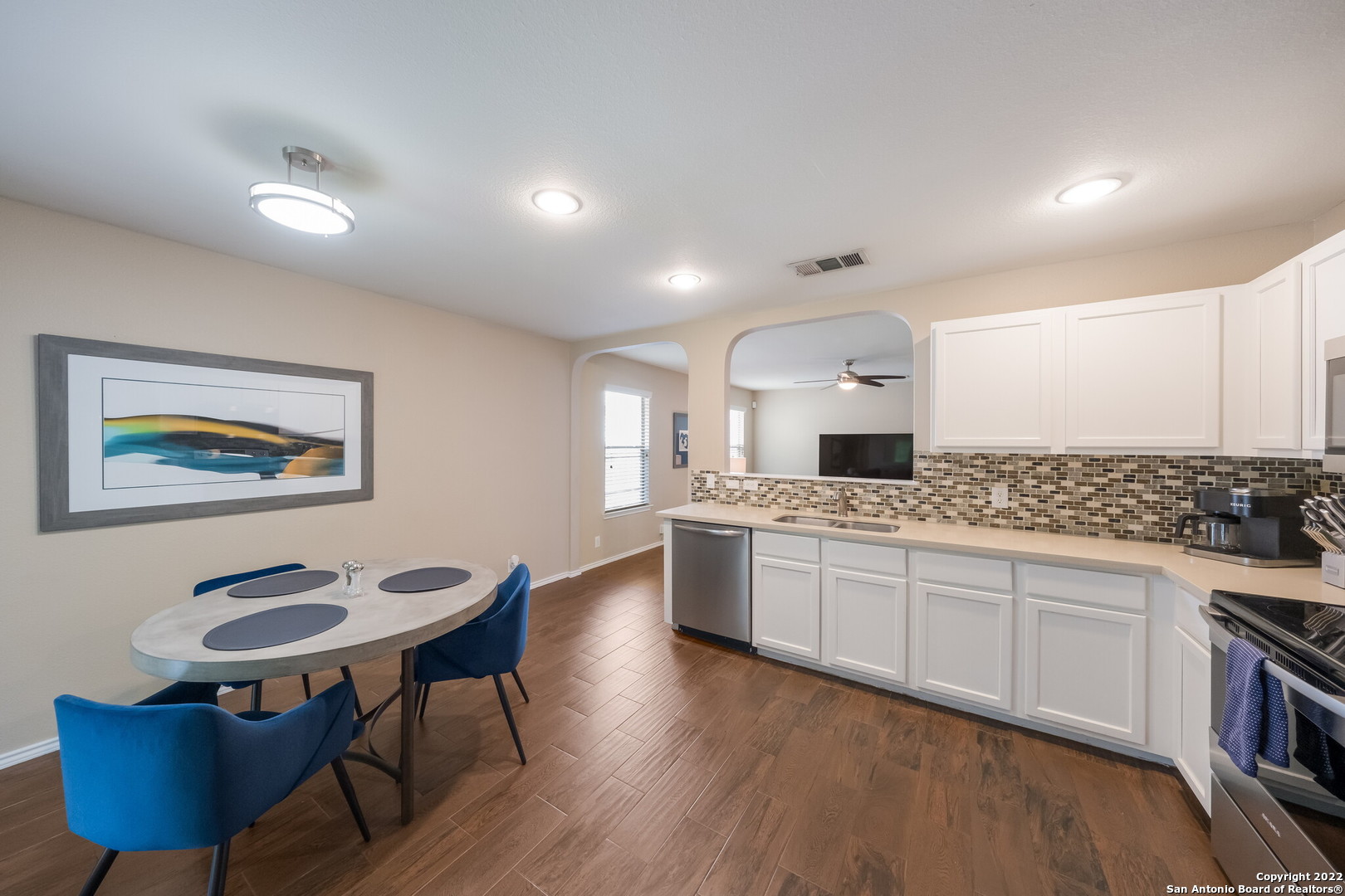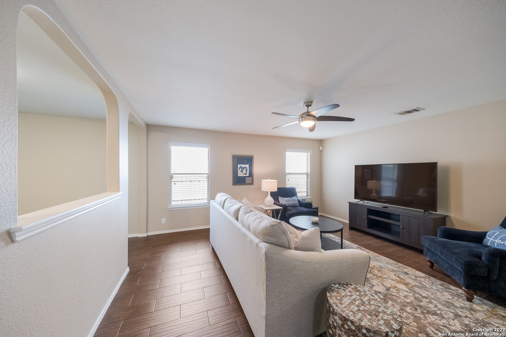 Charming One Story in Cul De Sac in Steubing Ranch on a Greenbelt space* 4 full bedrooms and 2 full baths* Nice size closets in each room and Laundry room in side the home* Family room open to the kitchen and eat in Kitchen *Quartz counters and beautiful backsplash with stainless appliances* Roof in 2019 *Tile in all living and kitchen area*Carpet replaced in bedrooms 12/12/22* Convered porch to entertain in backyard to enjoy the mature trees and greenbelt private space in backyard*Shed to store your extras or even a workspace*Steubing Ranch ha