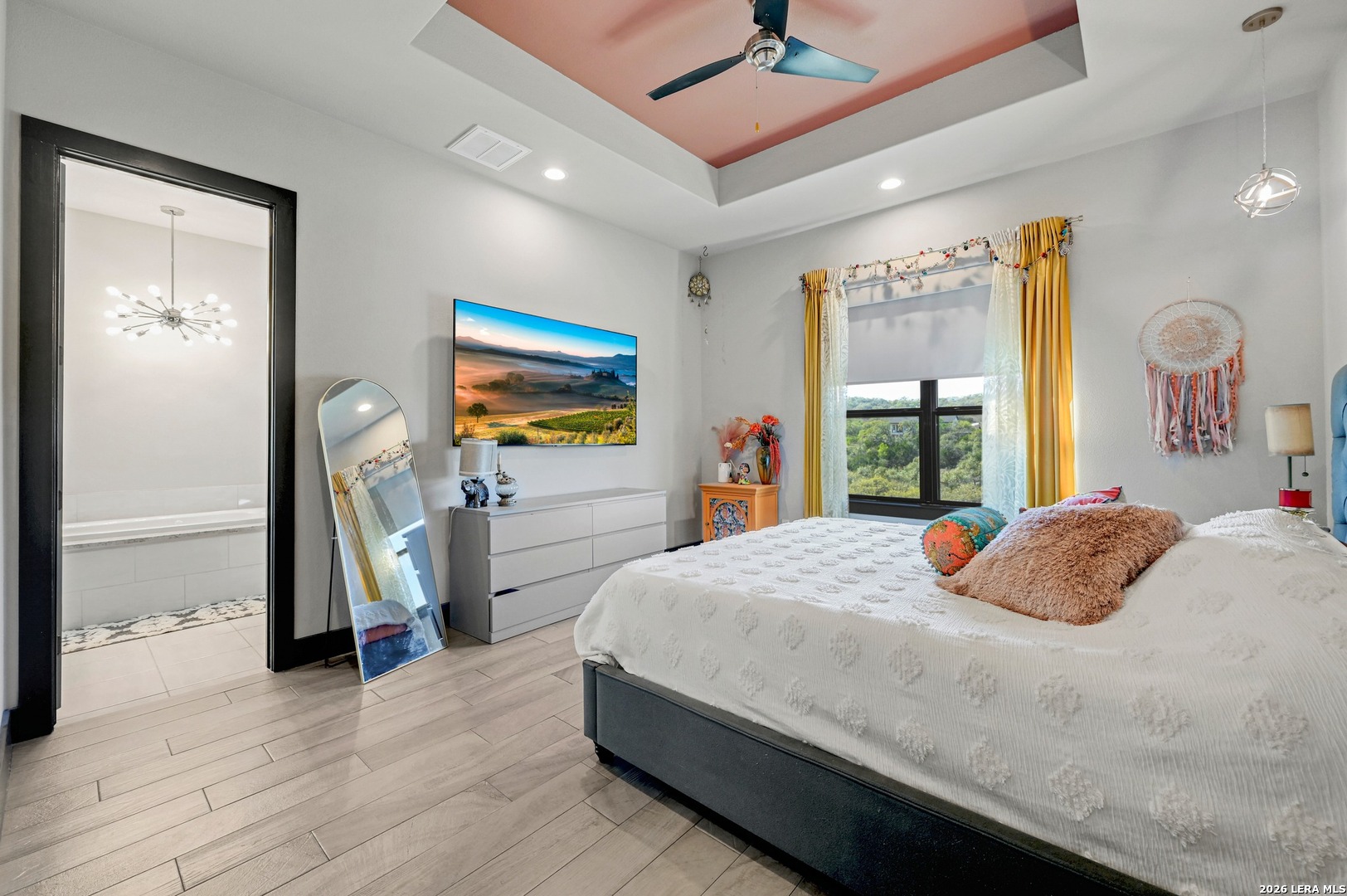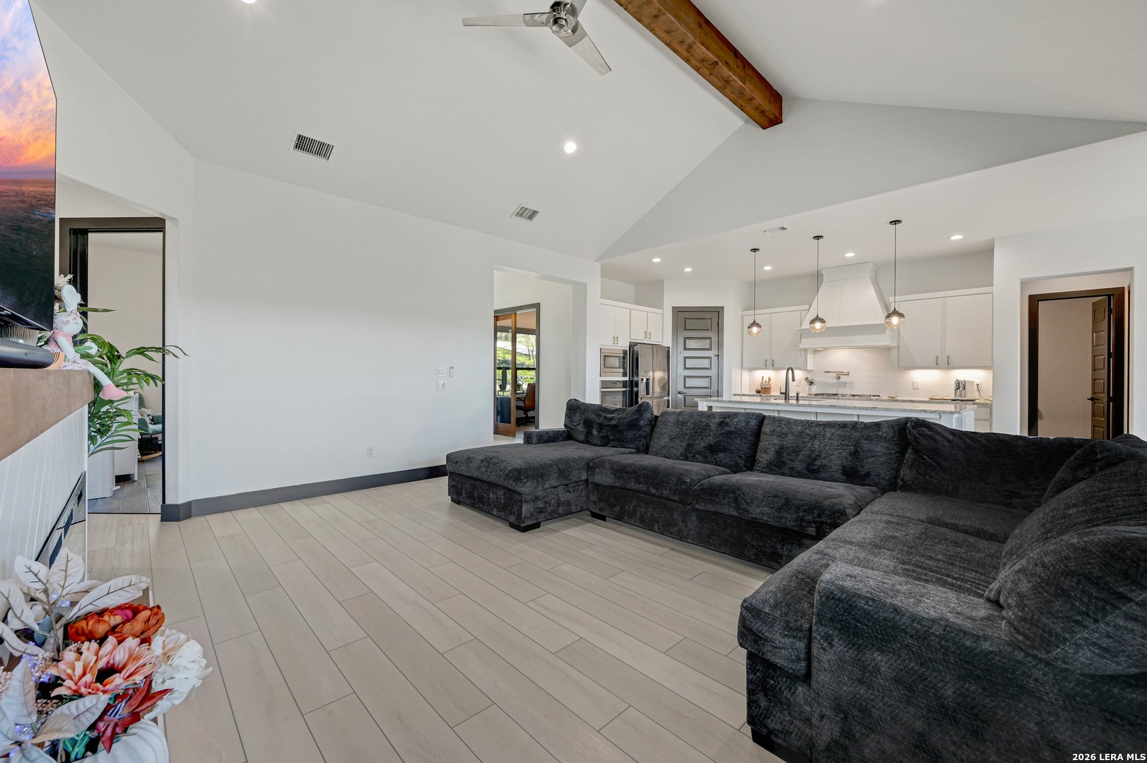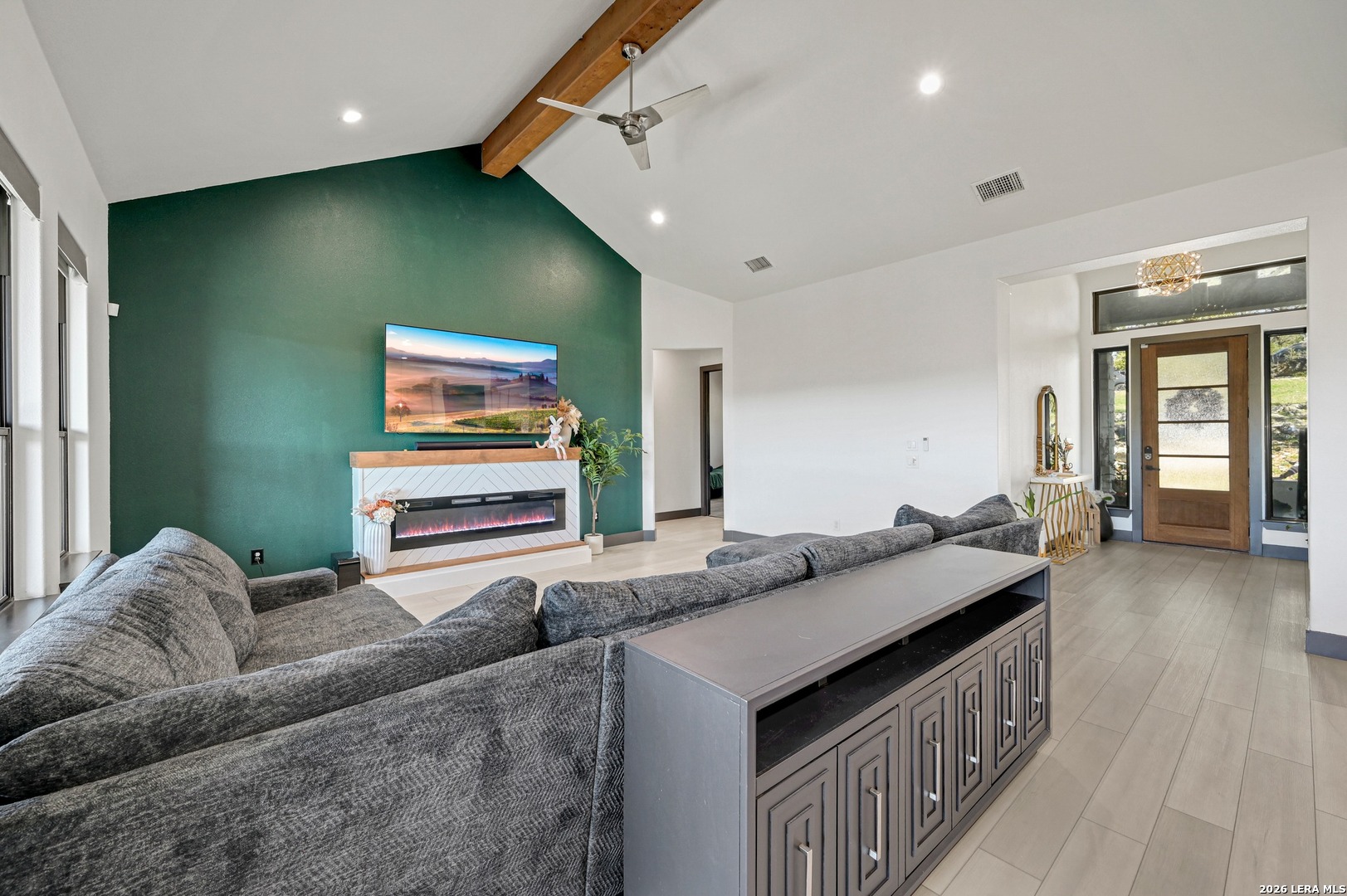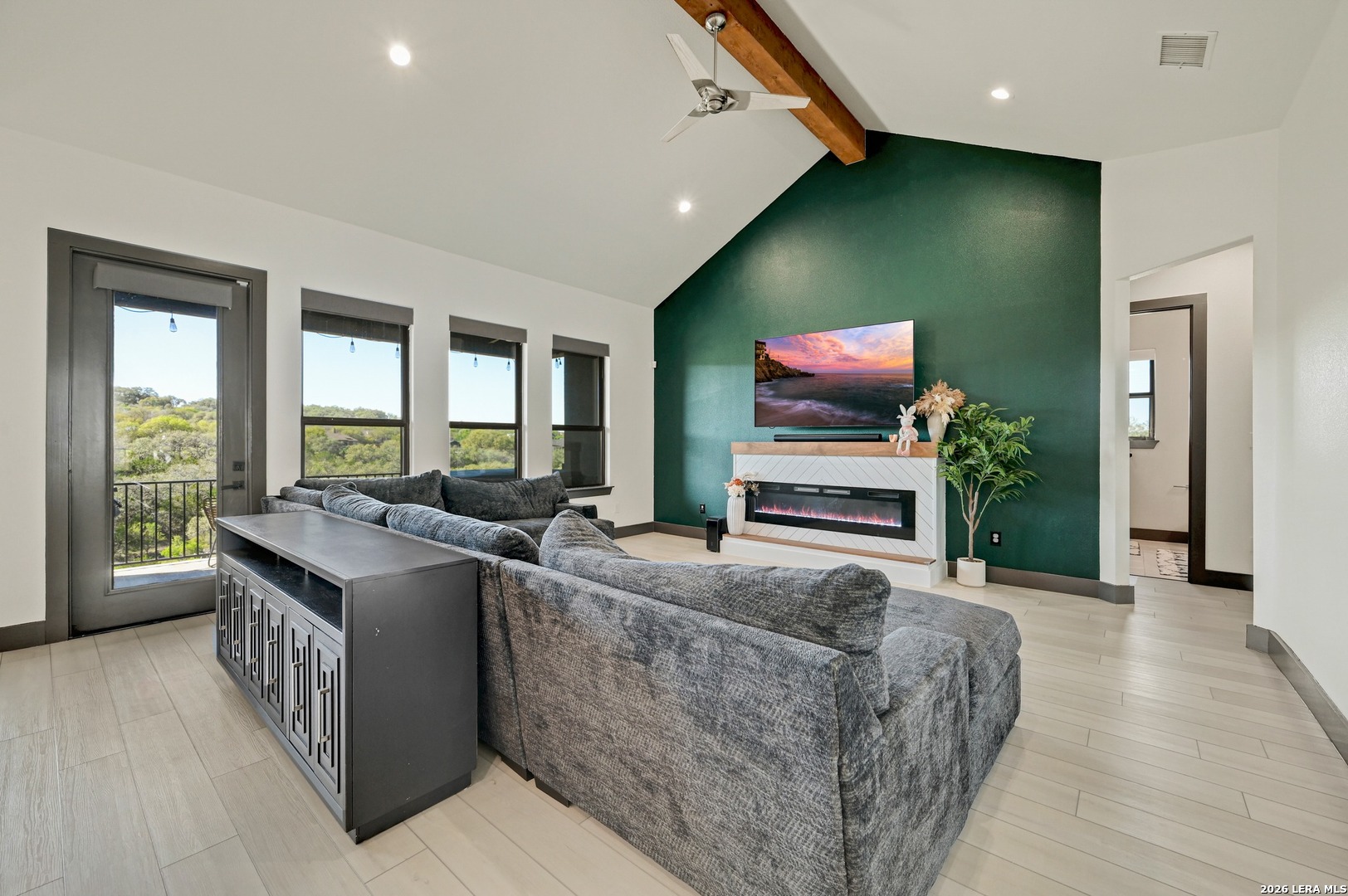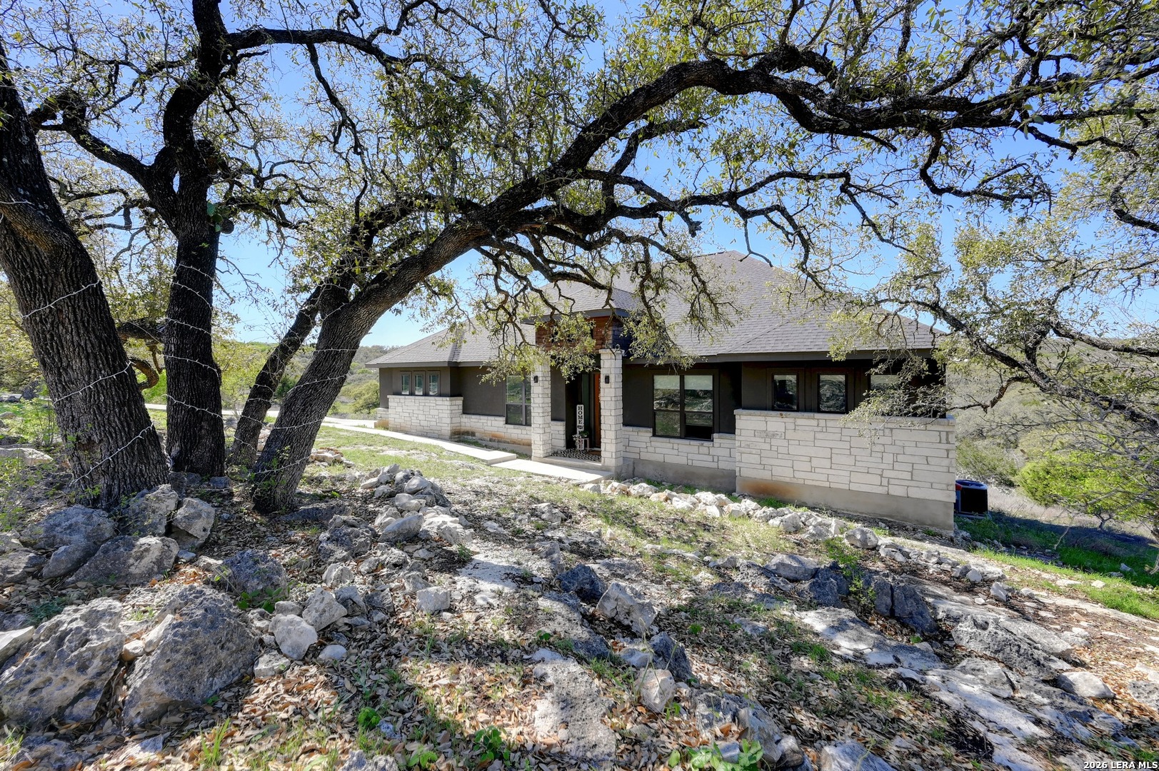 Stop scrolling-this is the one. With soaring ceilings, a show-stopping quartz island, and a spa-like primary retreat, this light-filled 4-bedroom, 2 bathroom home delivers the perfect blend of modern design, comfort, and peaceful, tree-lined views. Step inside to an open-concept layout filled with natural light and designed for both everyday living and effortless entertaining. The chef-inspired kitchen features an oversized quartz island, custom cabinetry, designer lighting, and a statement vent hood, creating a space that is as functional as it is striking. The living area showcases vaulted ceilings with exposed wood beams, a sleek modern fireplace, and a bold accent wall that adds warmth and character. Expansive windows frame serene natural views, bringing the outdoors in and enhancing the home's sense of privacy and tranquility. Privately situated, the primary suite offers a true retreat. The spa-inspired ensuite bath features a luxurious garden tub, an oversized walk-through shower, and a dual vanity, creating a calming, resort-like experience. The dining area is perfectly positioned to capture scenic views, while all four bedrooms offer flexibility for guests, work-from-home needs, or additional living space. Combining elevated finishes, thoughtful design, and a peaceful setting, this home offers a lifestyle defined by comfort, style, and everyday luxury. You wont find amenities like these! Residents enjoy exclusive access to a 58 acre private Guadalupe River Park with riverfront access, restrooms, showers, and a pavilion, plus a 32 acre clubhouse with two pools, fitness center, walking trails, tennis courts, and more. Just 6 miles from Gruene's shopping, dining, and live music, this home offers space, privacy, and an unbeatable lifestyle.