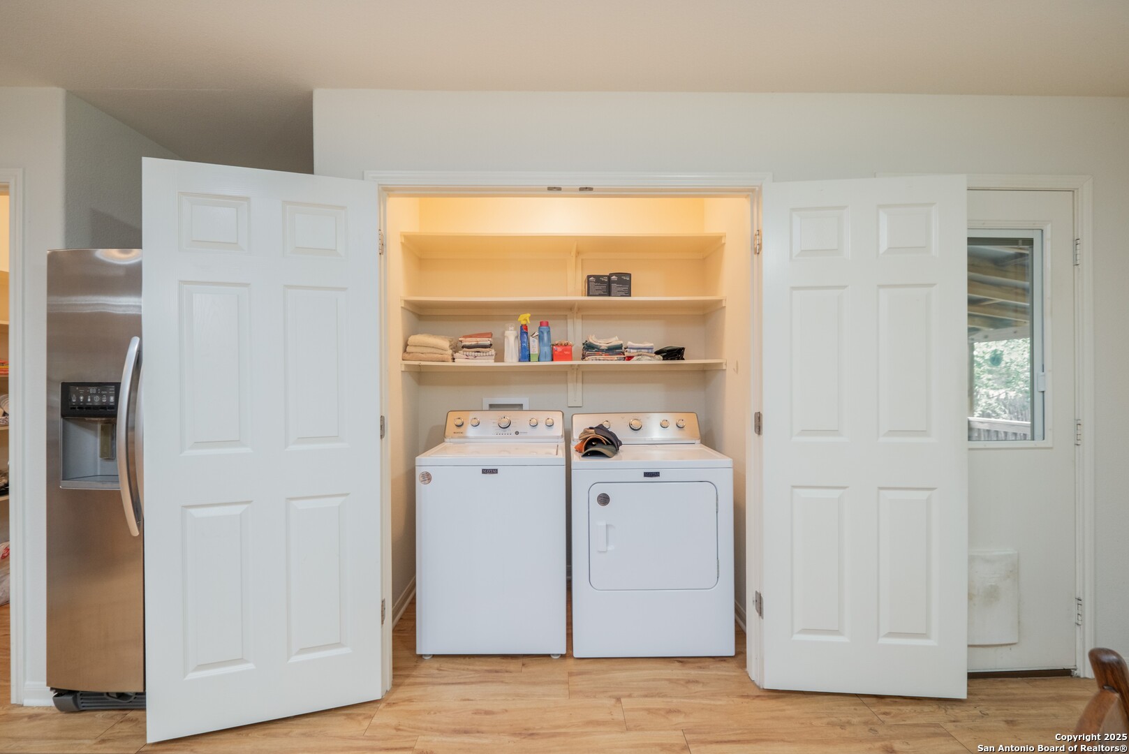 This thoughtfully designed 3-bed, 2-bath single-story home offers the perfect blend of functionality, privacy, and entertaining space. The open-concept living room, complete with a cozy fireplace, flows seamlessly into the kitchen and dining area, creating an inviting central hub ideal for daily living and hosting guests. The kitchen features a convenient pantry and a kitchen island, providing excellent storage and prep space. A generous primary suite is tucked away on one side of the home for added privacy and includes an ensuite bathroom with a dual vanity, walk-in shower, and a walk-in closet. Two additional bedrooms and a secondary bath are positioned on the opposite side of the home, offering a smart split-bedroom layout perfect for families, guests, or a home office setup. Leading out the back door from the dining room is a covered deck, with stairs that connect to a screened door opening into the 2-car carport and attached shop. The shop includes two windows and access to a storage attic above, providing excellent space for tools, projects, and additional storage. The water heater is located outside, behind the washer and dryer closet. A circular paved driveway wraps around the property and leads directly under the carport for added convenience. The neighborhood is located across from Canyon Lake High School and offers a quiet setting with no HOA, while still being close to shopping and everyday essentials.