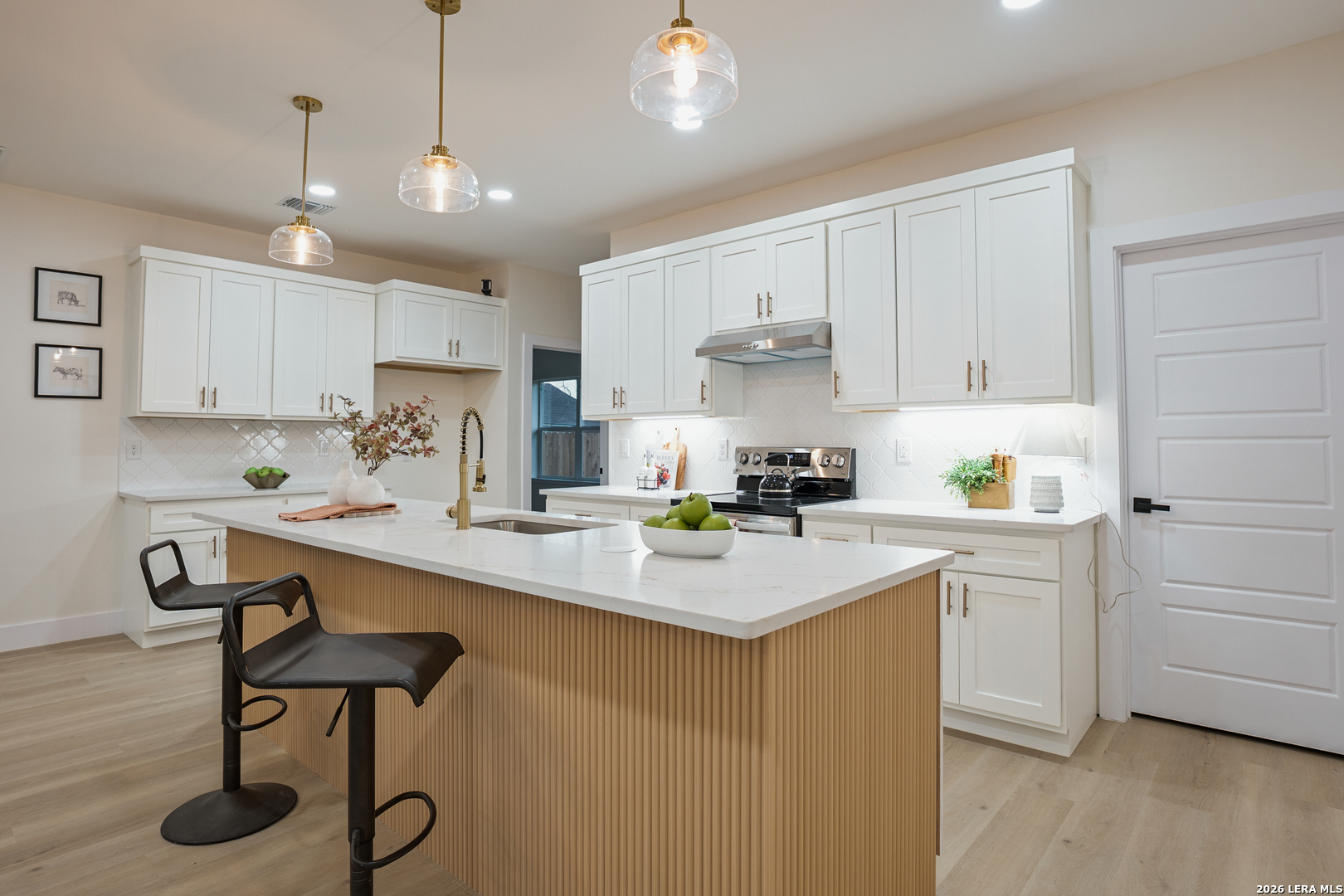 Exquisite new construction in the prestigious Los Angeles Heights subdivision. This stunning 3-bedroom, 2-bath residence showcases superior craftsmanship, refined modern finishes, and a thoughtfully designed open-concept layout that seamlessly blends elegance and functionality. The expansive living spaces are enhanced by sophisticated LED lighting, including a beautifully illuminated primary suite designed for comfort and relaxation. The luxurious primary retreat features a spa-inspired ambiance and a generously sized walk-in closet, offering both style and convenience. Every detail of this home reflects quality, contemporary design, and timeless appeal - an exceptional setting to create unforgettable memories.