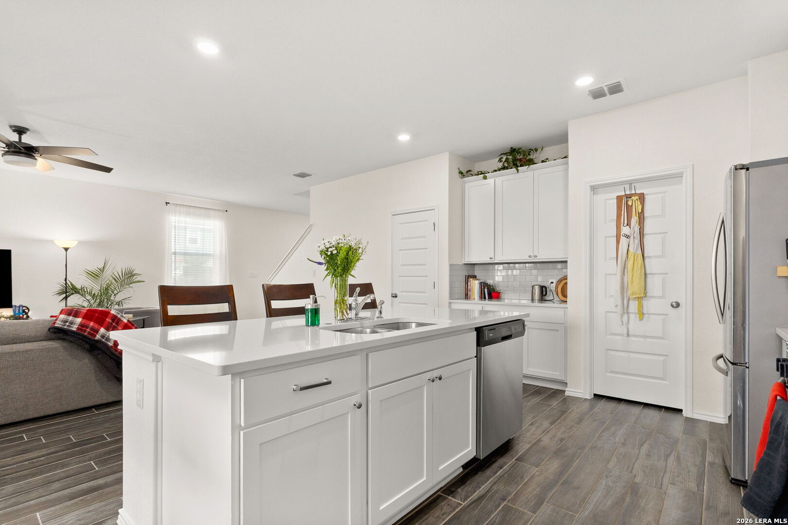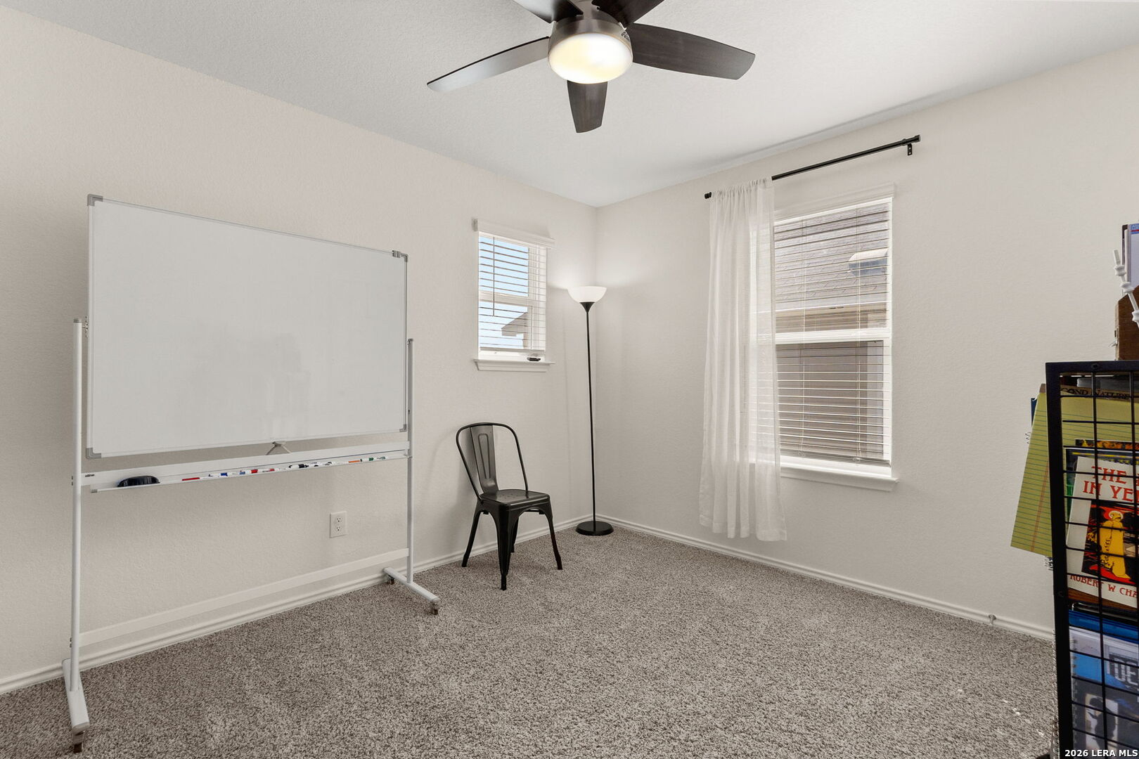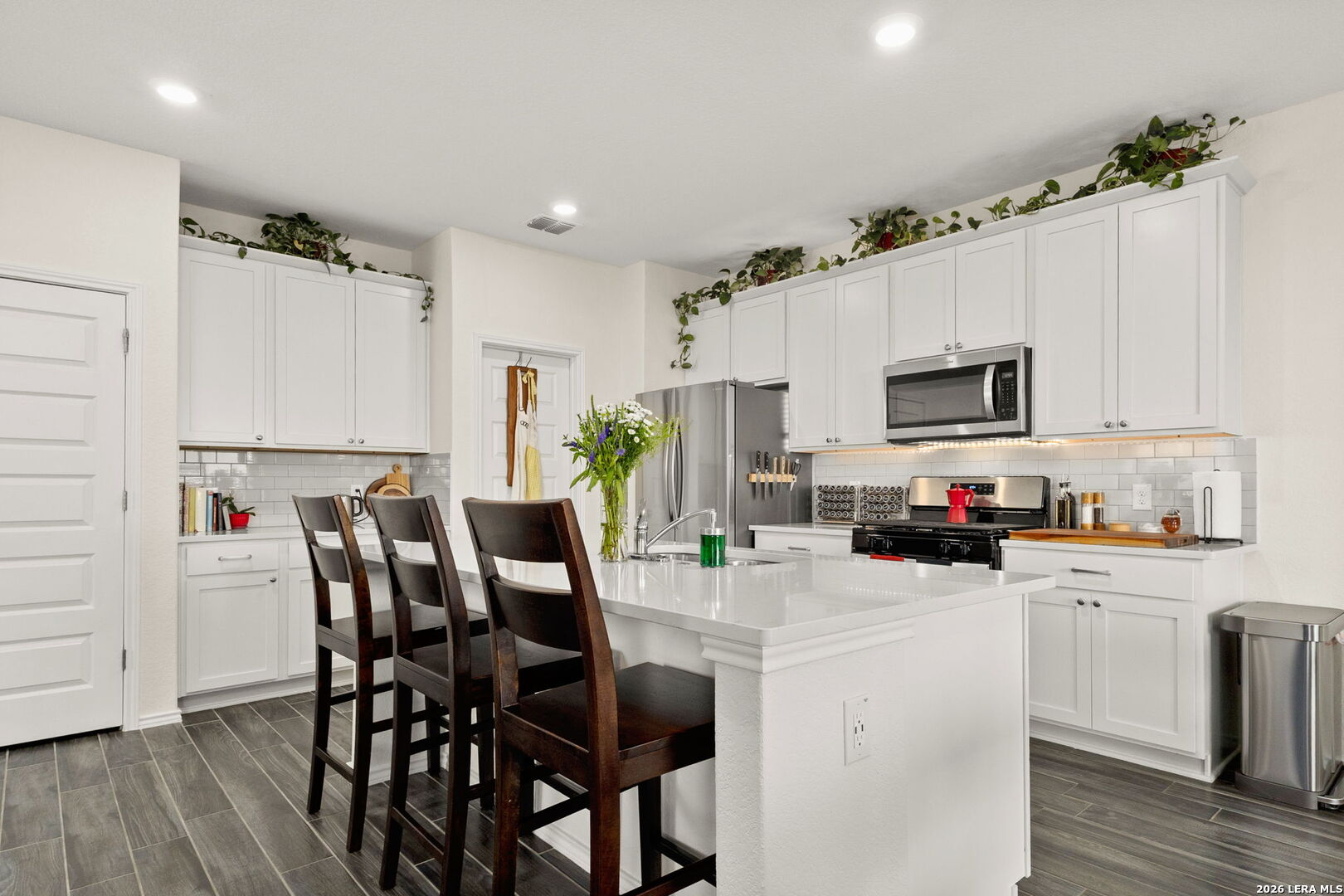 Move-in ready and thoughtfully designed, this home offers a flexible layout ideal for today's lifestyle. The open-concept main living area flows seamlessly into the kitchen and breakfast nook, featuring a center island, large pantry, granite countertops, white cabinetry, subway tile backsplash, and upgraded stainless-steel appliances. A first-floor bedroom with a full bath nearby provides excellent space for guests or a home office. Upstairs, a spacious loft separates the secondary bedrooms from the private primary suite, which includes dual sinks, a walk-in shower, and a generous walk-in closet. Enjoy outdoor living with a covered patio and a large backyard shaded by a mature oak tree-perfect for relaxing or entertaining. Additional features include a 6' sliding glass door and water softner.