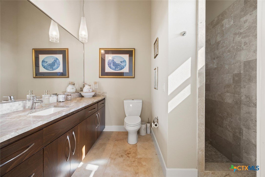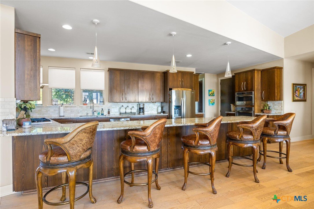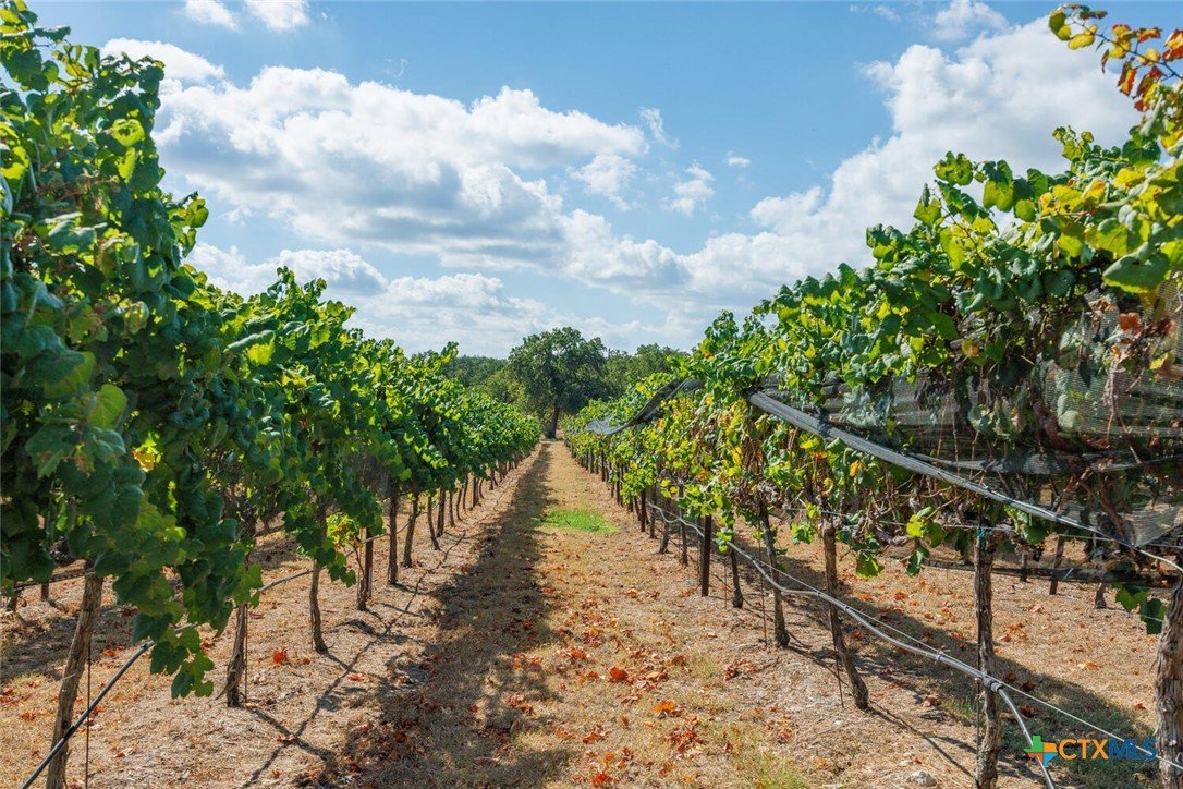 A rare opportunity awaits! This 12 acre, end of the road Hill Country retreat w/views for miles & its own award winning mature vineyard is now on the market. Energy efficient 3100 square foot single level home w/spray foam insulation, metal roof, heat pump HVAC system, well and rain harvest tanks, tankless water heater, Anderson windows and GE monogram appliances is an open floorplan w/wood & tile floors throughout. A split bedroom layout. Master bedroom offers a cathedral ceiling & private bath w/large soaking tub & walk-in shower. Two ensuite secondary bedrooms w/full bath & 4th bedroom is adjacent to the hall bath. Open kitchen/dining area w/walk-in pantry plus a separate wine room w/250 bottle storage. The beach entry pool w/spa tub & 30' wide outdoor living space features a built-in grill, frig, fireplace & retractable shades - all overlooking the vineyards. There is also a firepit and seating area in the back yard. A 30x50 barn on the property also has an efficiency apartment (not included in square footage shown in ML system). Appointment require for all showings - no sign or lockbox on the property.