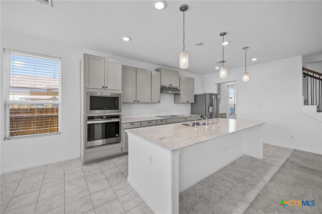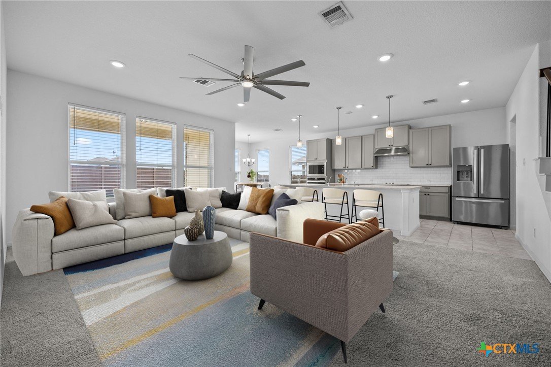 Bright, beautiful, and like new, this stunning 2020-built Ashton Woods home offers the perfect blend of quality, comfort, and modern style in a well-maintained neighborhood known for wide roads, smooth traffic flow, and a strong sense of community. Ideally located near parks, lakes, reputable schools, and everyday conveniences, it delivers both lifestyle and location. Step inside to an open-concept layout filled with abundant natural light from large windows, creating a warm and inviting atmosphere. The spacious living, dining, and kitchen areas flow seamlessly—perfect for entertaining and daily living. The kitchen features a large central island, elegant finishes, ample cabinetry, and stainless steel appliances, including a refrigerator. The thoughtfully designed floor plan includes a bedroom with a private bathroom—ideal for guests or multi-generational living—along with additional bedrooms and a dedicated study/office space. A two-car garage adds everyday convenience. Outdoors, enjoy a well-planned yard with an irrigation and sprinkler system featuring a Rain Bird sensor, plus an efficient drainage system. The backyard offers space to relax, entertain, or even add a small pool. Conveniently located just minutes from Stone Hill Town Center, residents have easy access to Costco Wholesale, Target, The Home Depot, and a variety of restaurants and retail. Nearby grocery options include H-E-B, Walmart Super center, ALDI, and H-E-B Plus!. Specialty stores like Desi Brothers and Round Rock International Mart add further convenience. With everything just 10–15 minutes away via Kelly Ln, Weiss Ln, and TX-130, this home truly offers the best of peaceful suburban living with quick access to major retail and dining—making it a move-in-ready gem that still feels brand new.